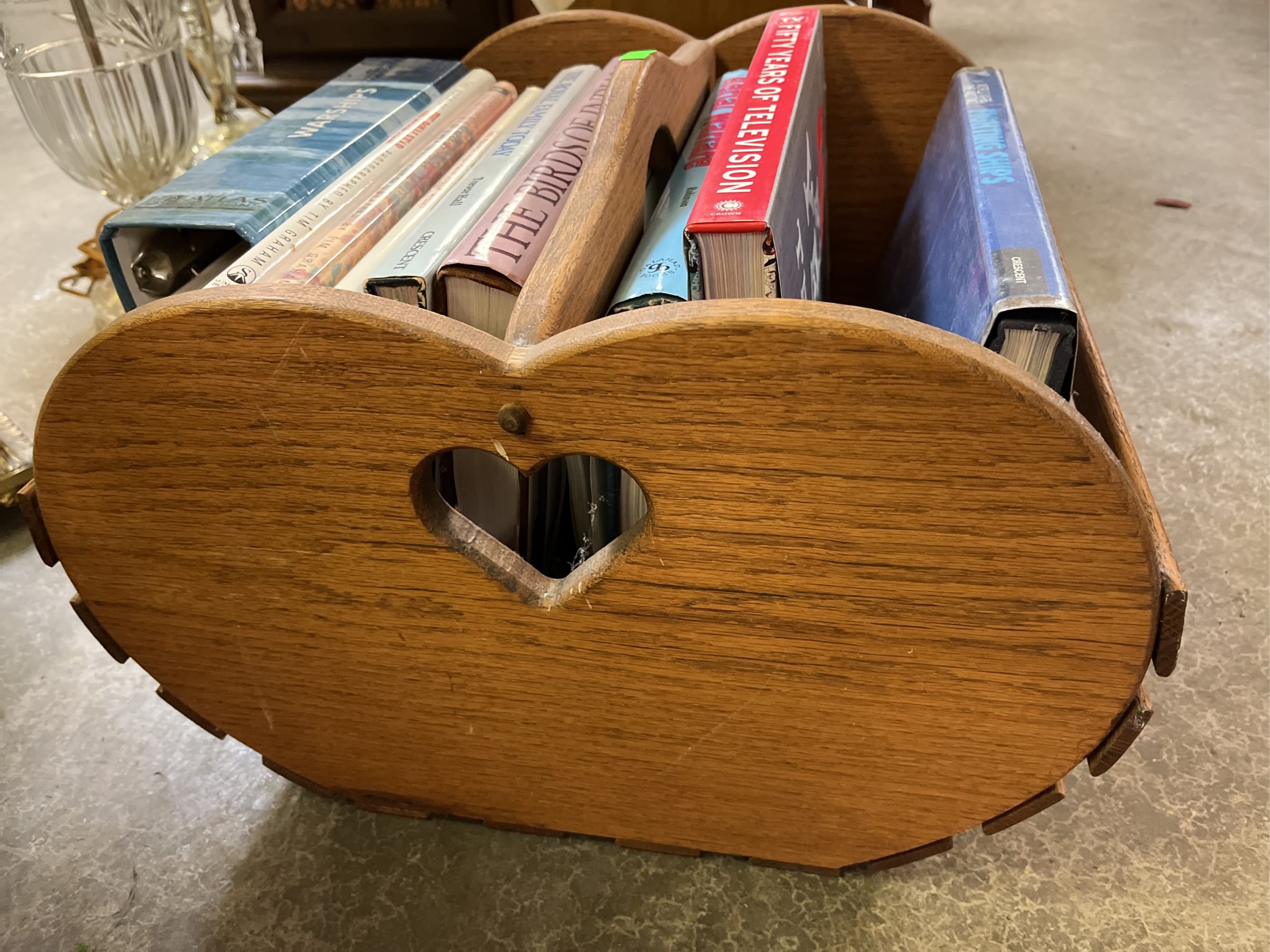 173 Wood magazine rack 19x15x11" with book assortment