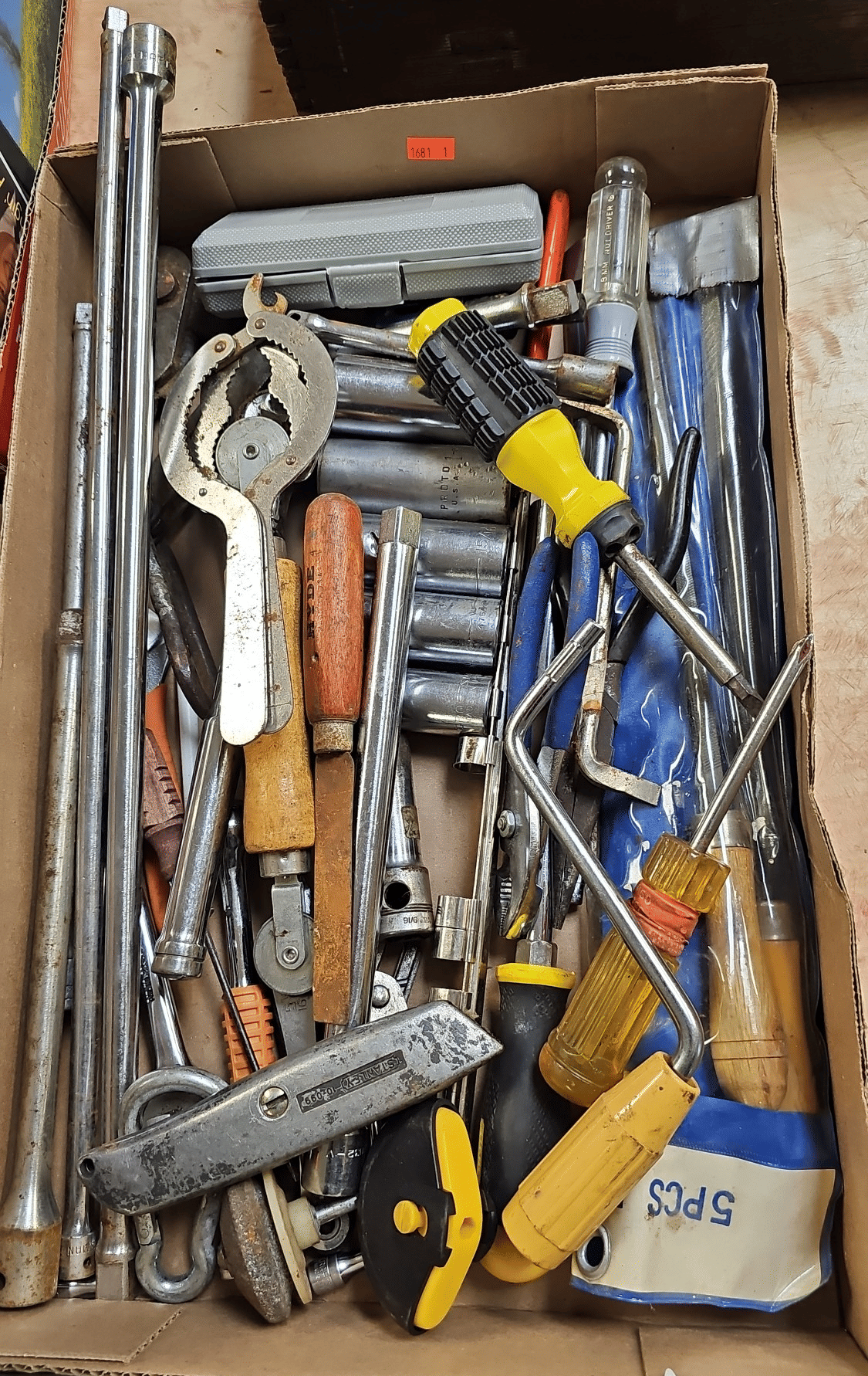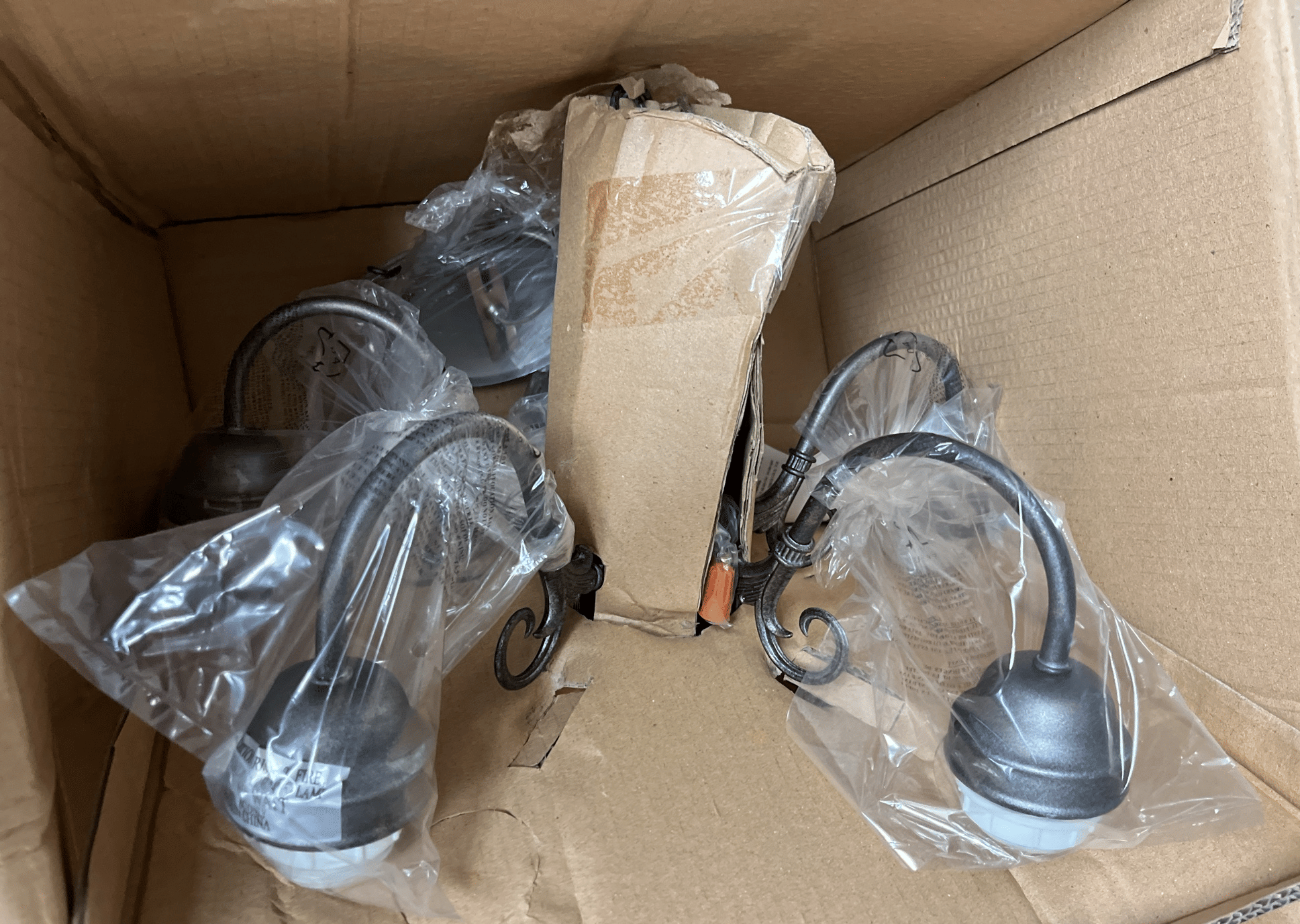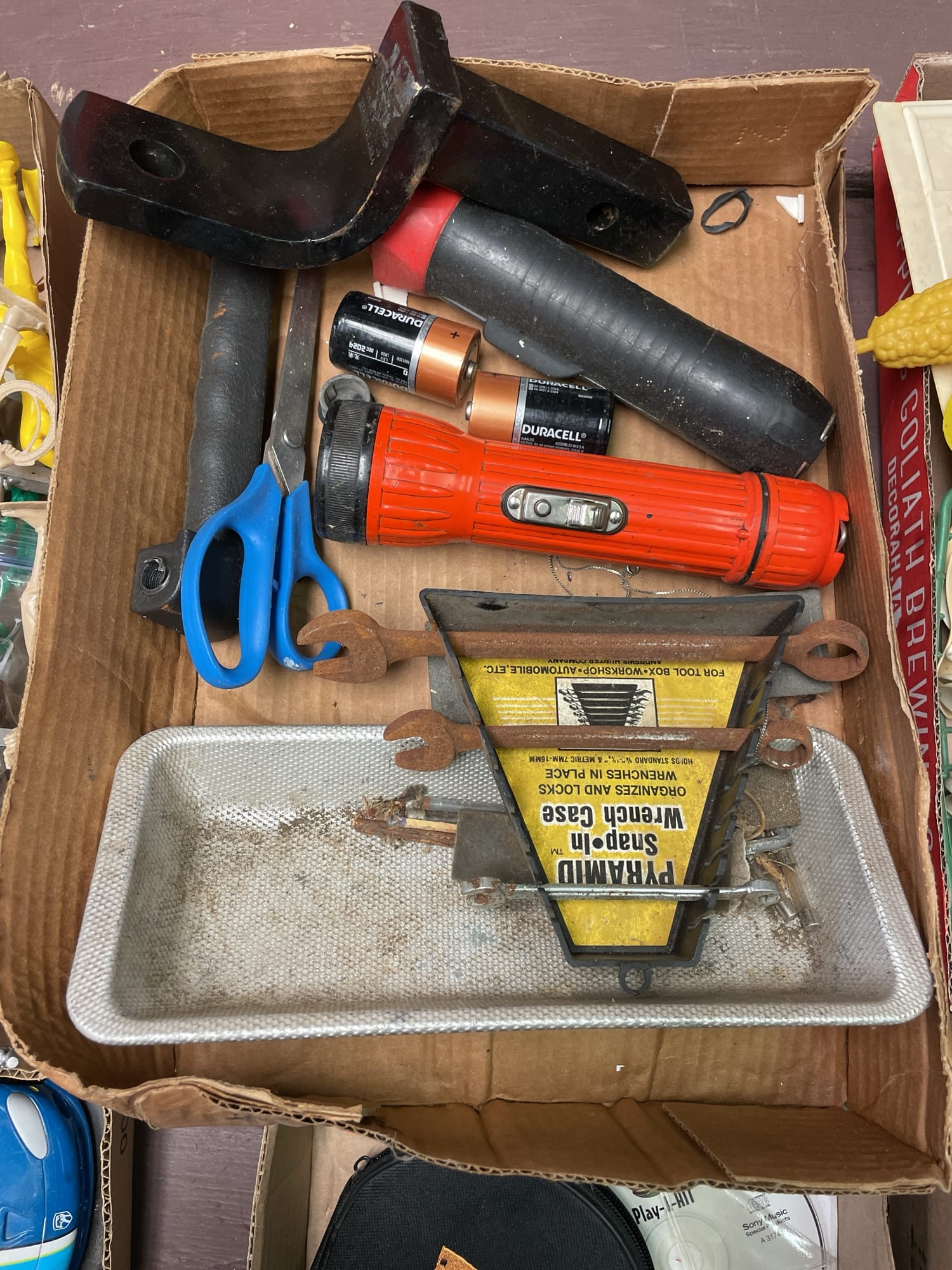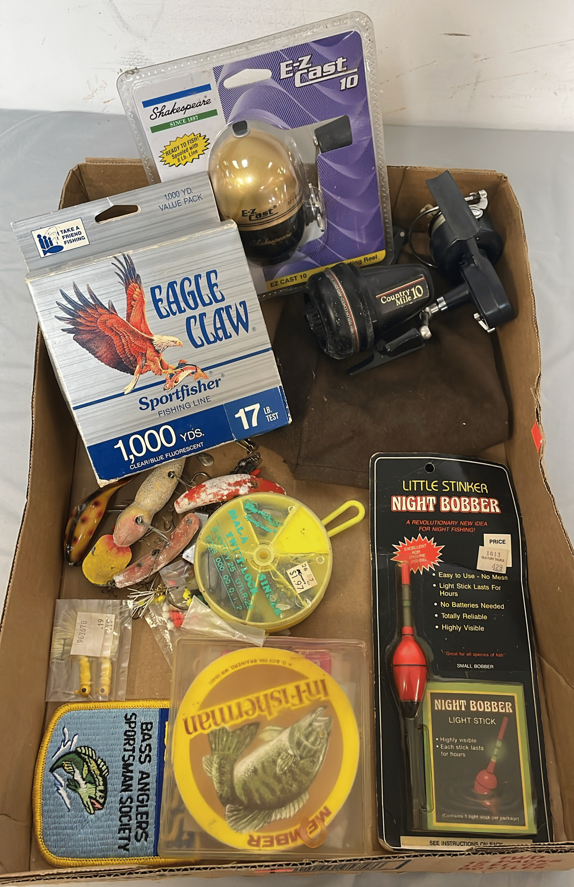 1713 King Edward Cigar Box, Raco Masonry Wall Box, Light Bulb, Leviton Porcelain Pull Ceiling Receptacle, Hinge Assortment, Etc.