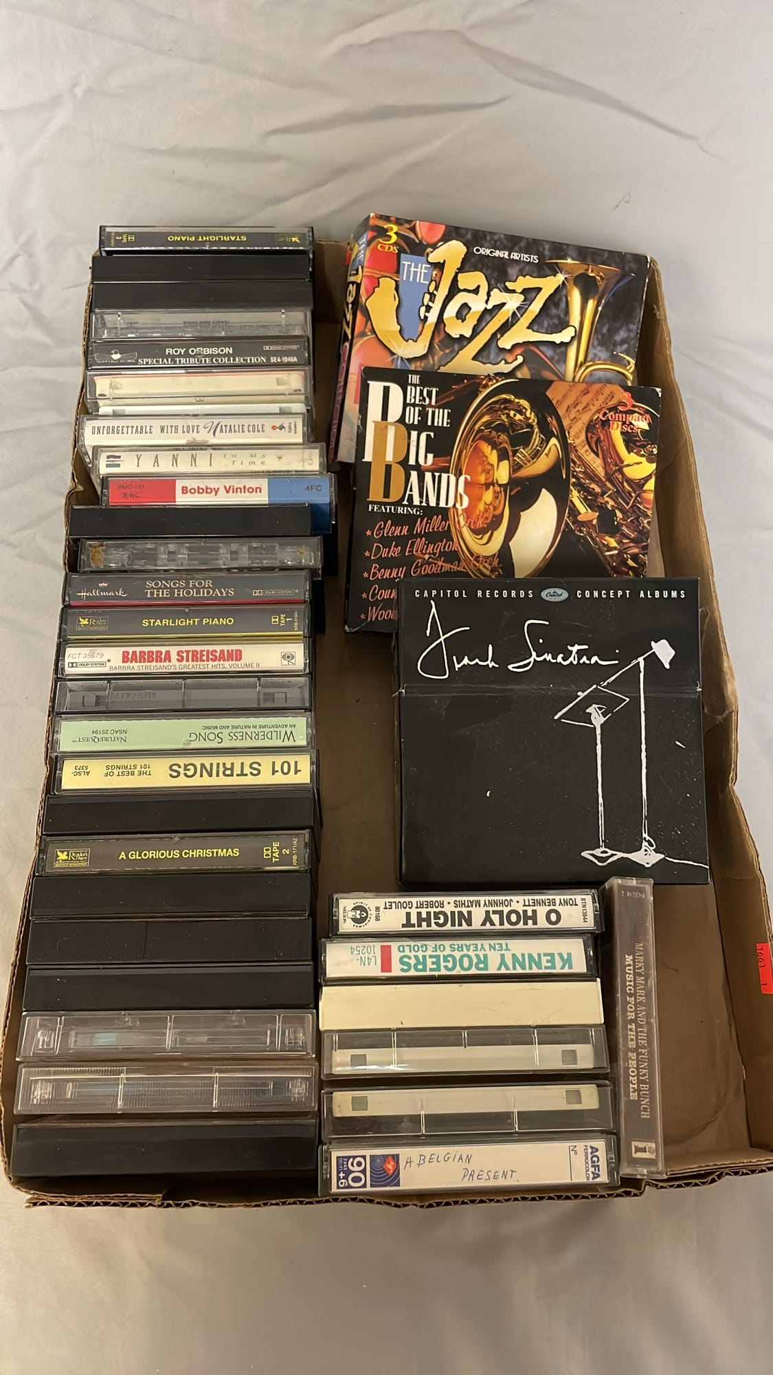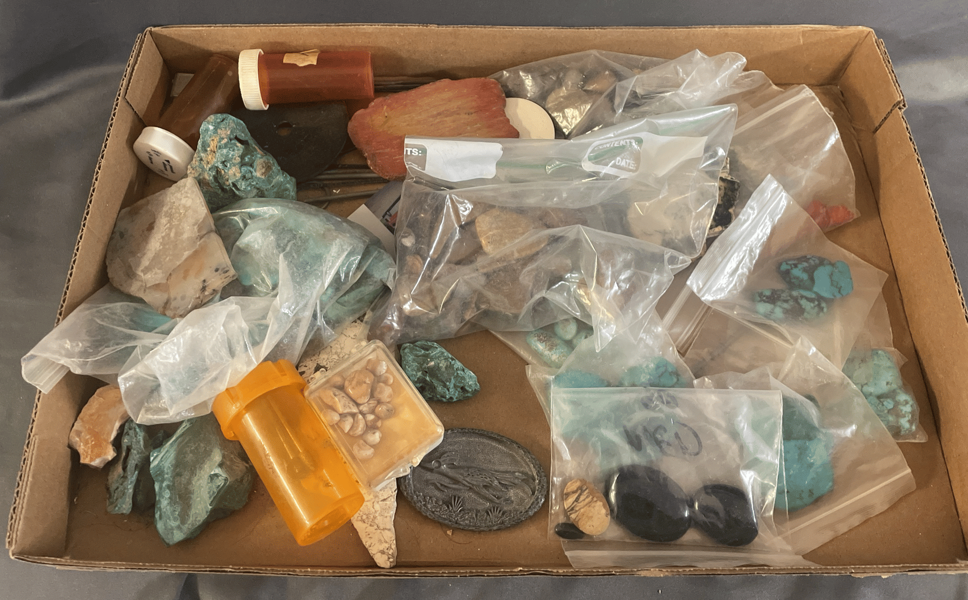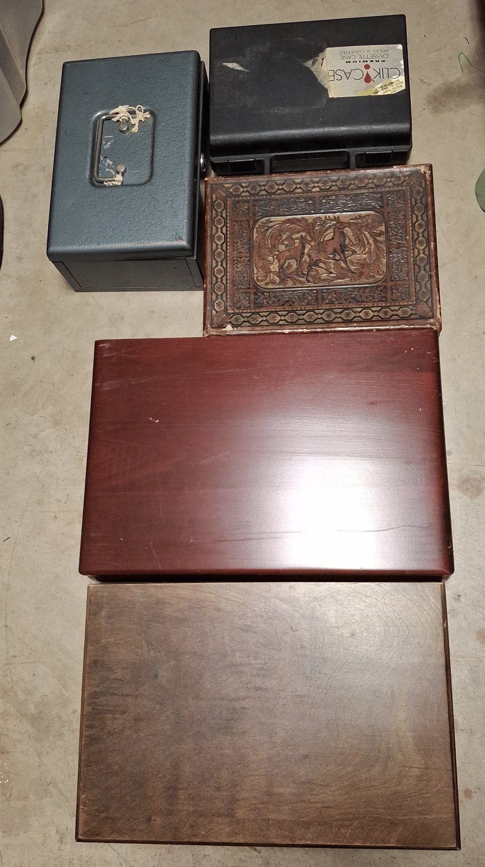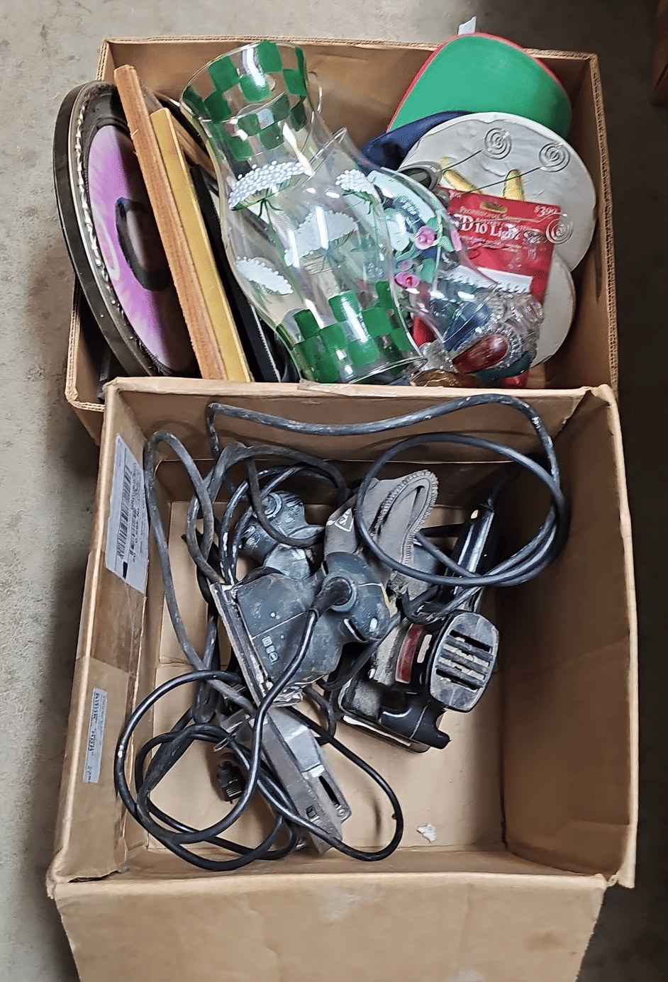 1713 King Edward Cigar Box, Raco Masonry Wall Box, Light Bulb, Leviton Porcelain Pull Ceiling Receptacle, Hinge Assortment, Etc.