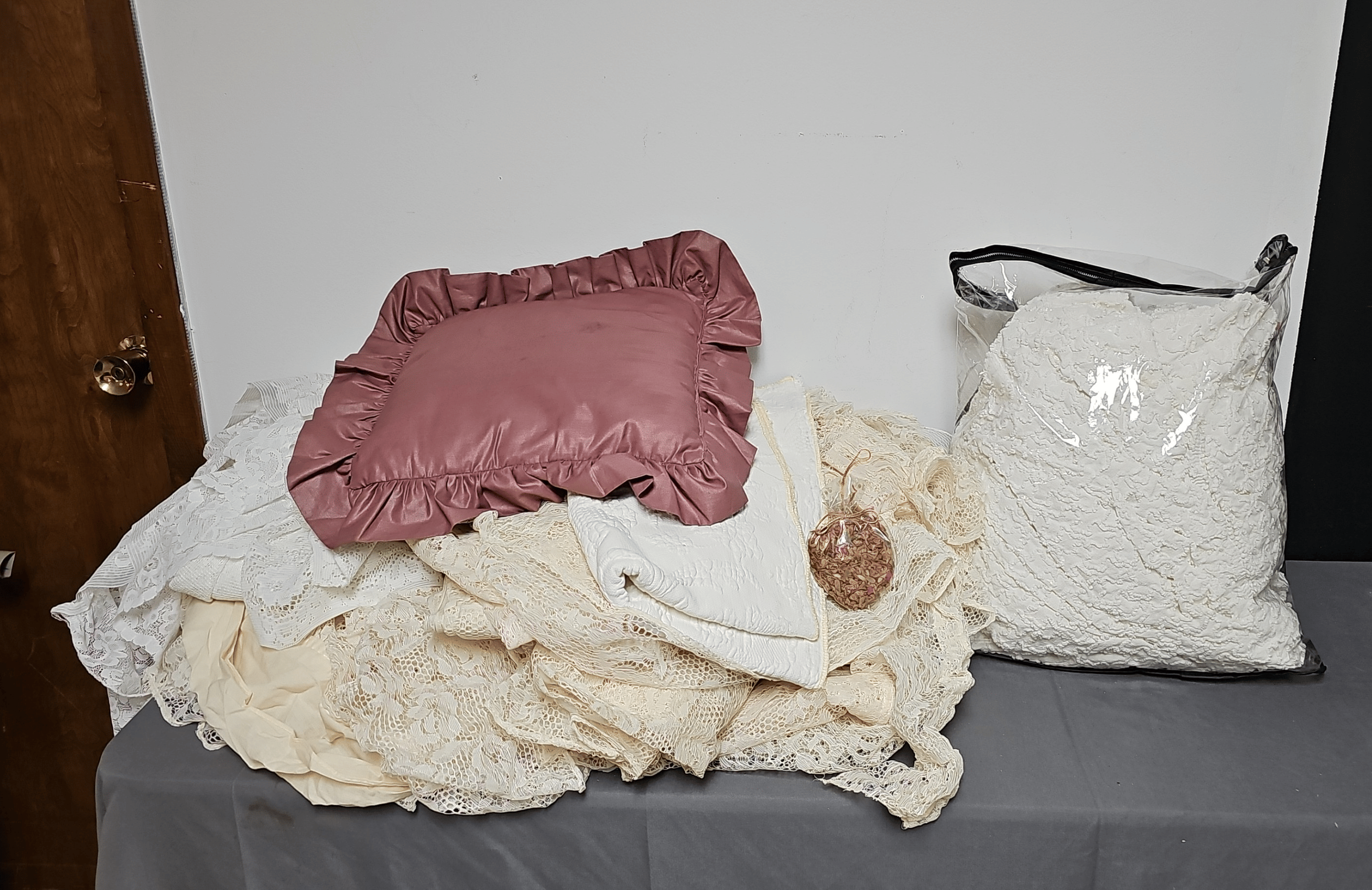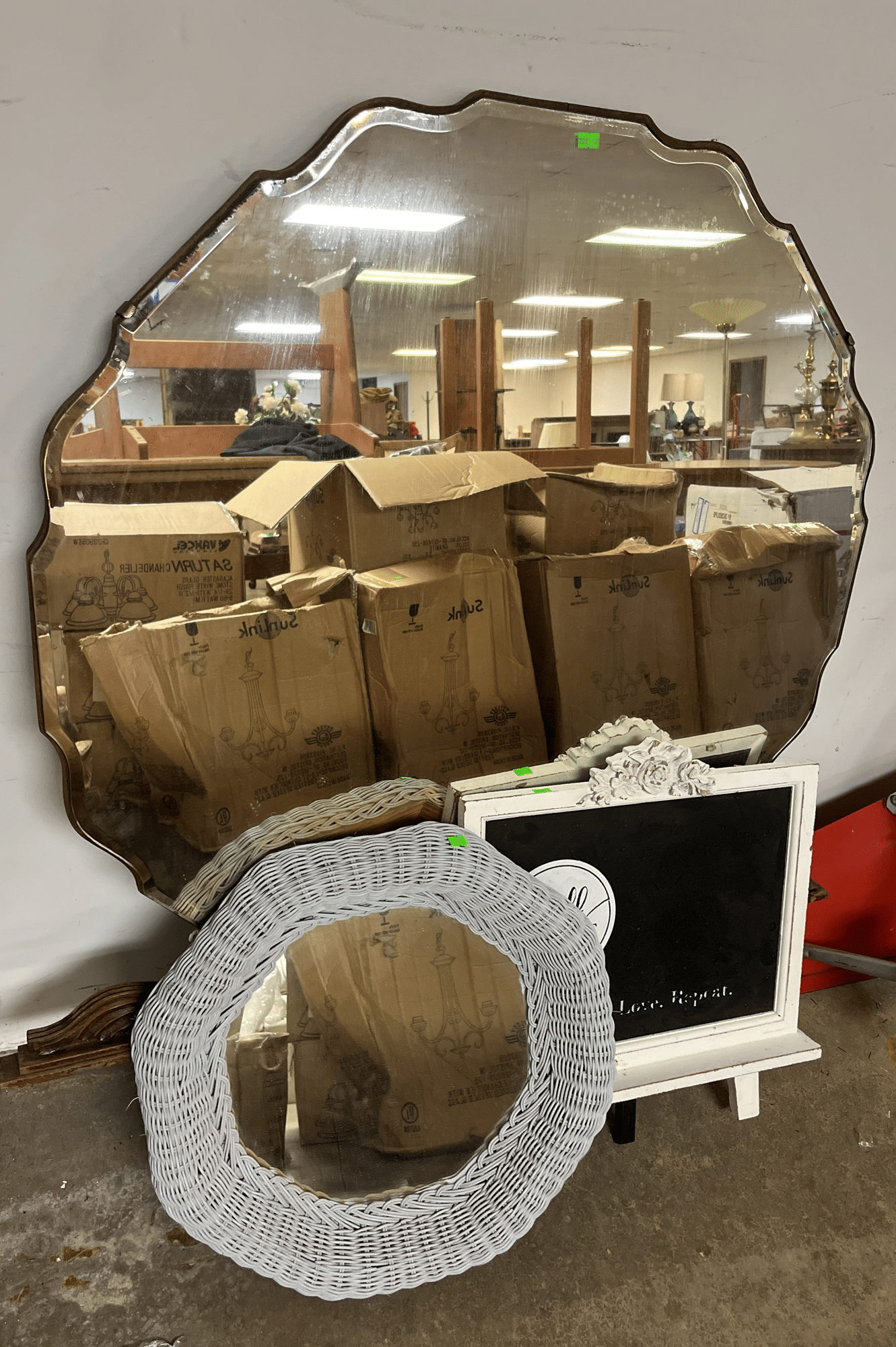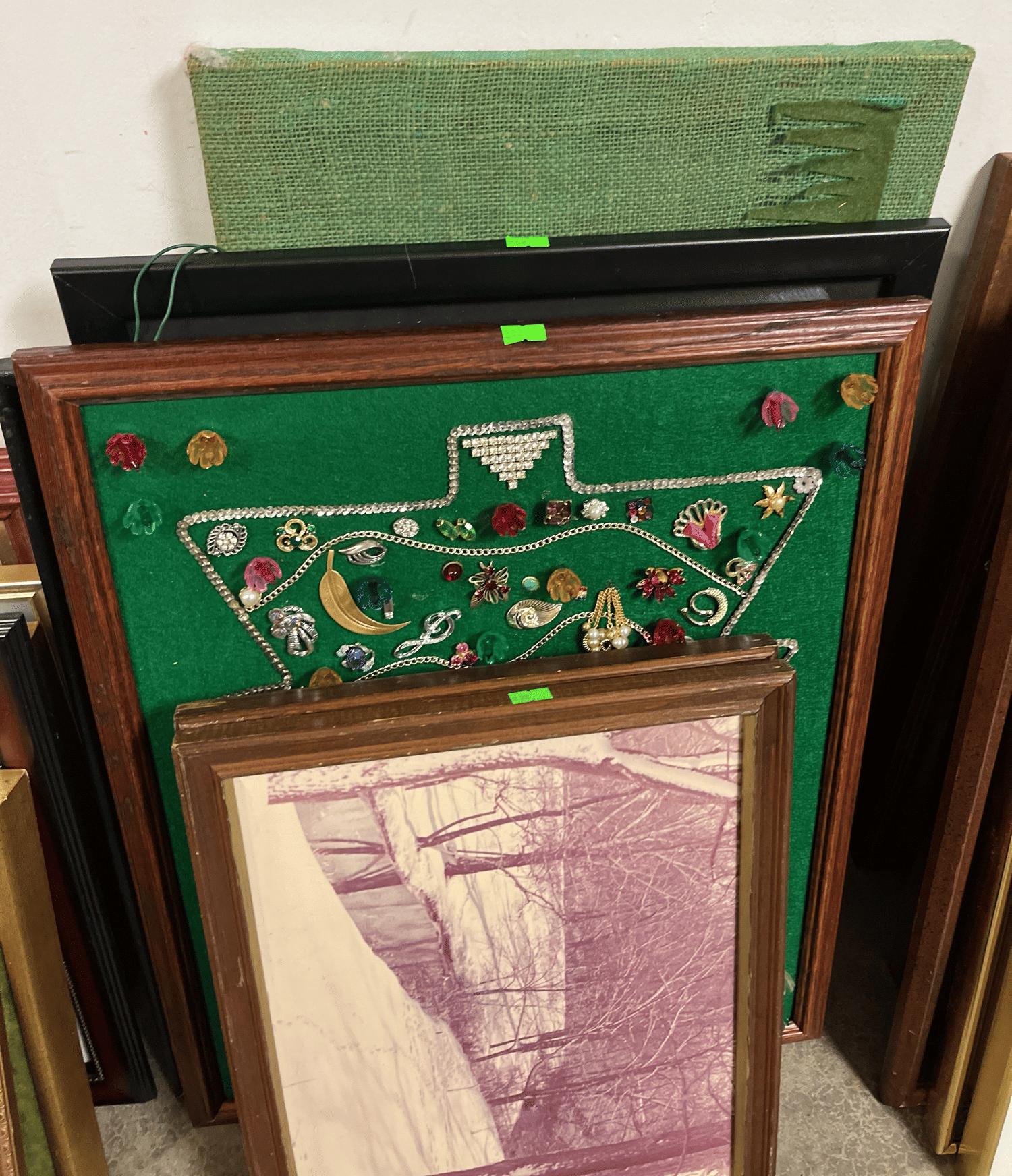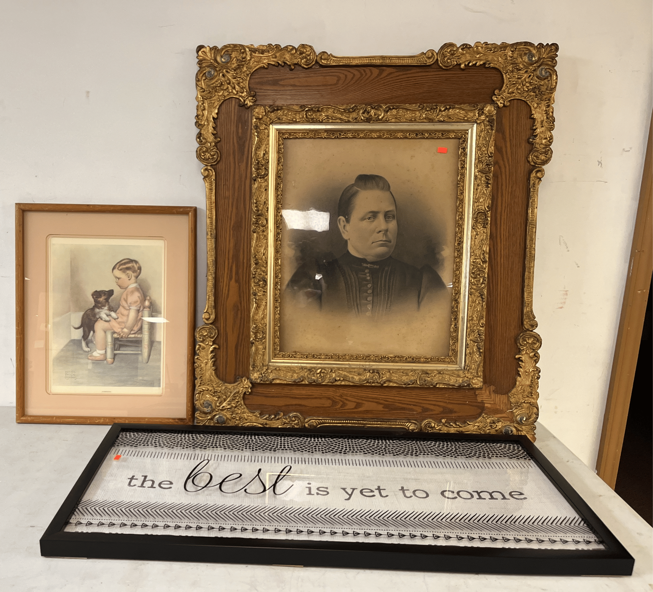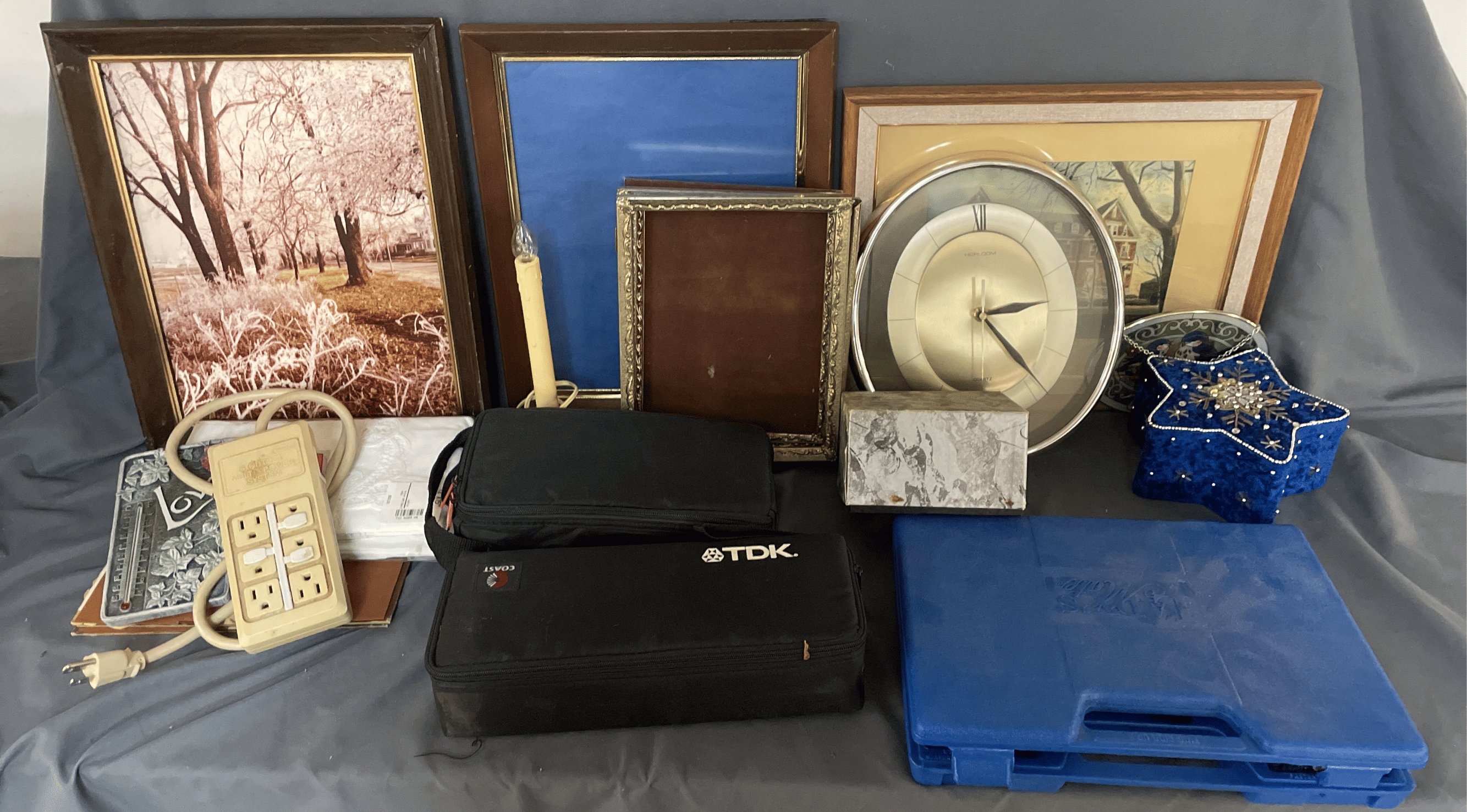 1865 Lady Mate Tools, Valances, Wall Clock, Picture Frames, Etc