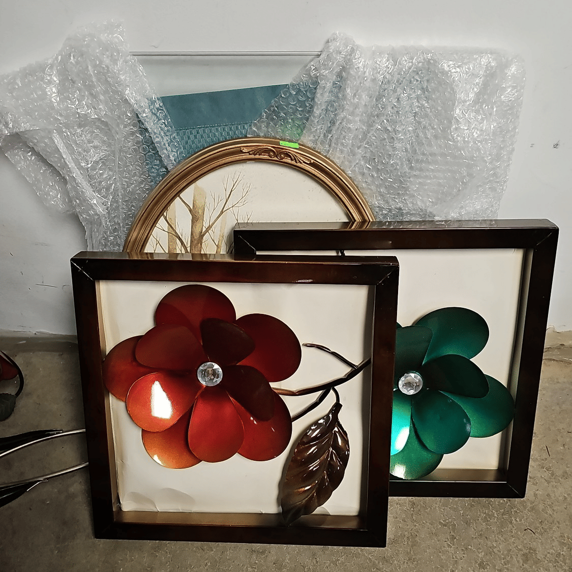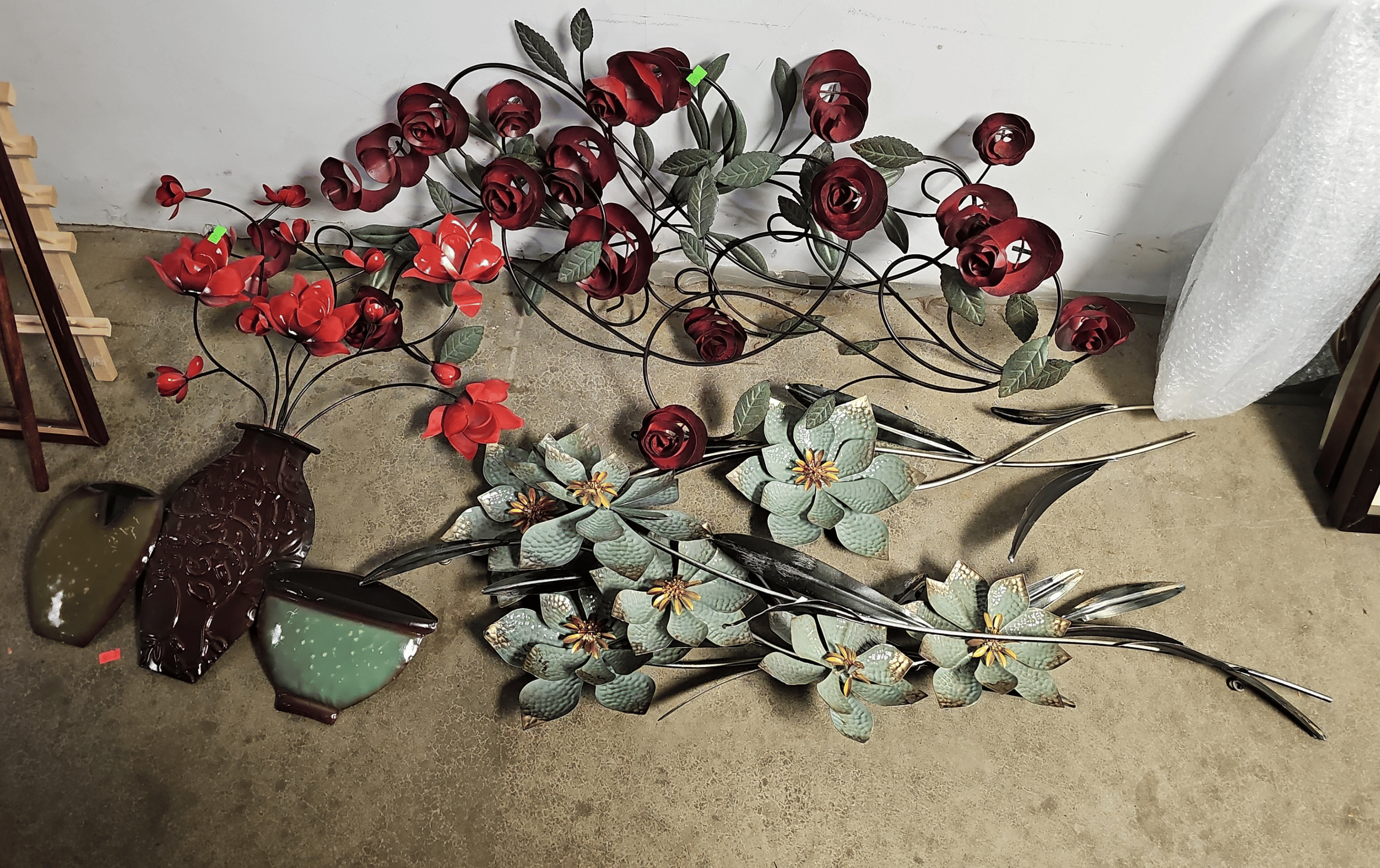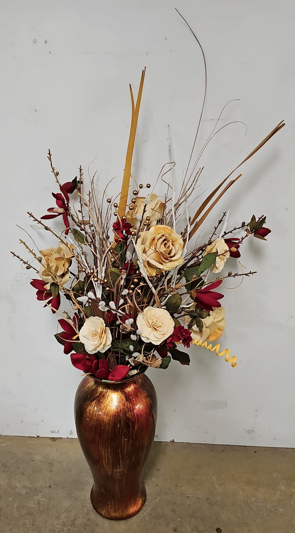156 Decor vases, faux florals and trifold mirror 18"