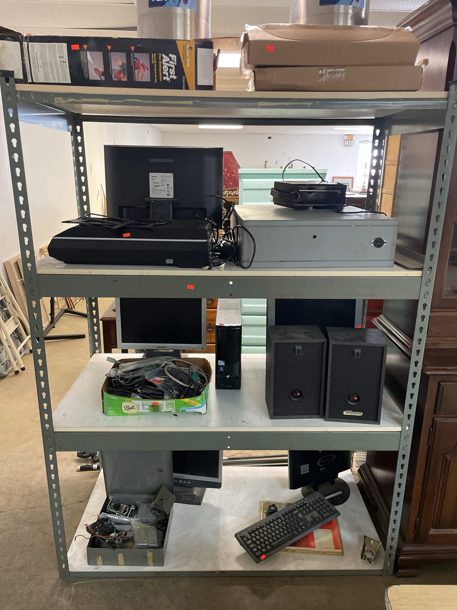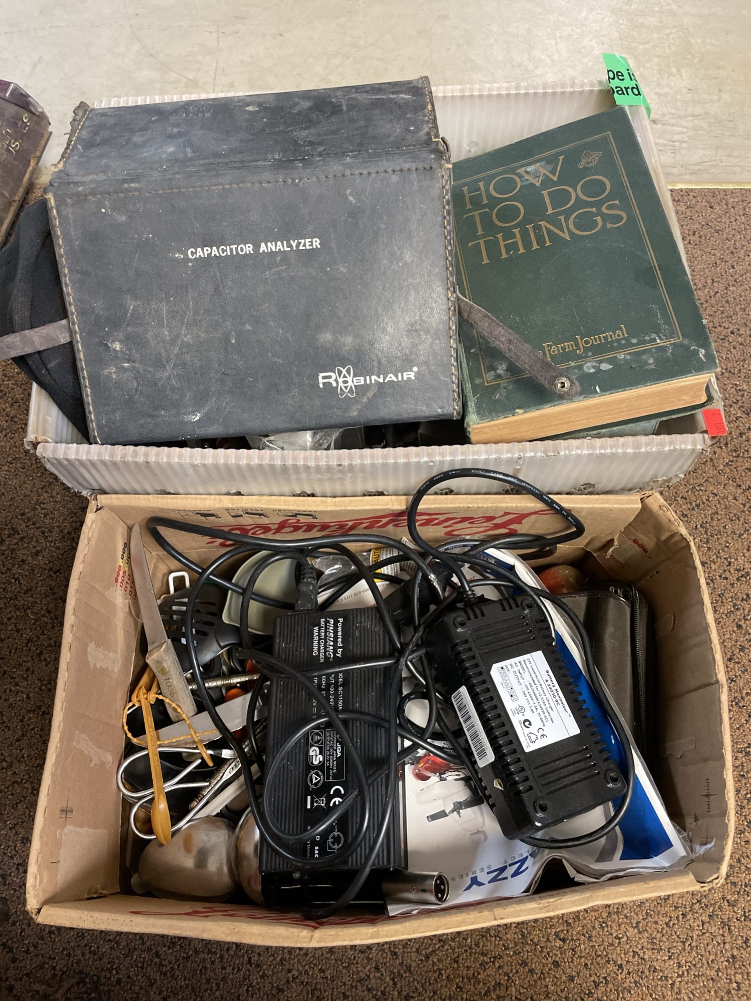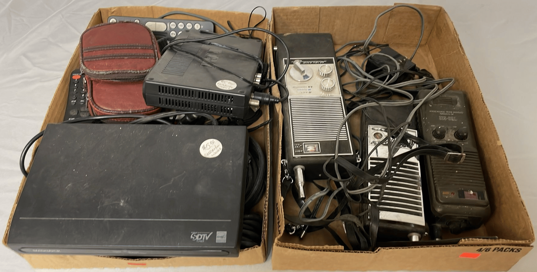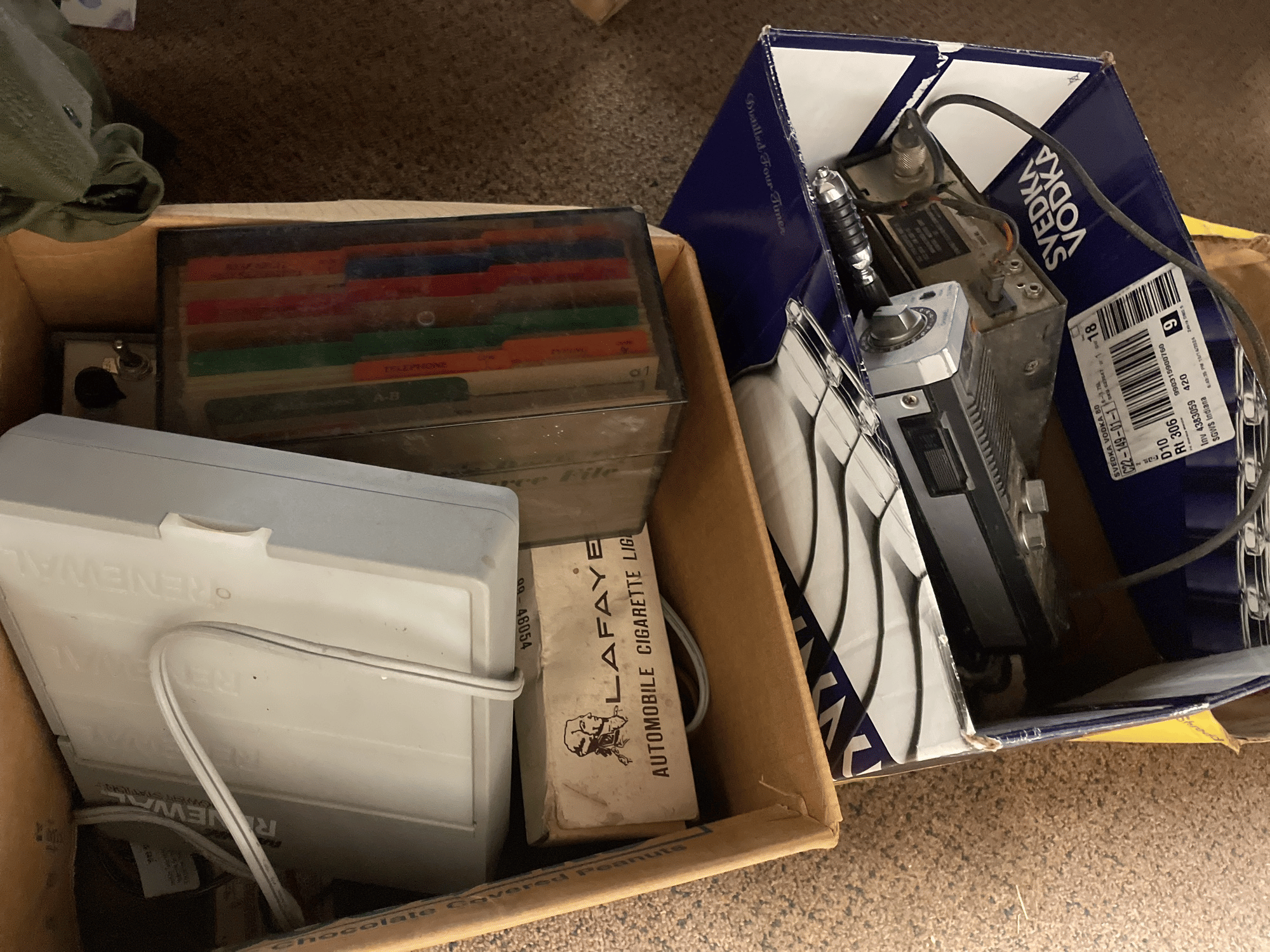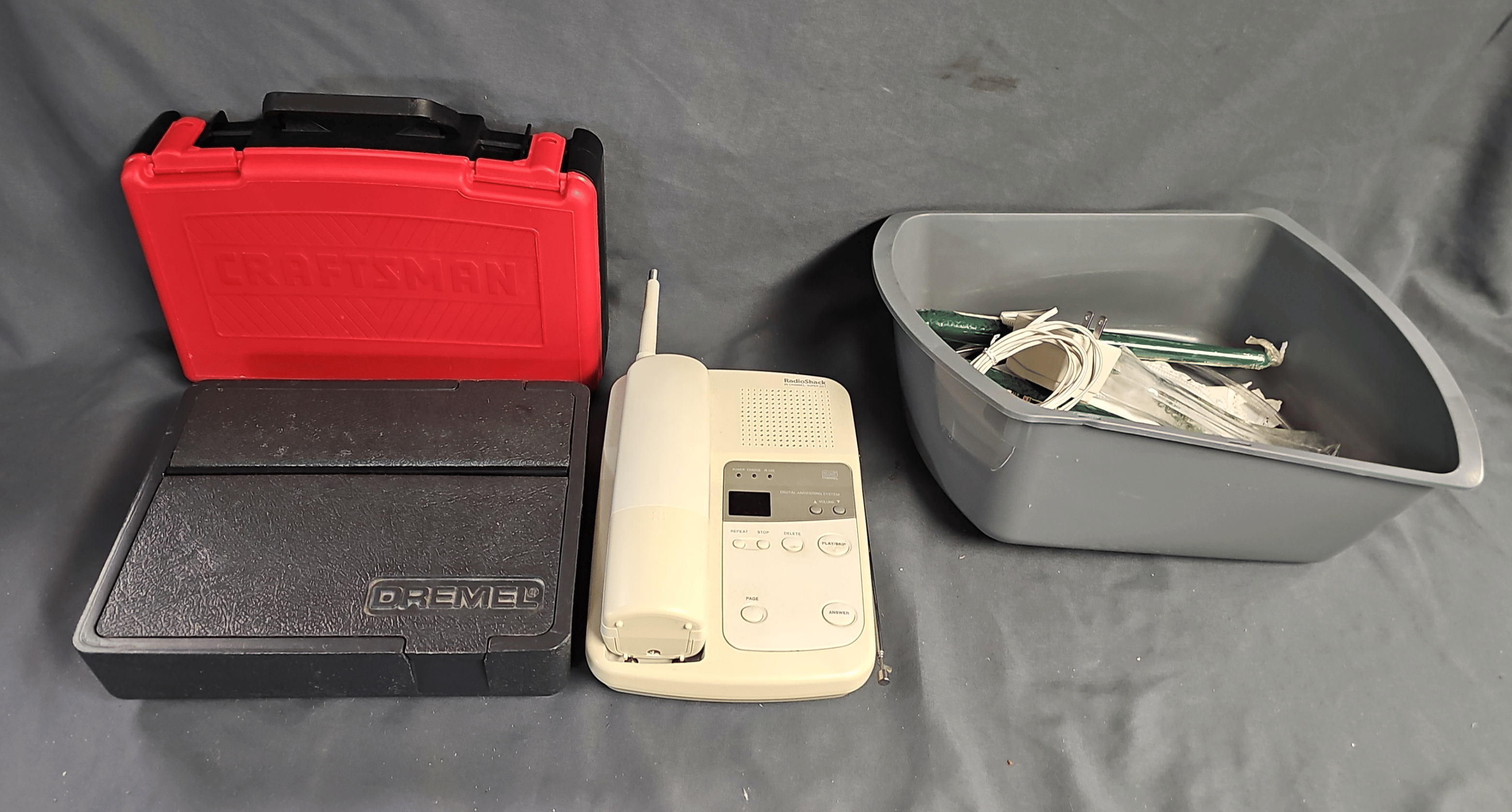 1701 Rayovac renewal battery power station, extension cords, desk top resource file, citizens band transceiver, misc cords