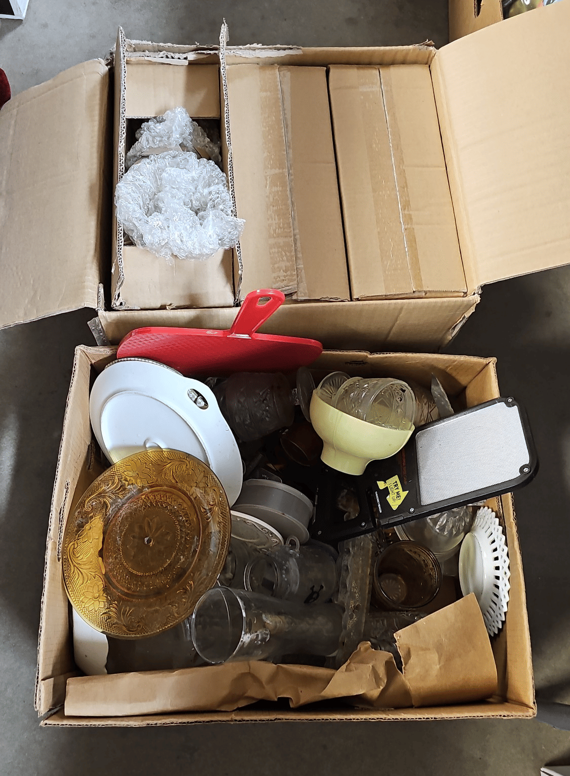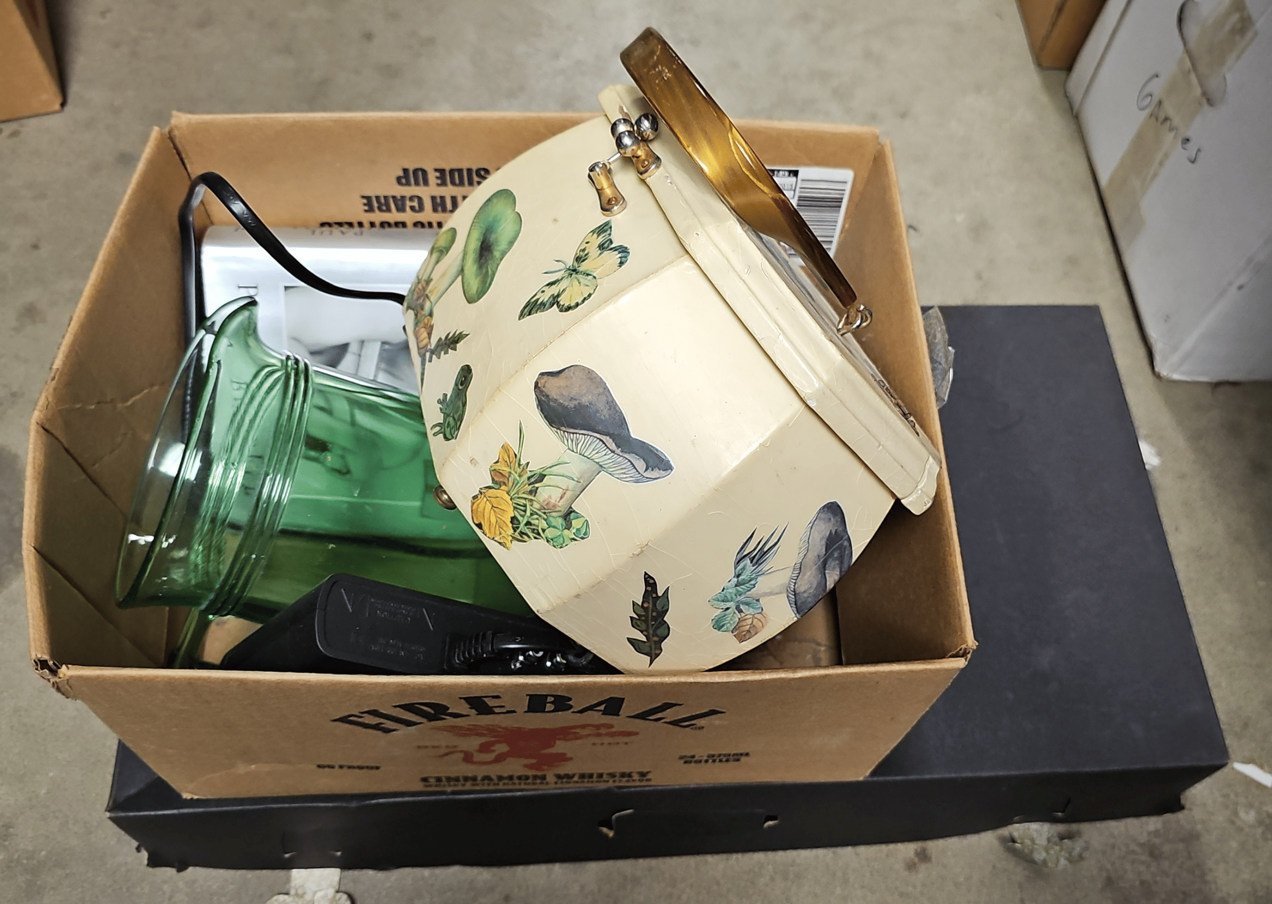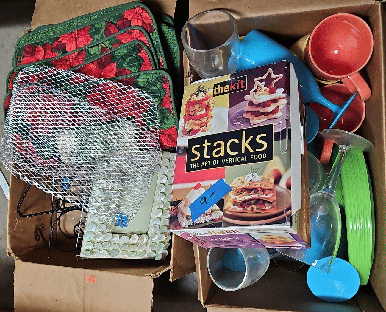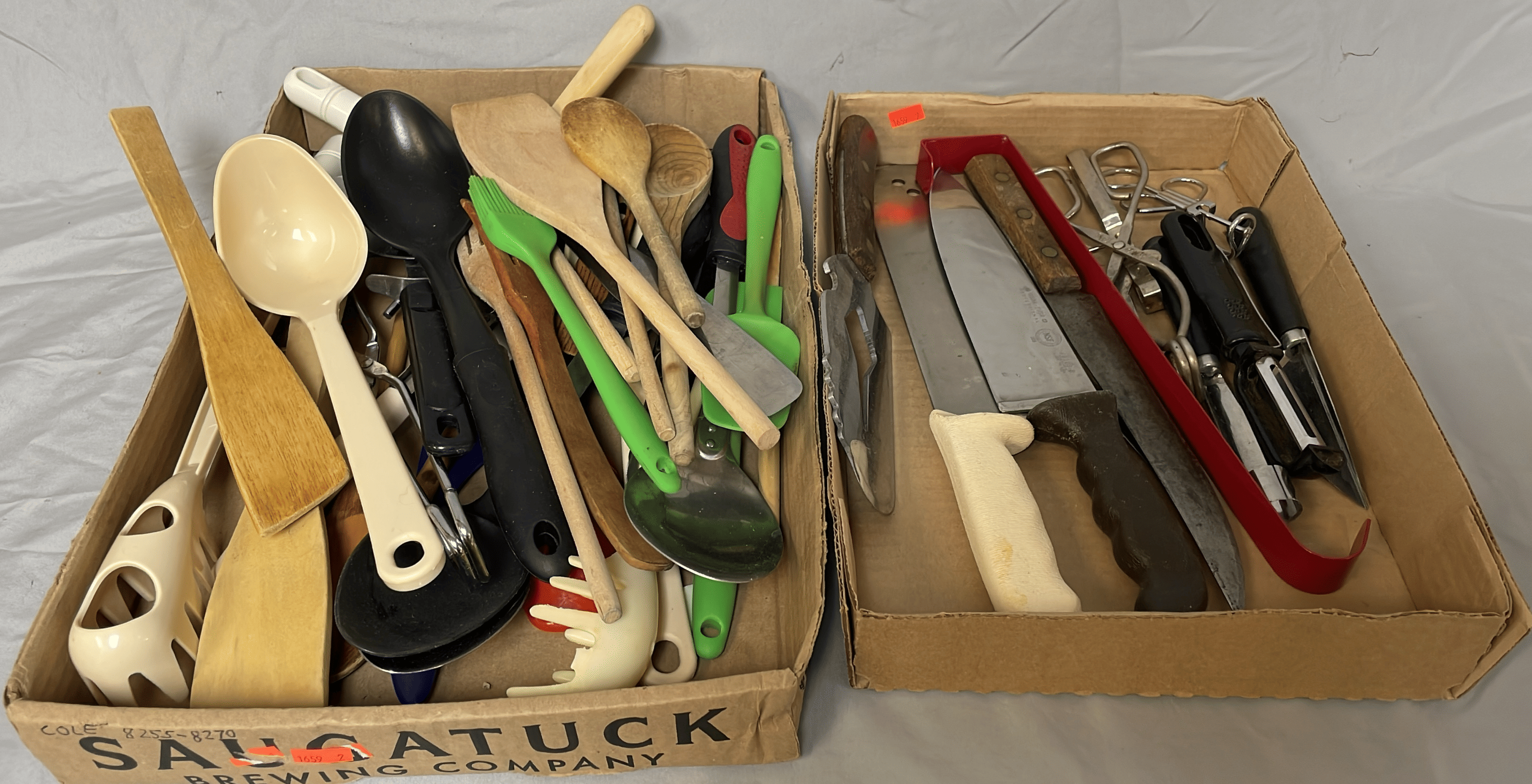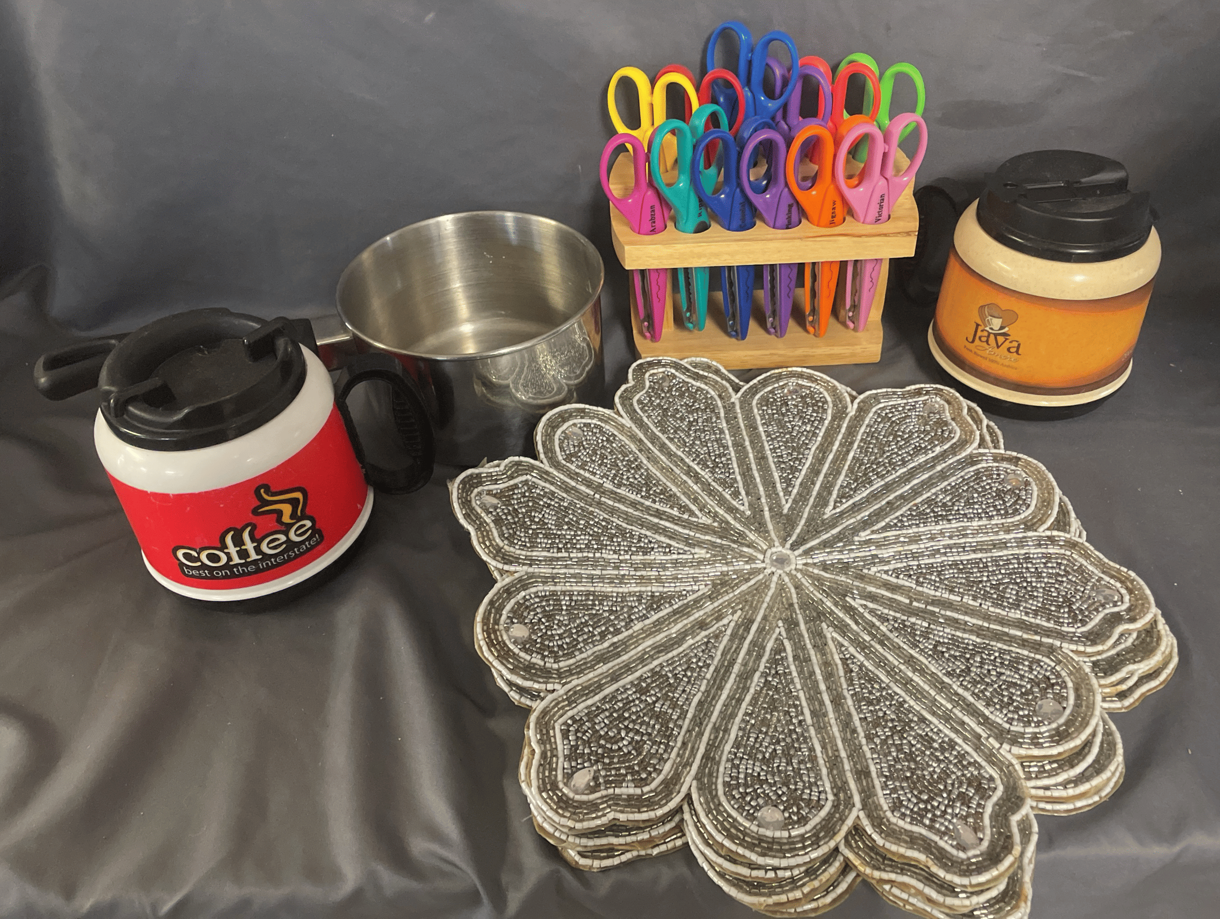1705 Plastic Utensil Organizer, Sunbeam Automatic Mixer, Fire king Baking Dish, Etc.