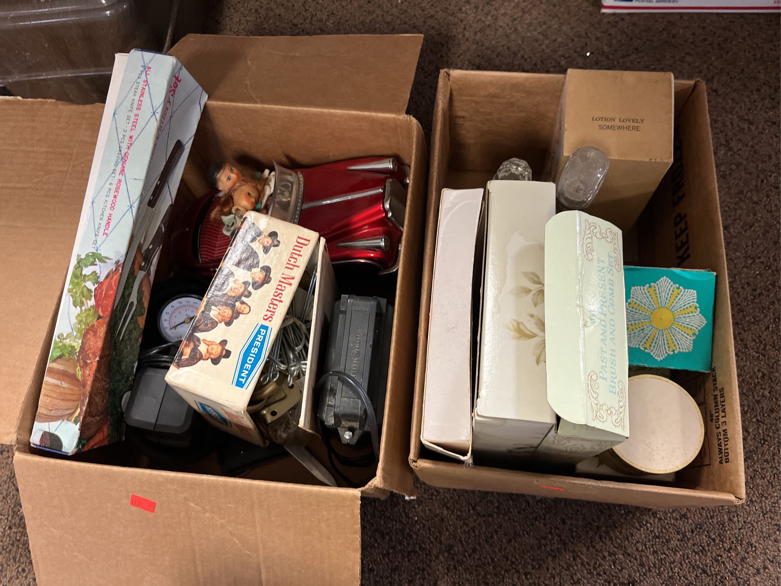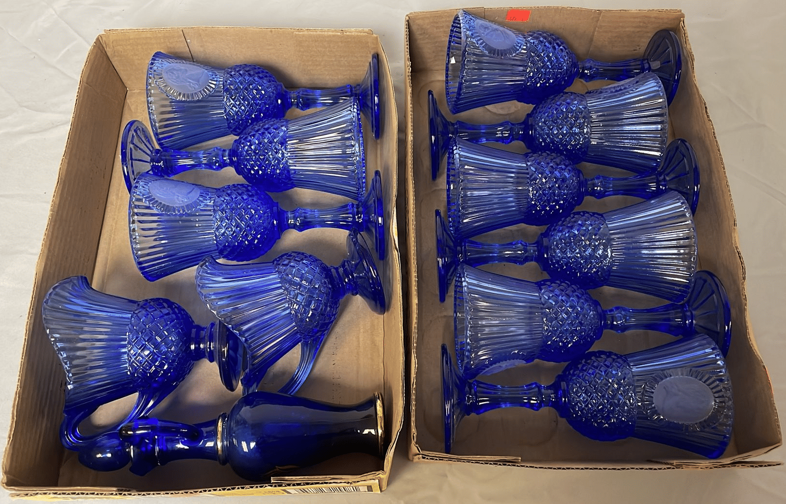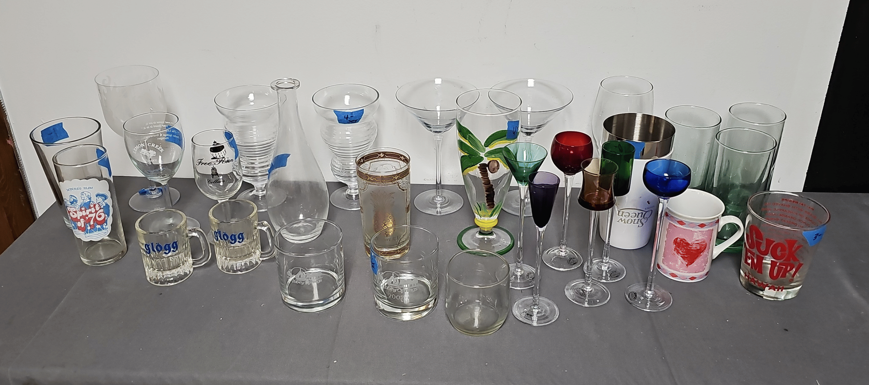 1716 Avon Assortment Inc. “Song of Love Sweet Honesty” “Big Back Oland After Shave” “Country Vendor After Shave”, (2) Cobalt Blue Stemmed Glasses, etc.