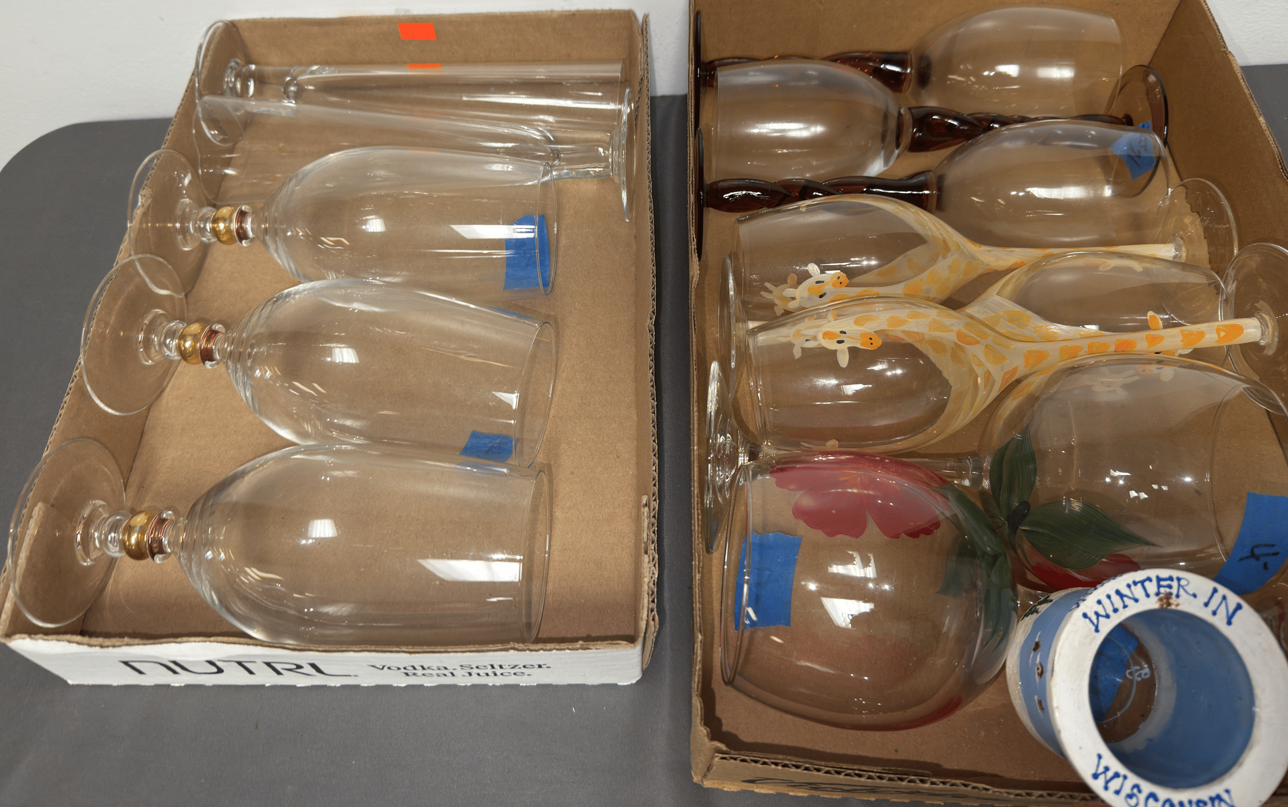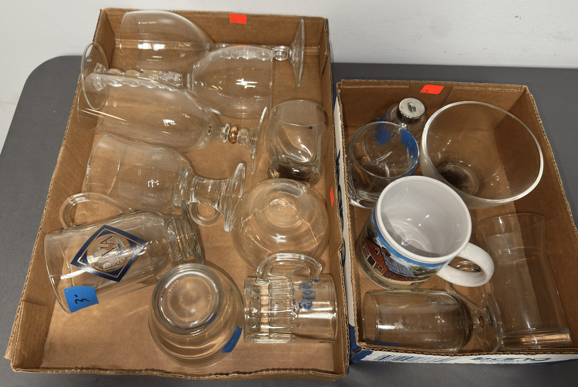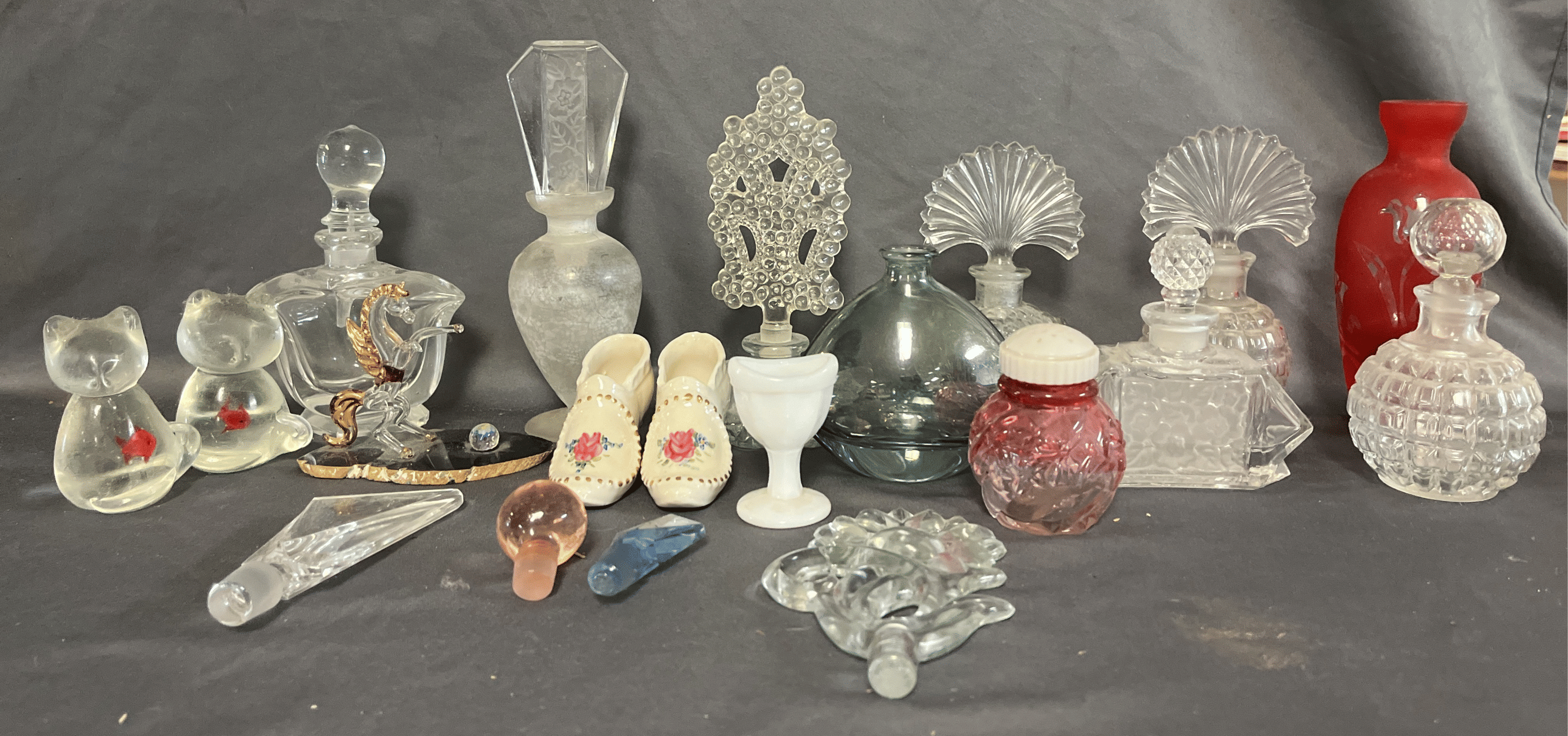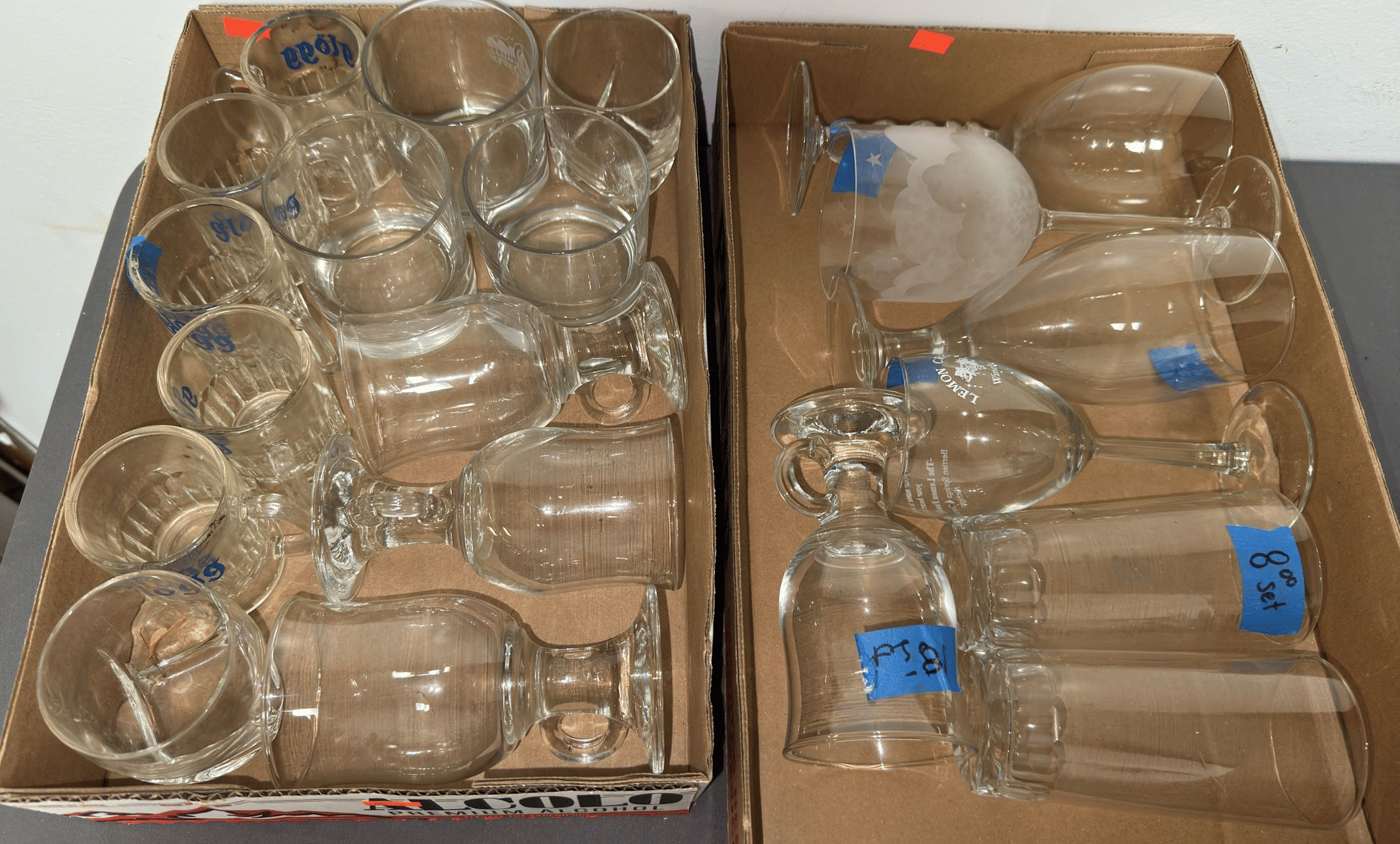 1716 Avon Assortment Inc. “Song of Love Sweet Honesty” “Big Back Oland After Shave” “Country Vendor After Shave”, (2) Cobalt Blue Stemmed Glasses, etc.