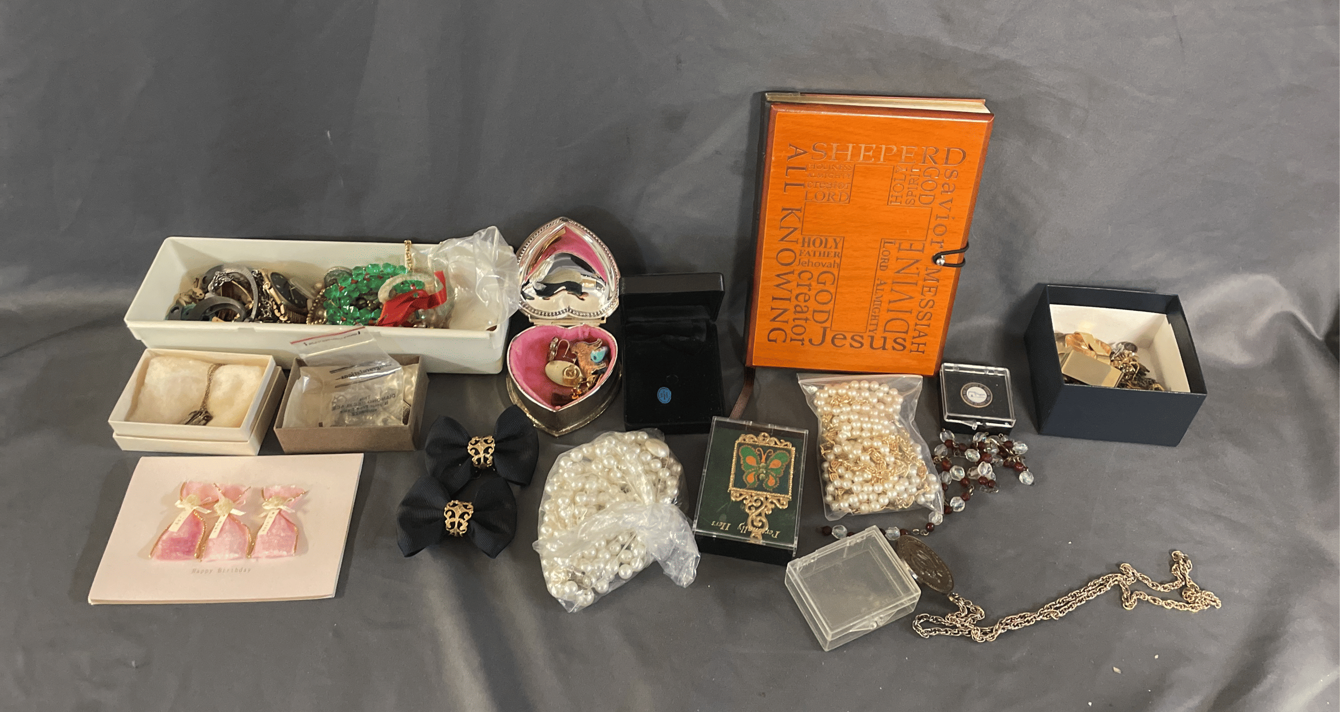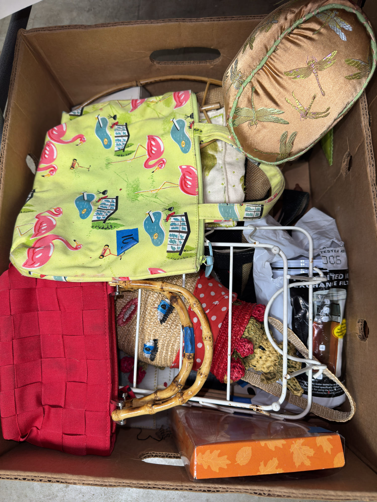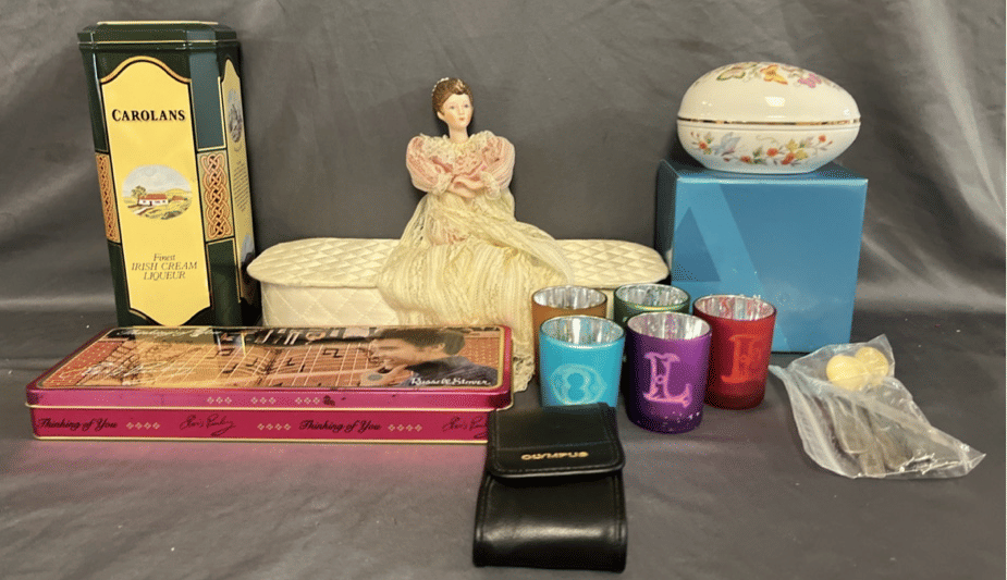 1873 Purse Assortment, Shower Hooks, Gift Boxes, Ornaments, Etc