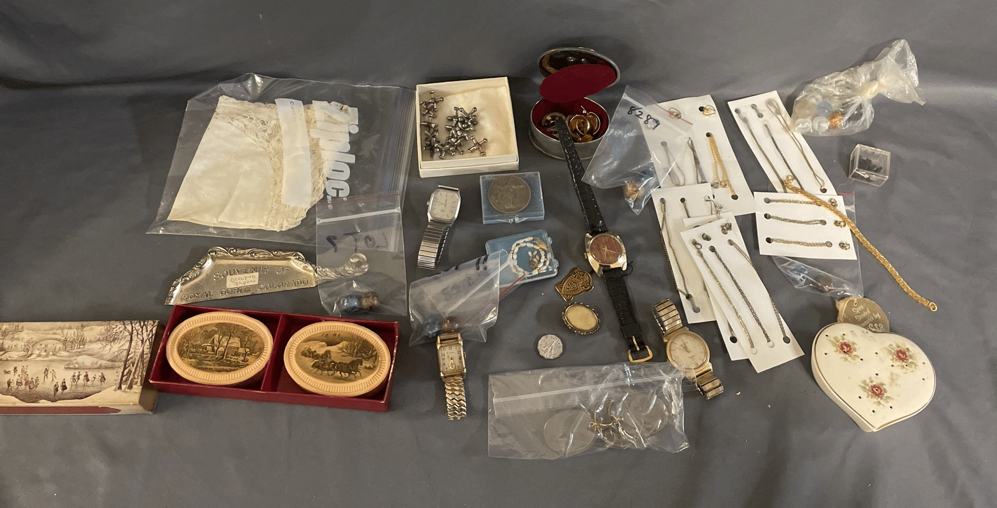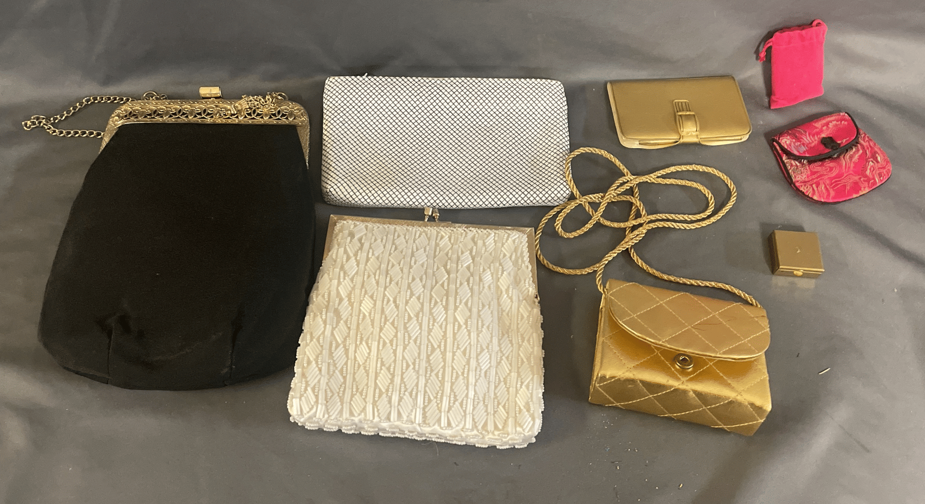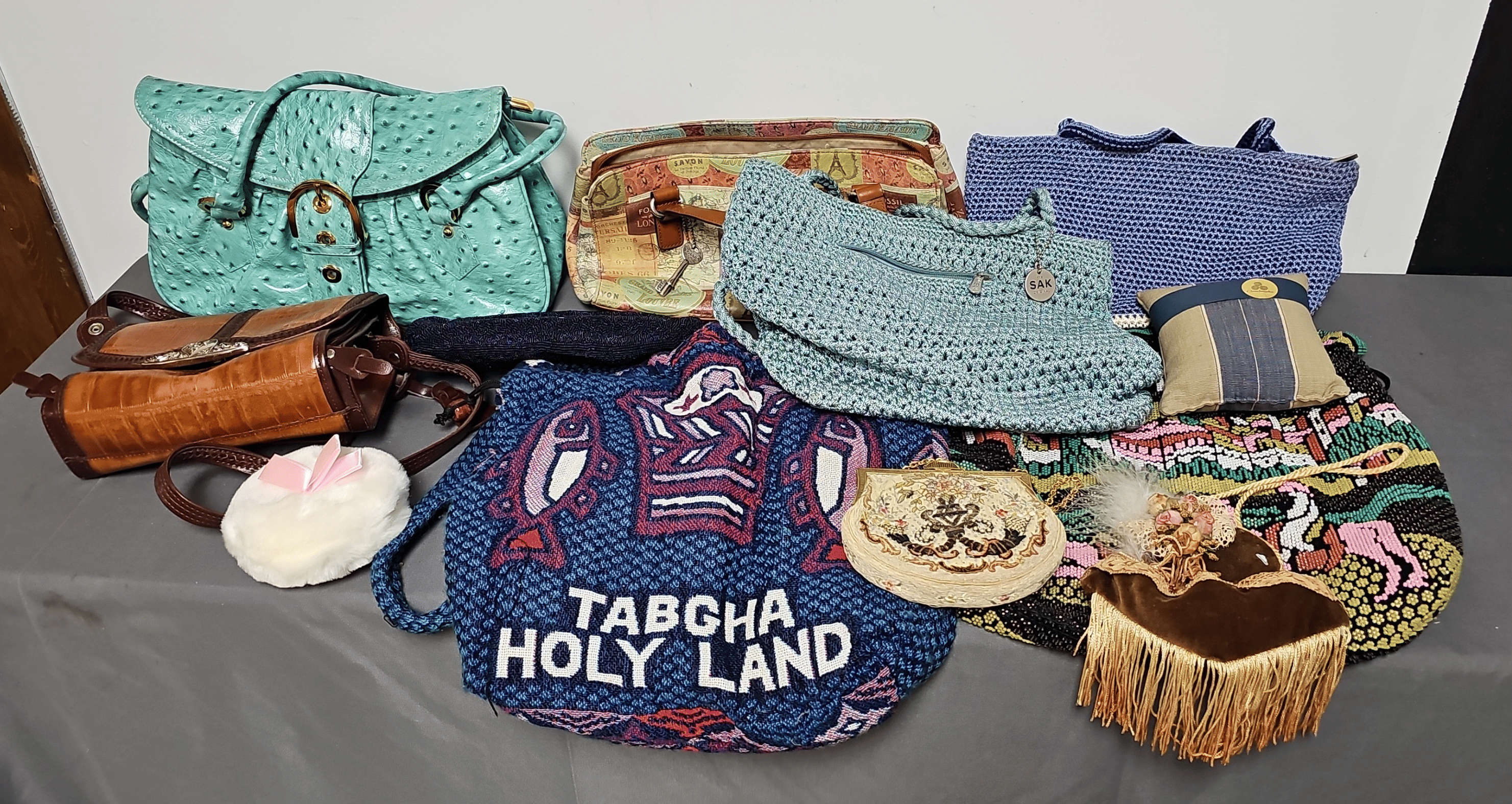 1873 Purse Assortment, Shower Hooks, Gift Boxes, Ornaments, Etc