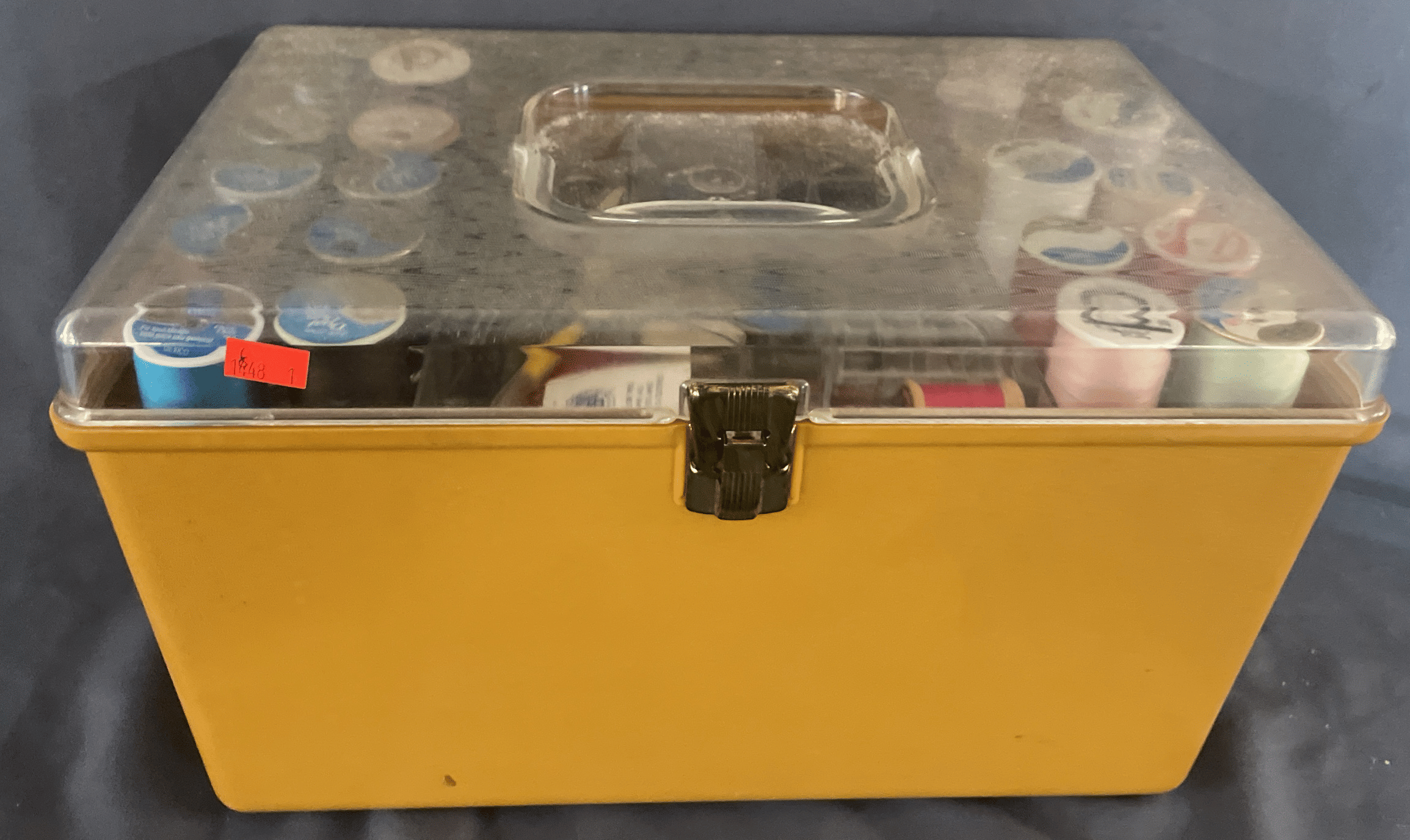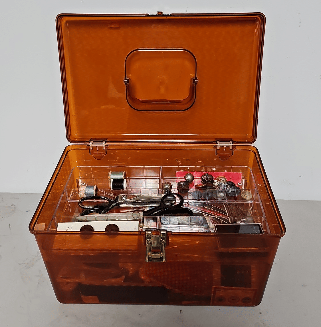 1848 Plastic Sewing Kit Inc. Needles, Thread, Seam Rippers, Etc. (Contents Included)