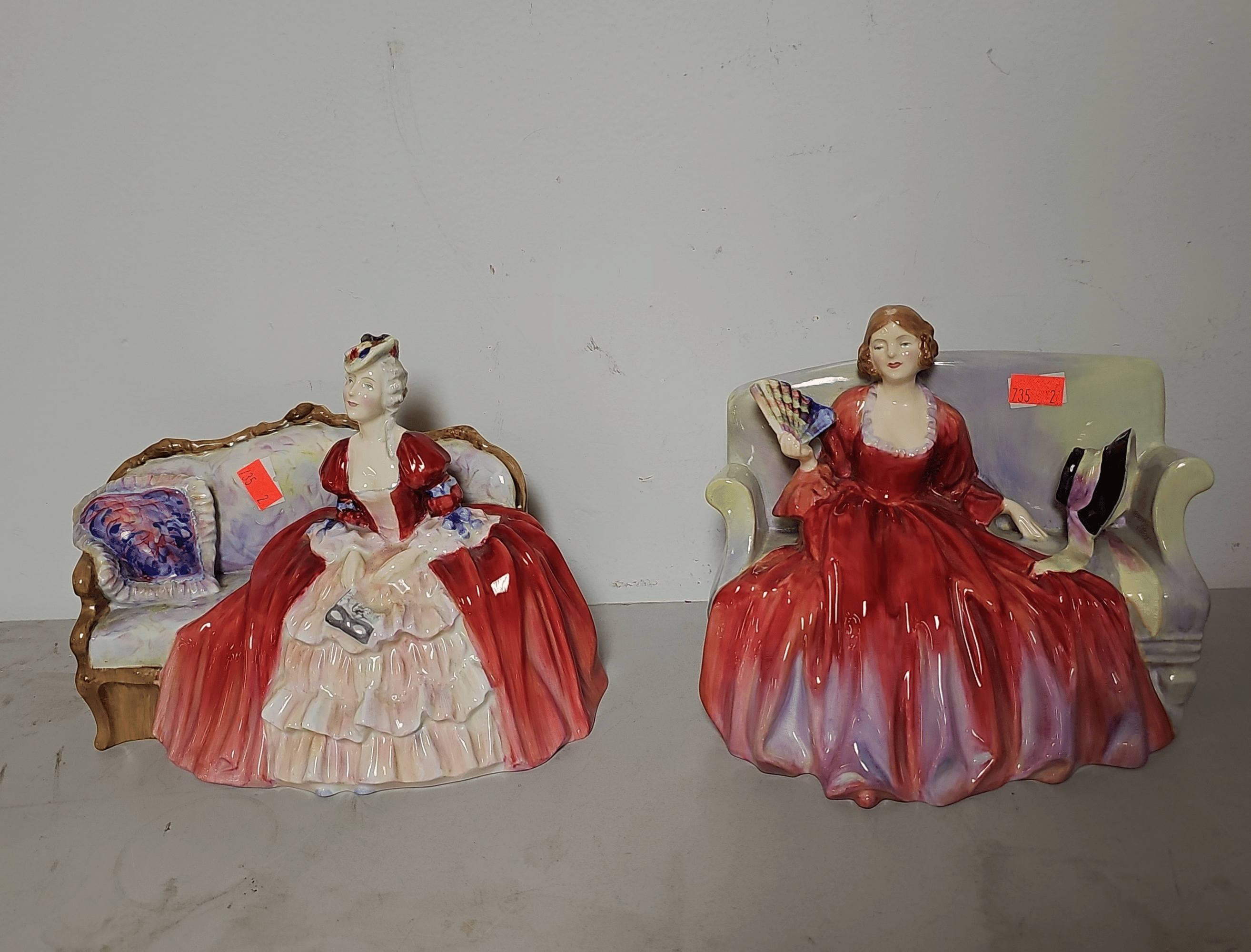 1839 (2) Doulton & Co. Figurines & Porcelain Woman Figurine 6-9” damaged hand
