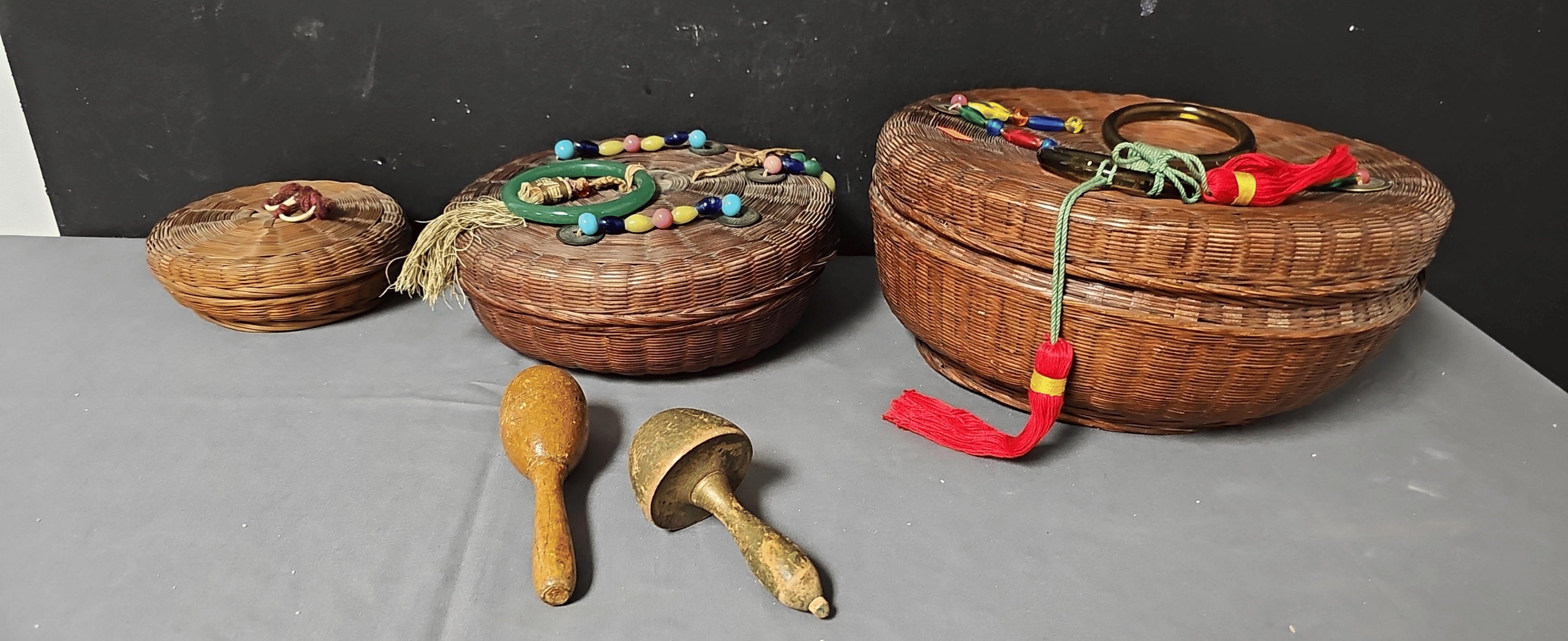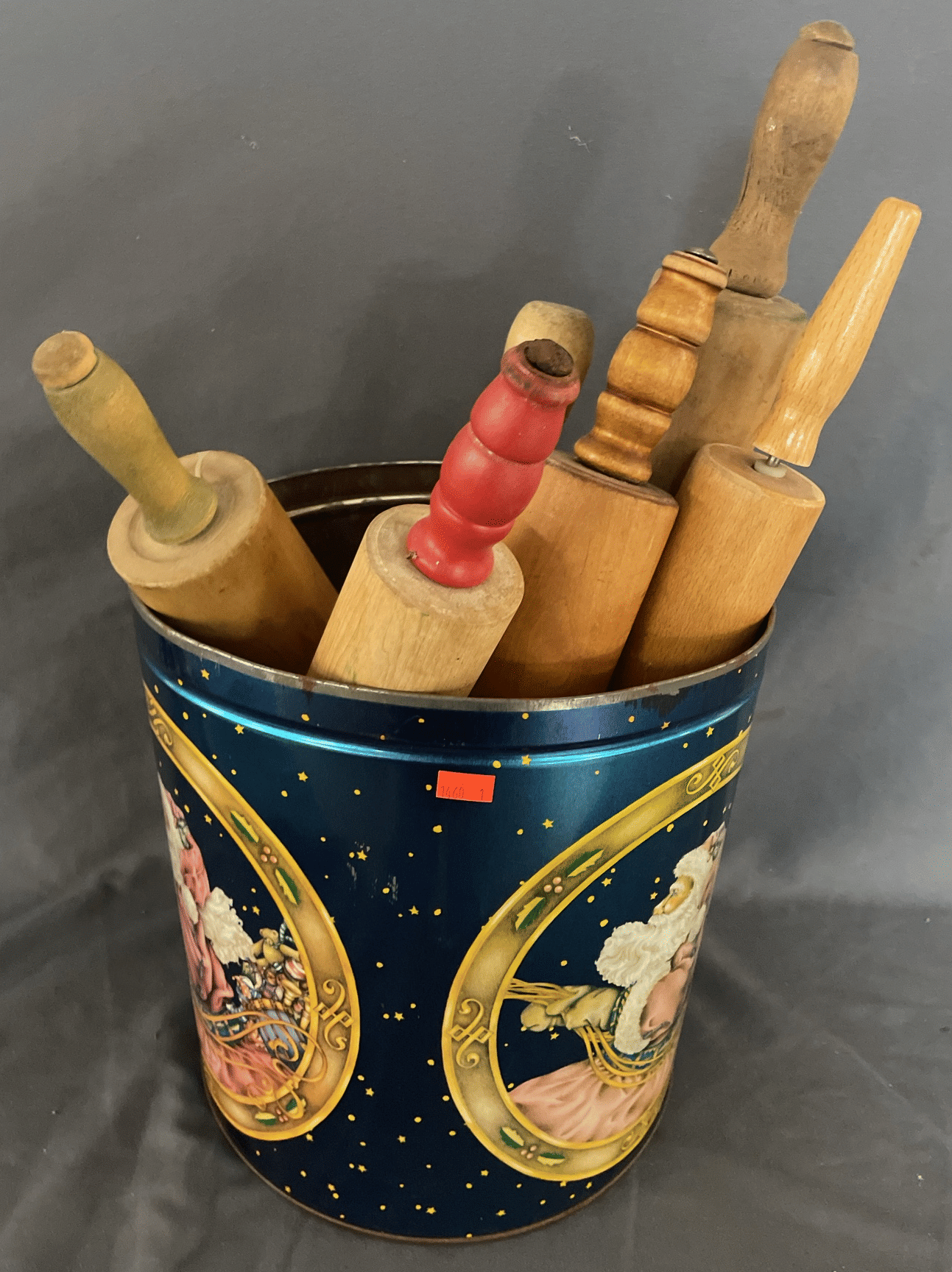 1860 Christmas Tin 11", (6) Wood Rolling Pins 16" - 18"