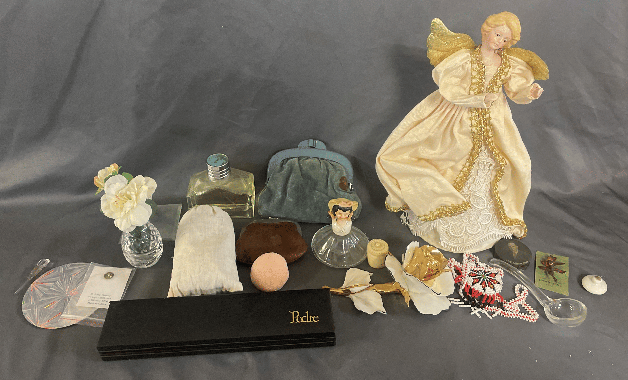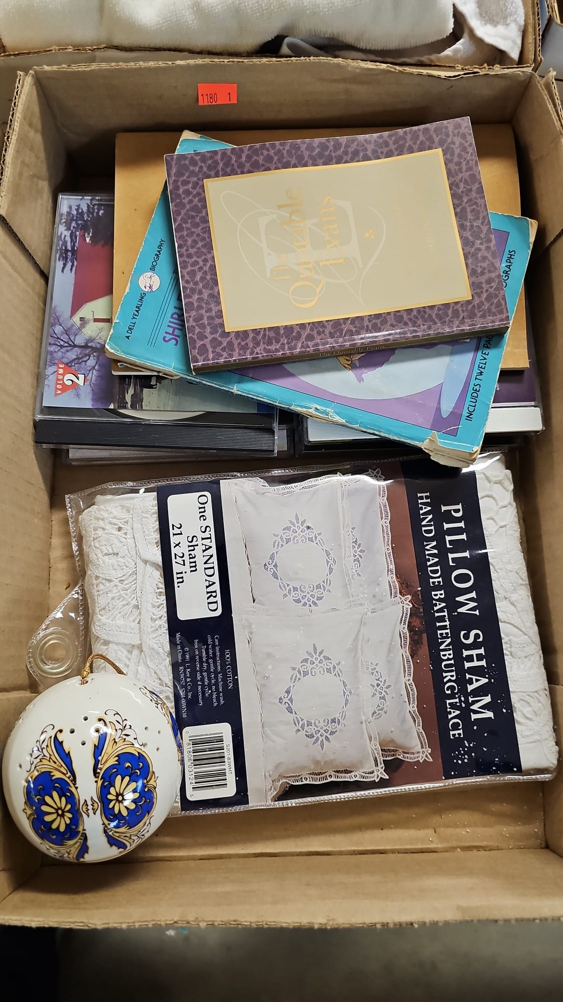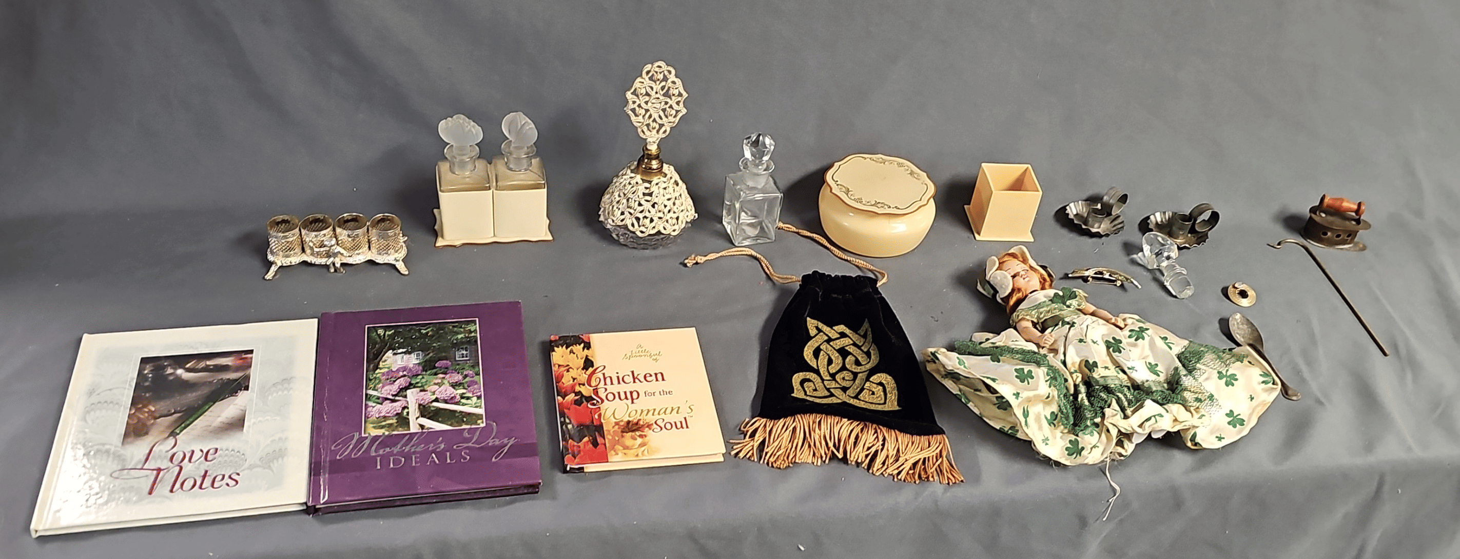 1871 "Valerie" Ornament, Handkerchief, Clear Glass Vase, Gift Bags, Book Assortment, Etc