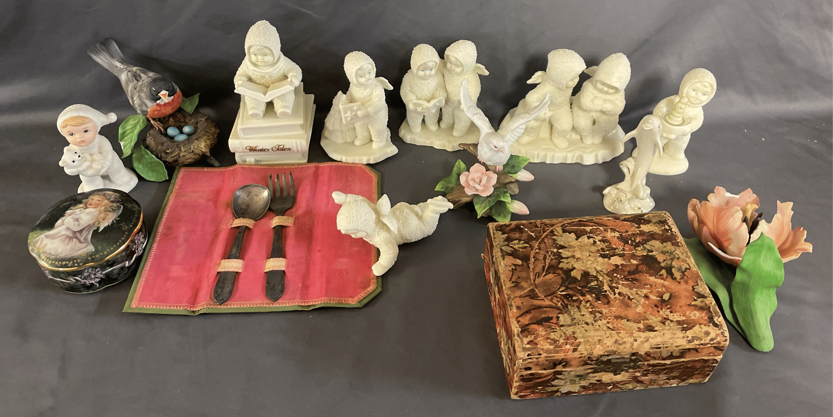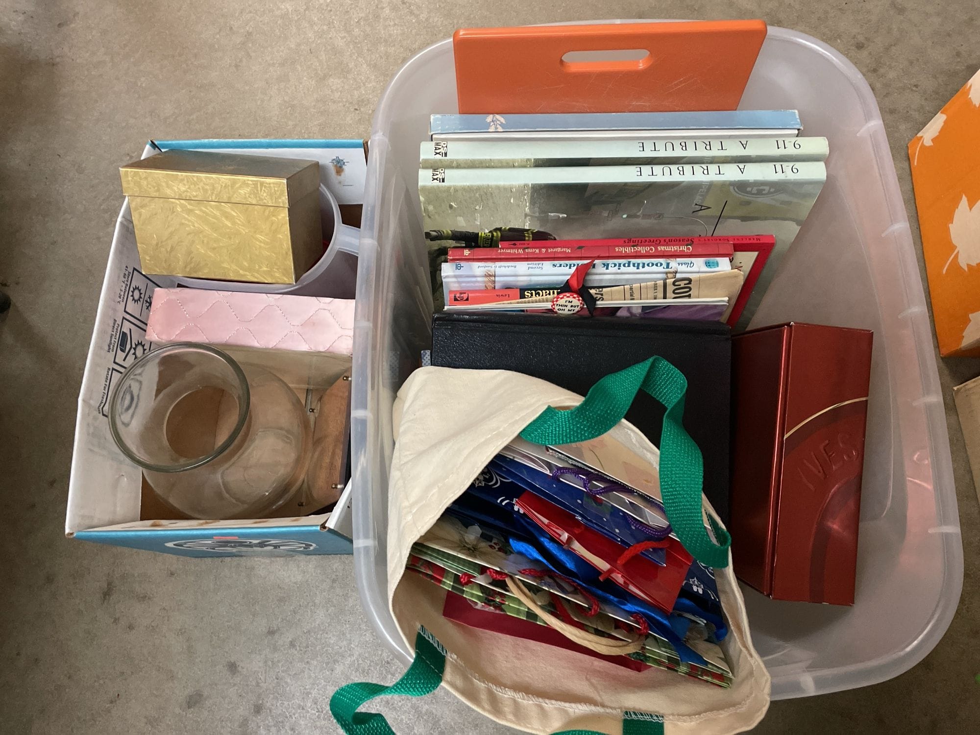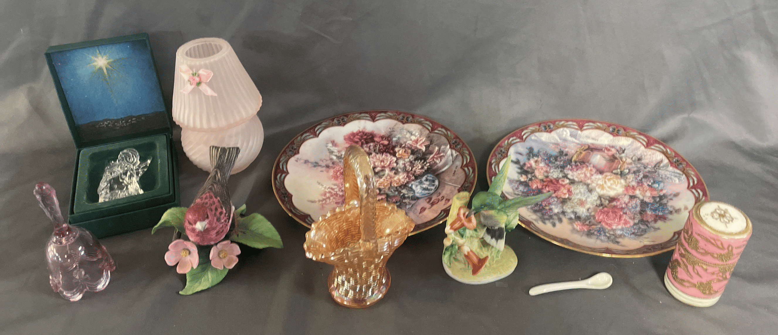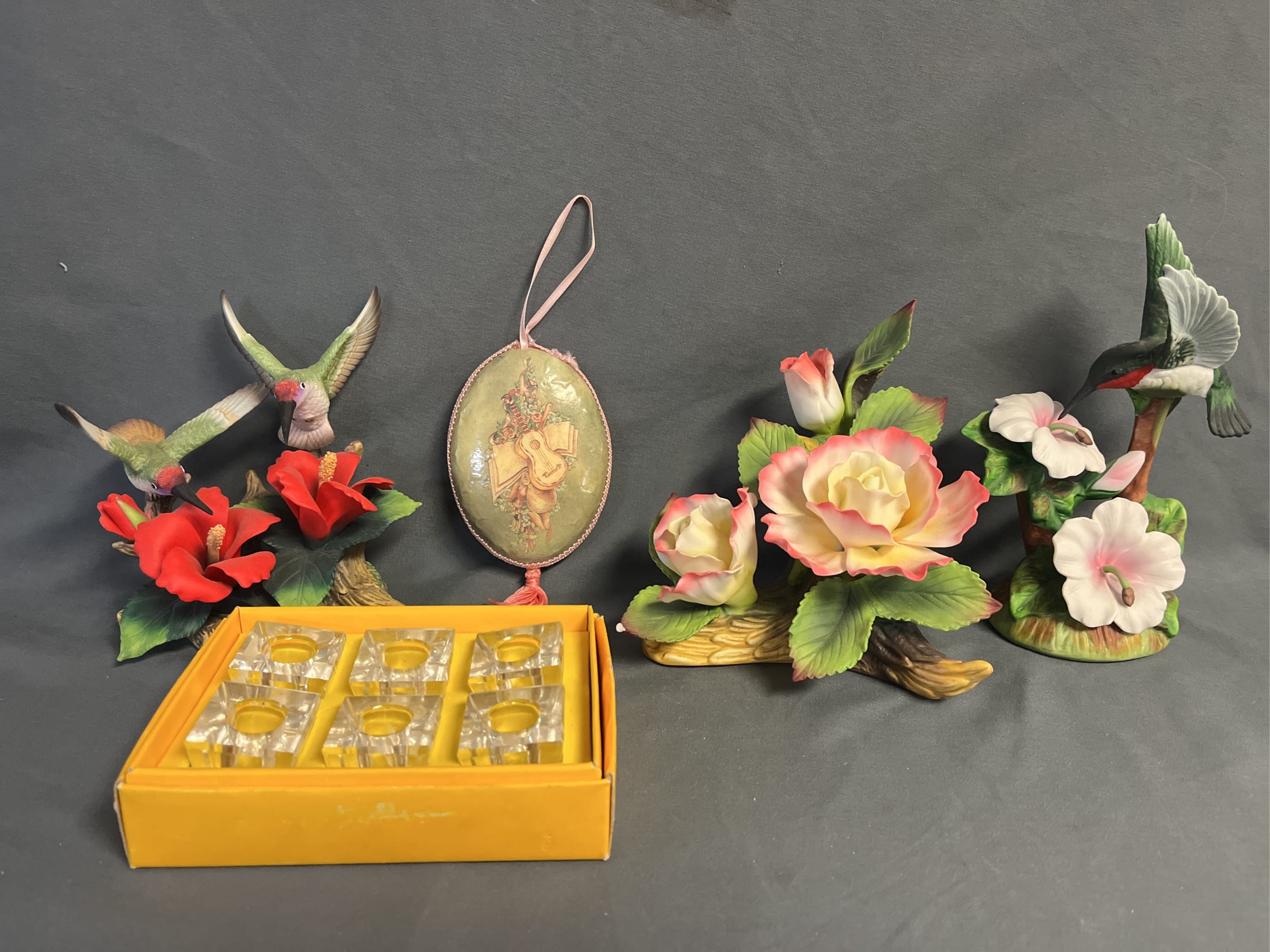 1871 "Valerie" Ornament, Handkerchief, Clear Glass Vase, Gift Bags, Book Assortment, Etc
