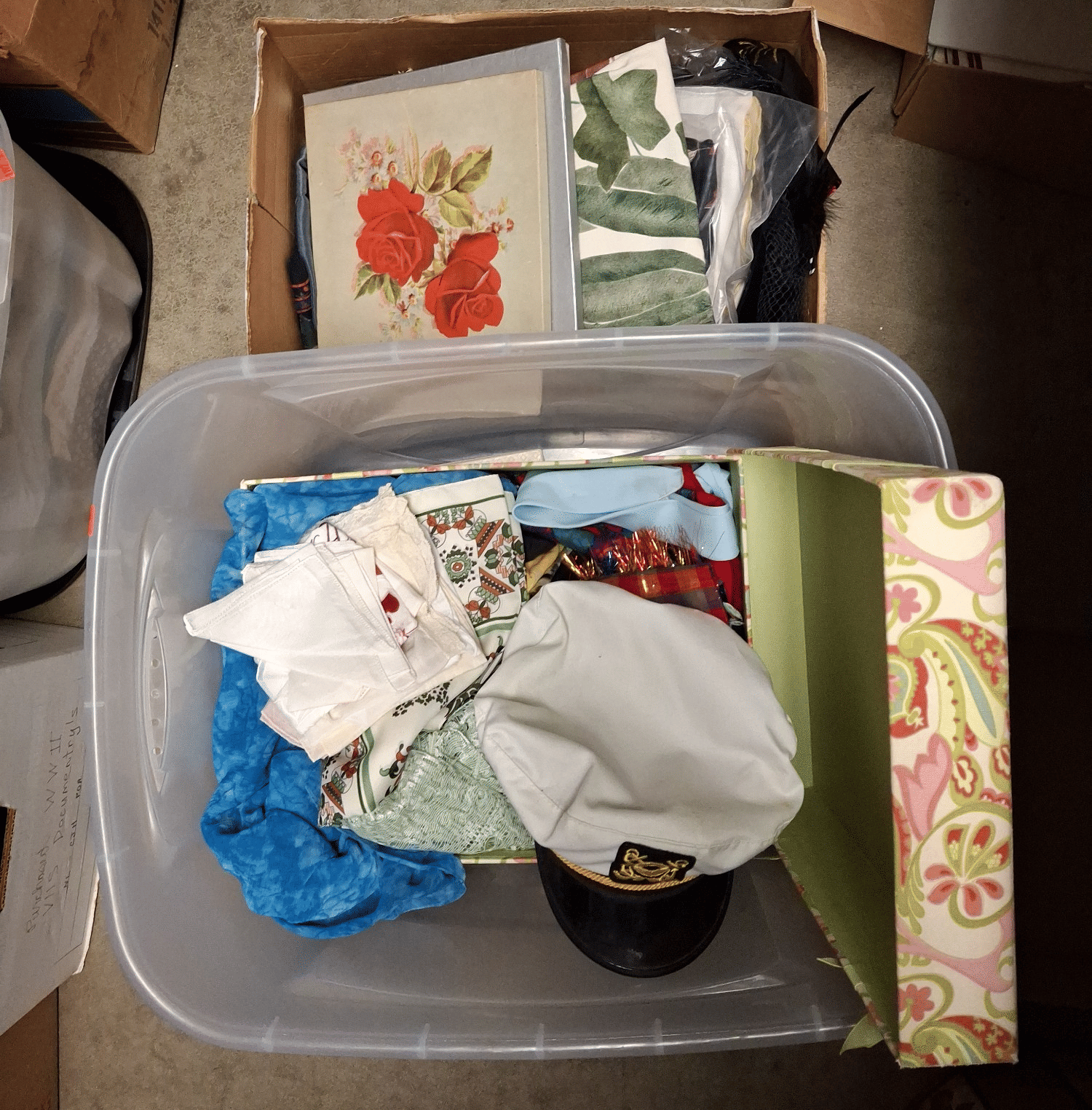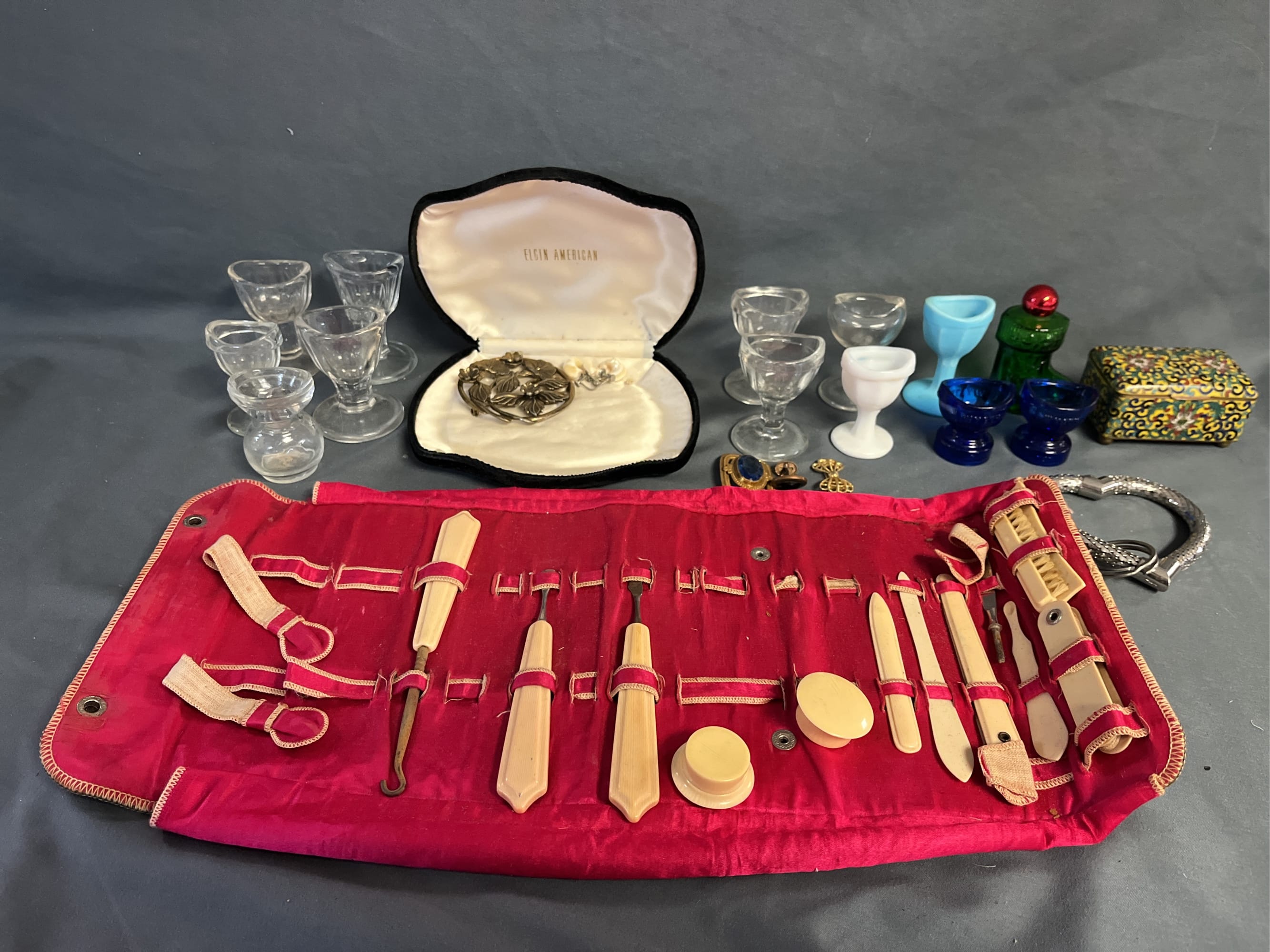 1870 Ladies Slips, Plastic Tote, Food Chopper, Nail Polish Assortment, Plate (Made in Italy), Etc