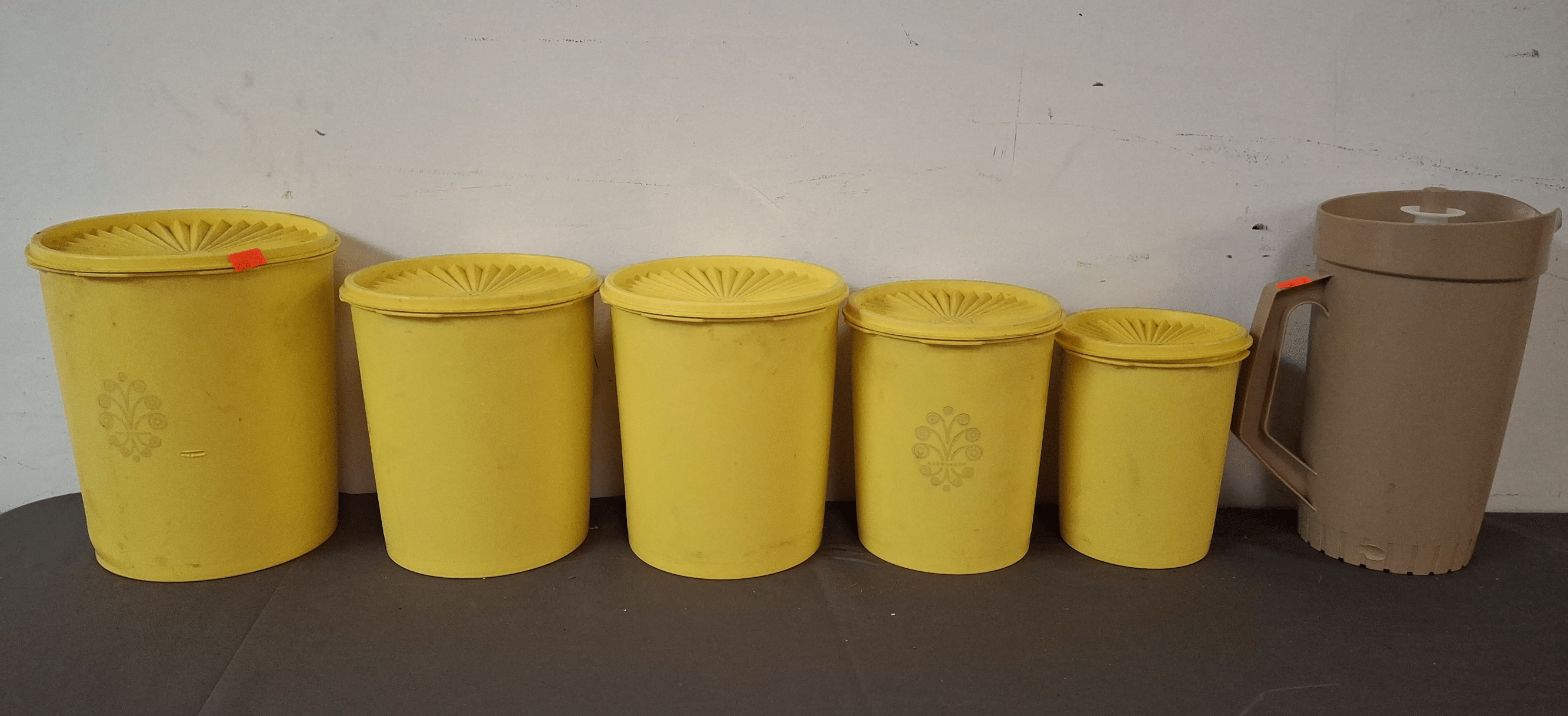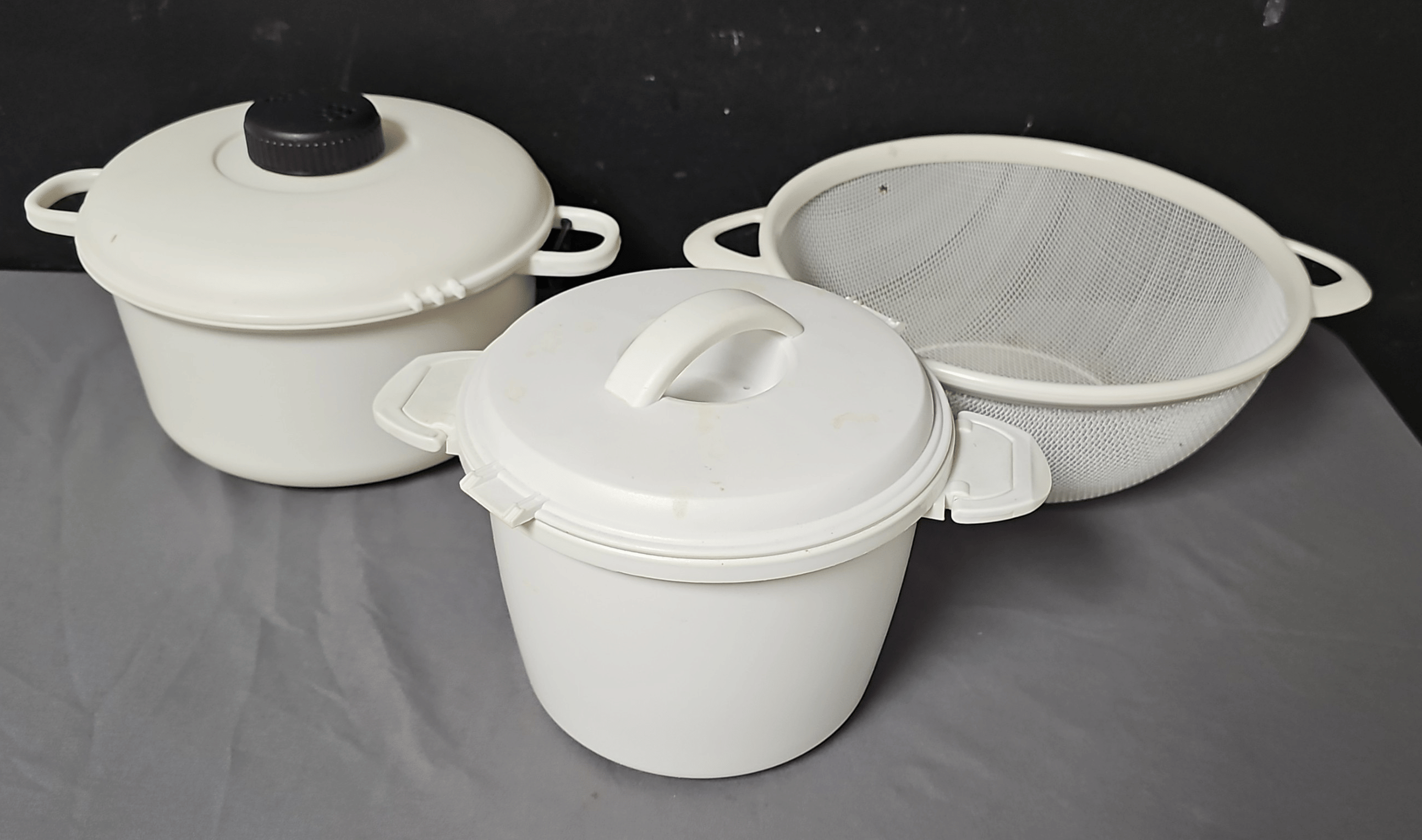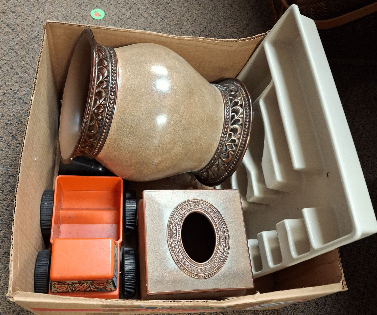 1698 Tupperware Toys Truck, Allison Waste Basket Taupe Stone, Allison Tissue Cover Taupe Stone, Plastic Utensil Organizer