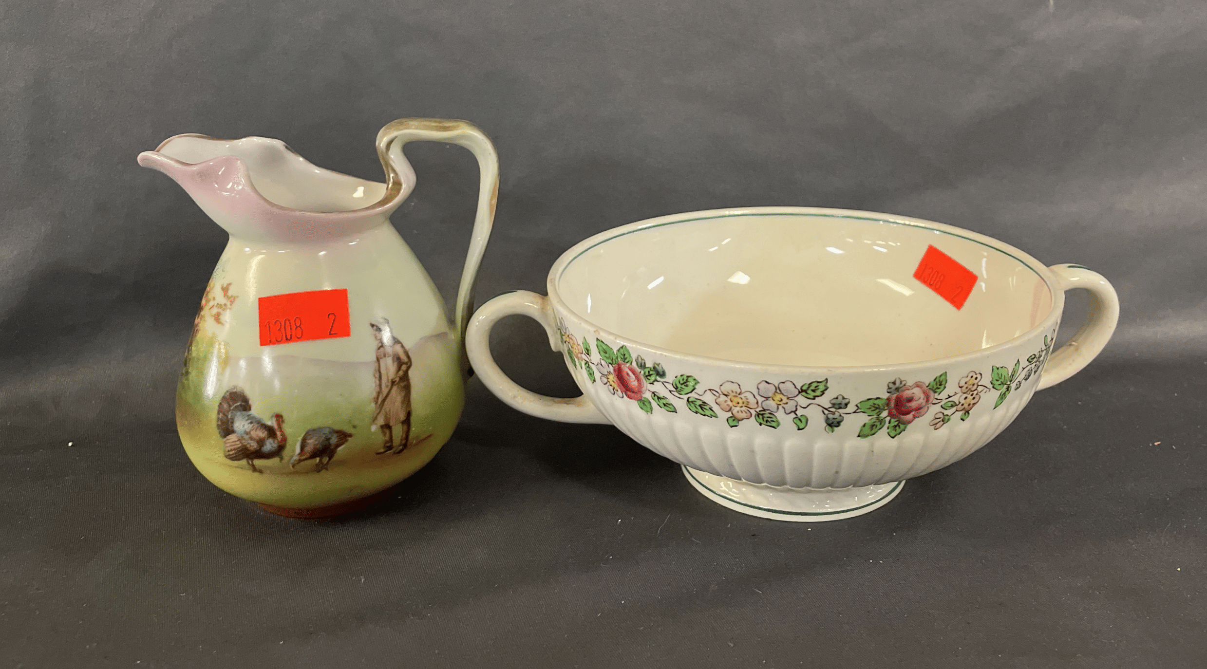 1825 American Art China Co. Pitcher, CC Thompson & Co. Plate 7” 8”