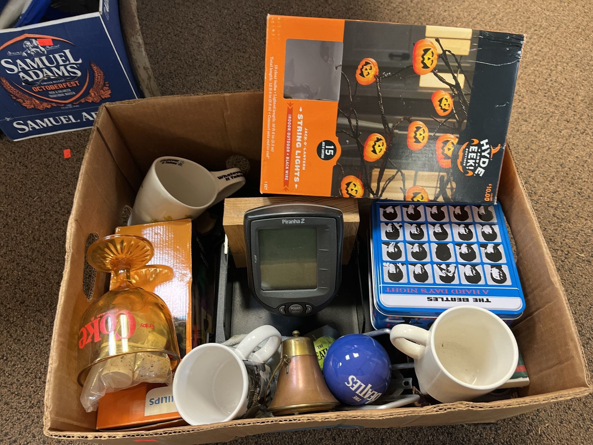 1703 Piranha 2, Enjoy Coke Pedestal Glass, Hyde and Eek Jack-O-Lantern String Lights, Etc.