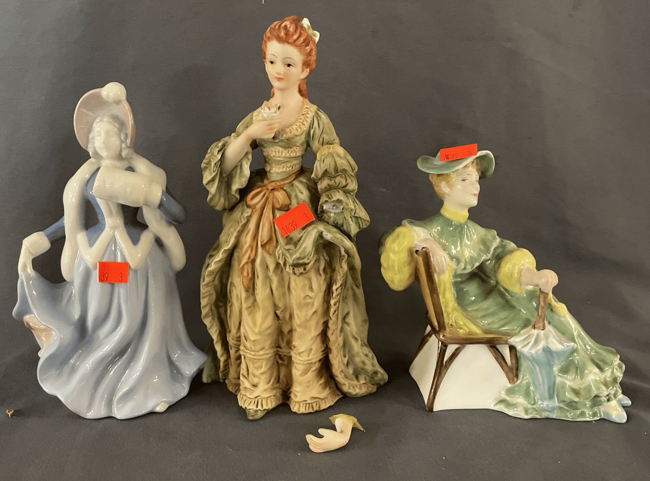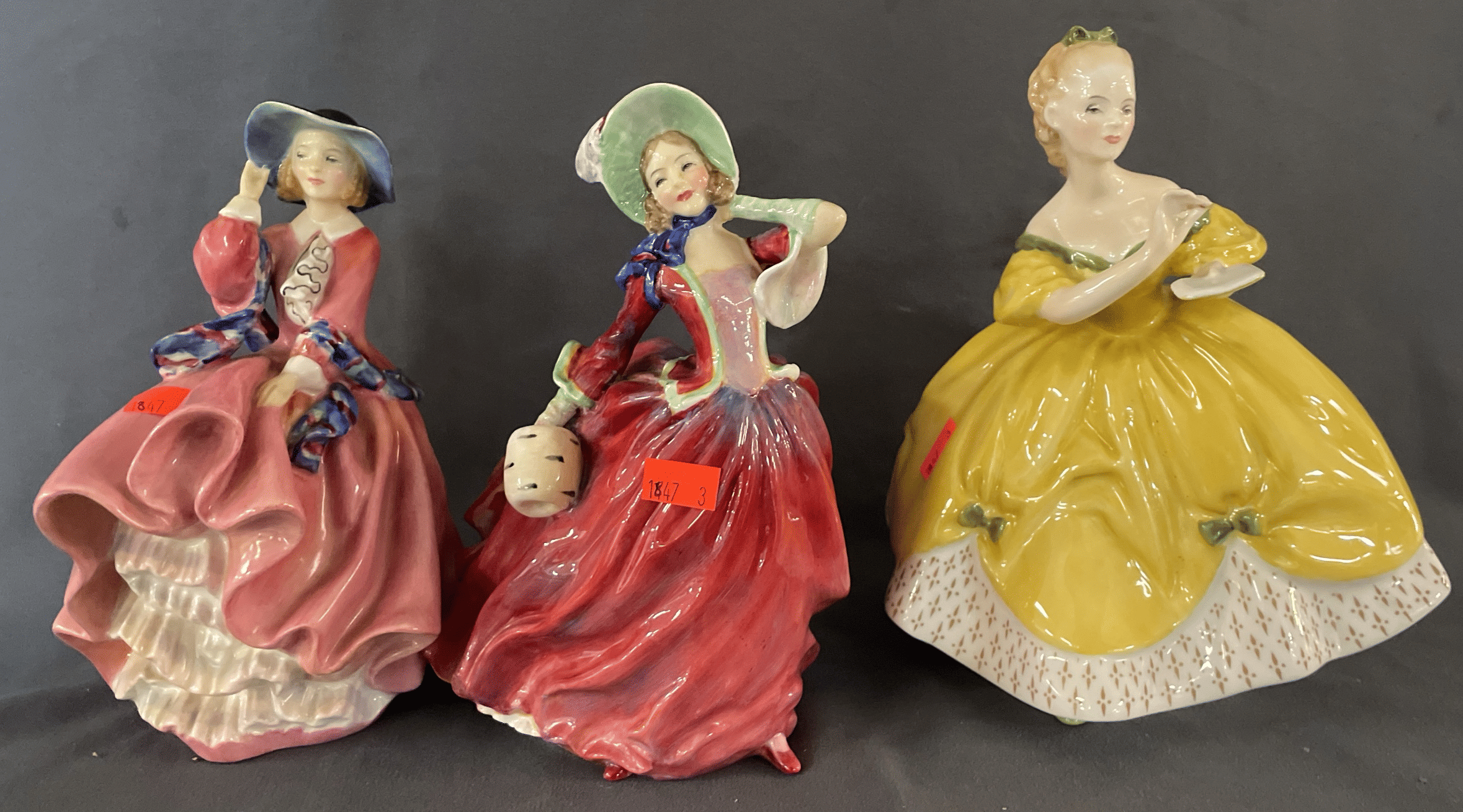 1844 (3) Doulton & Co. Figurines Inc. “Fair Lady” “Southern Belle” “Delight” 7-8”