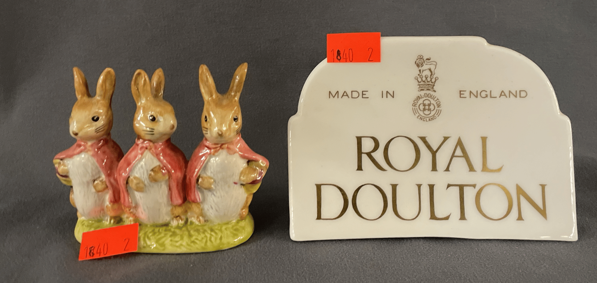 1840 Beatrix Potters “Flopsy Mopsy & Cottontail” Figurine, Royal Doulton Porcelain Sign 3” 4”