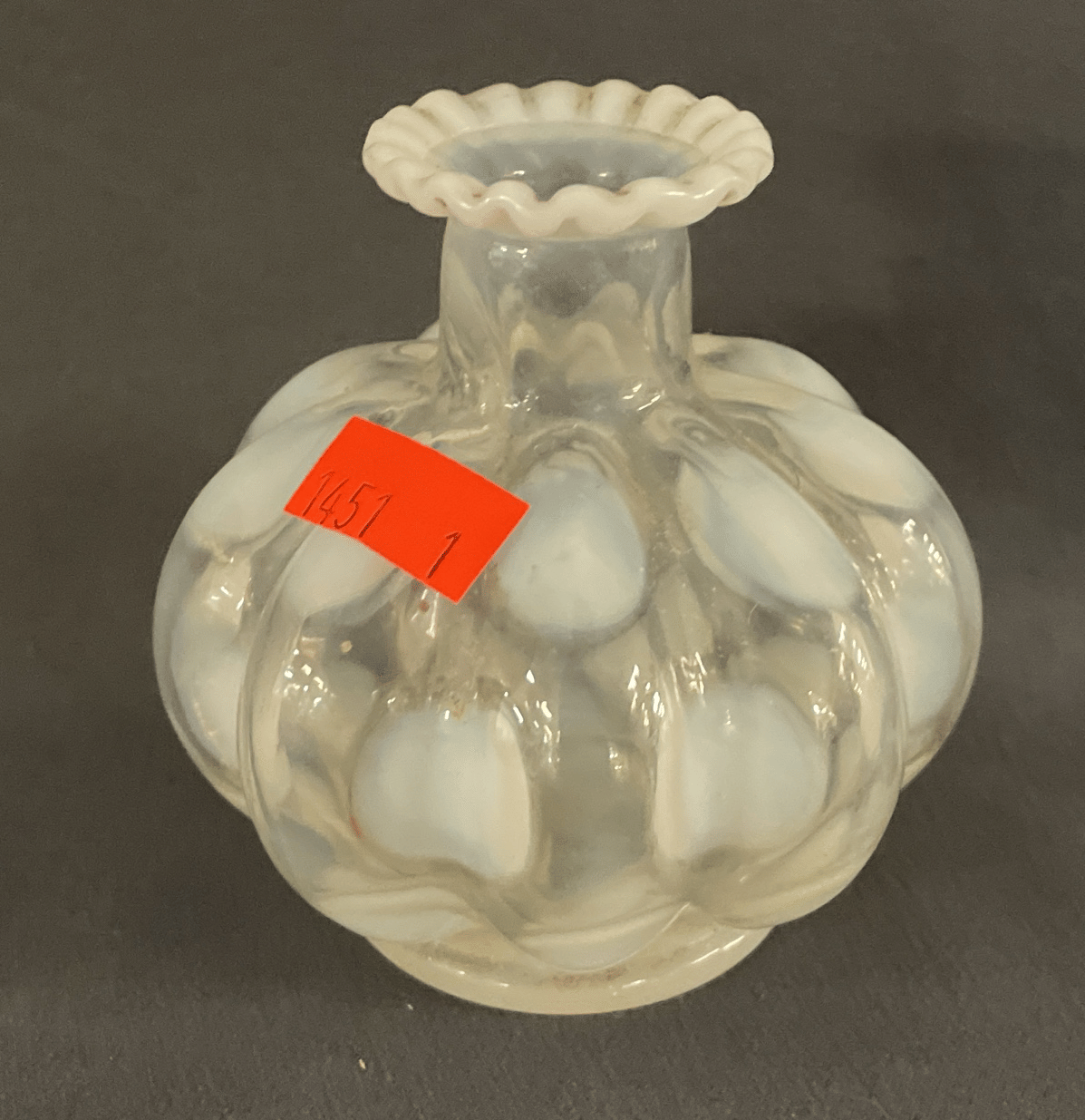 1851 White and Clear Glass Vase 3.5"