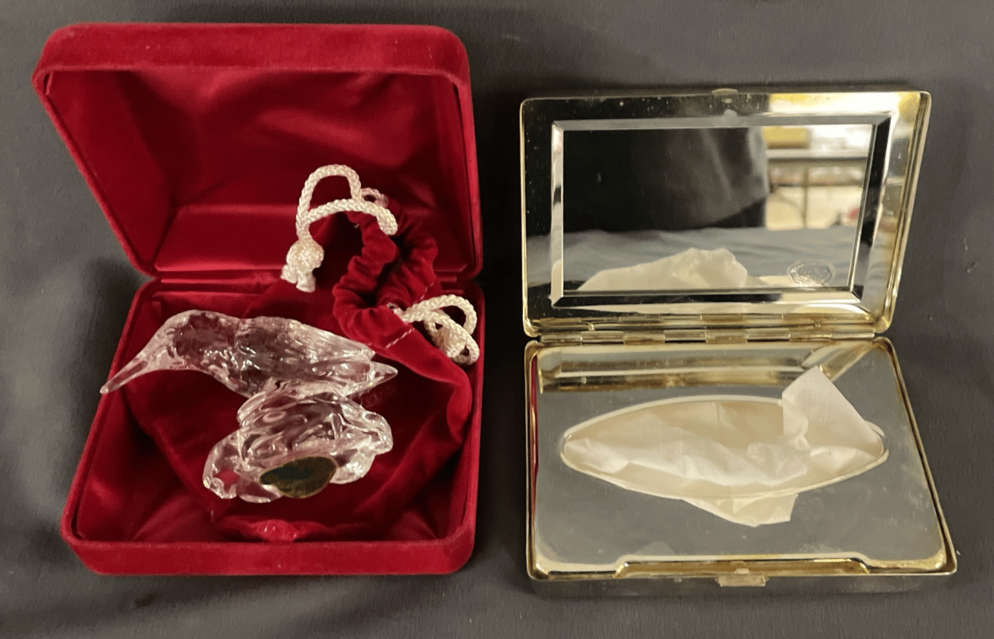 1853 Waterford Crystal Bird 2.5", Metal Tin Kleenex Holder 4.5"