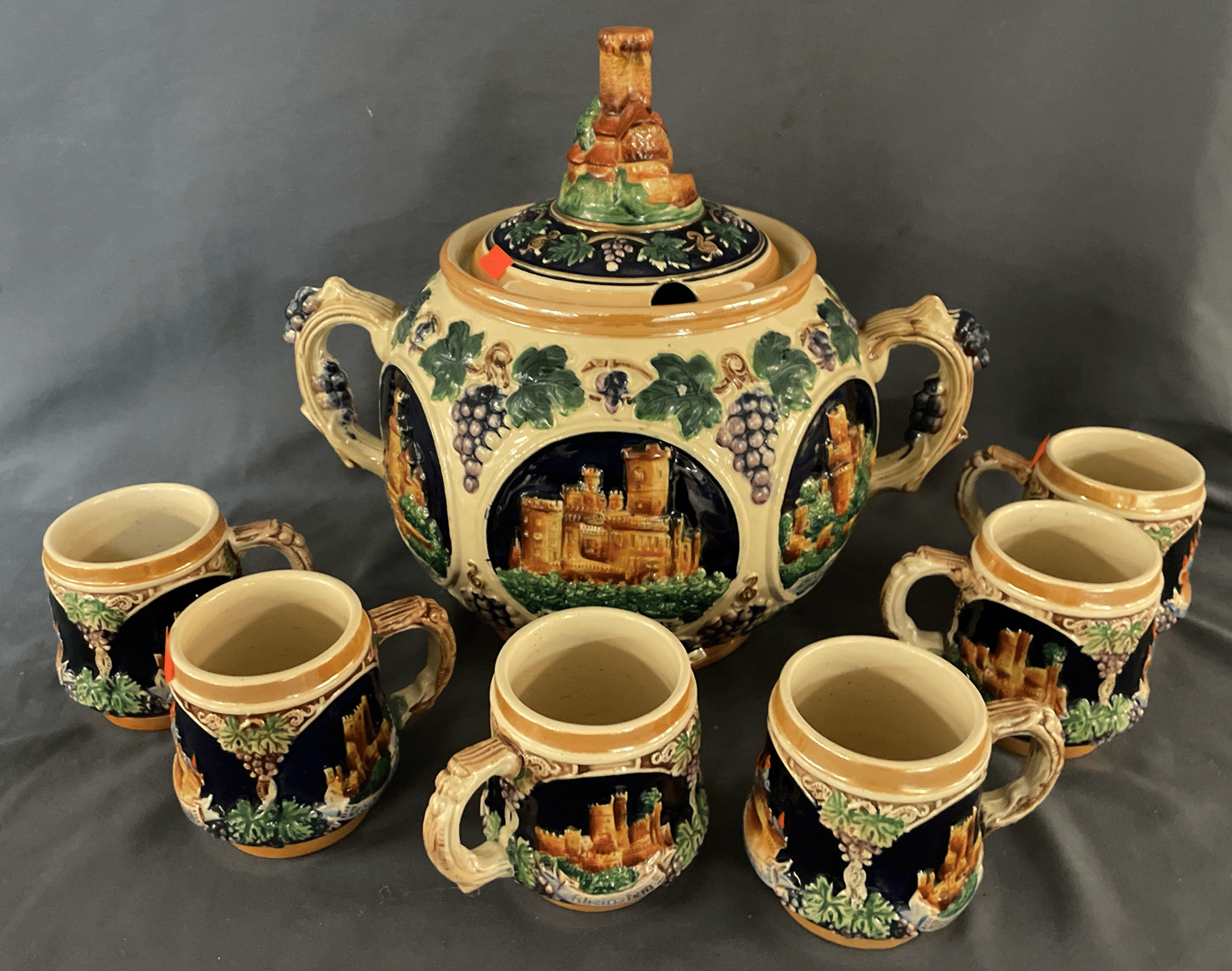 1861 GPD Imports Tea Pot 12" and (6) Cups 4", (Made in West Germany)