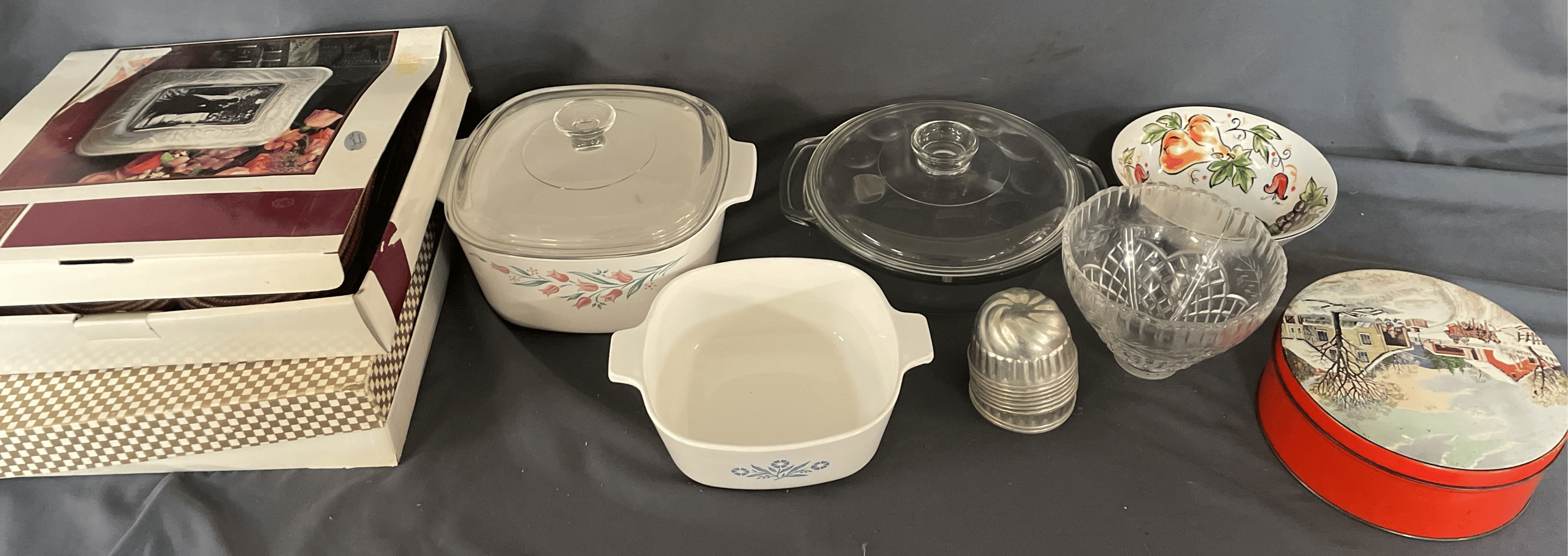 1864 Baking Dishes, Photo Album, Picture Frames, etc