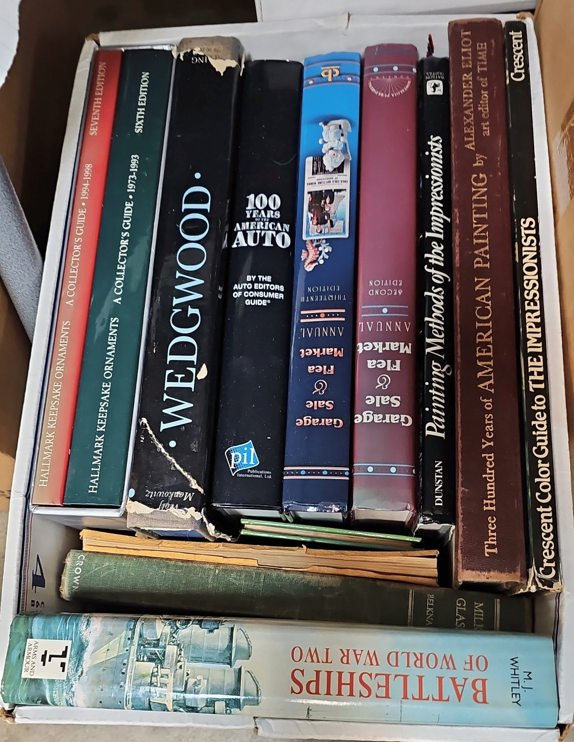 1874 Book Assortment Including Garage Sale, 100 Years of American Auto, Battleships of World War Two