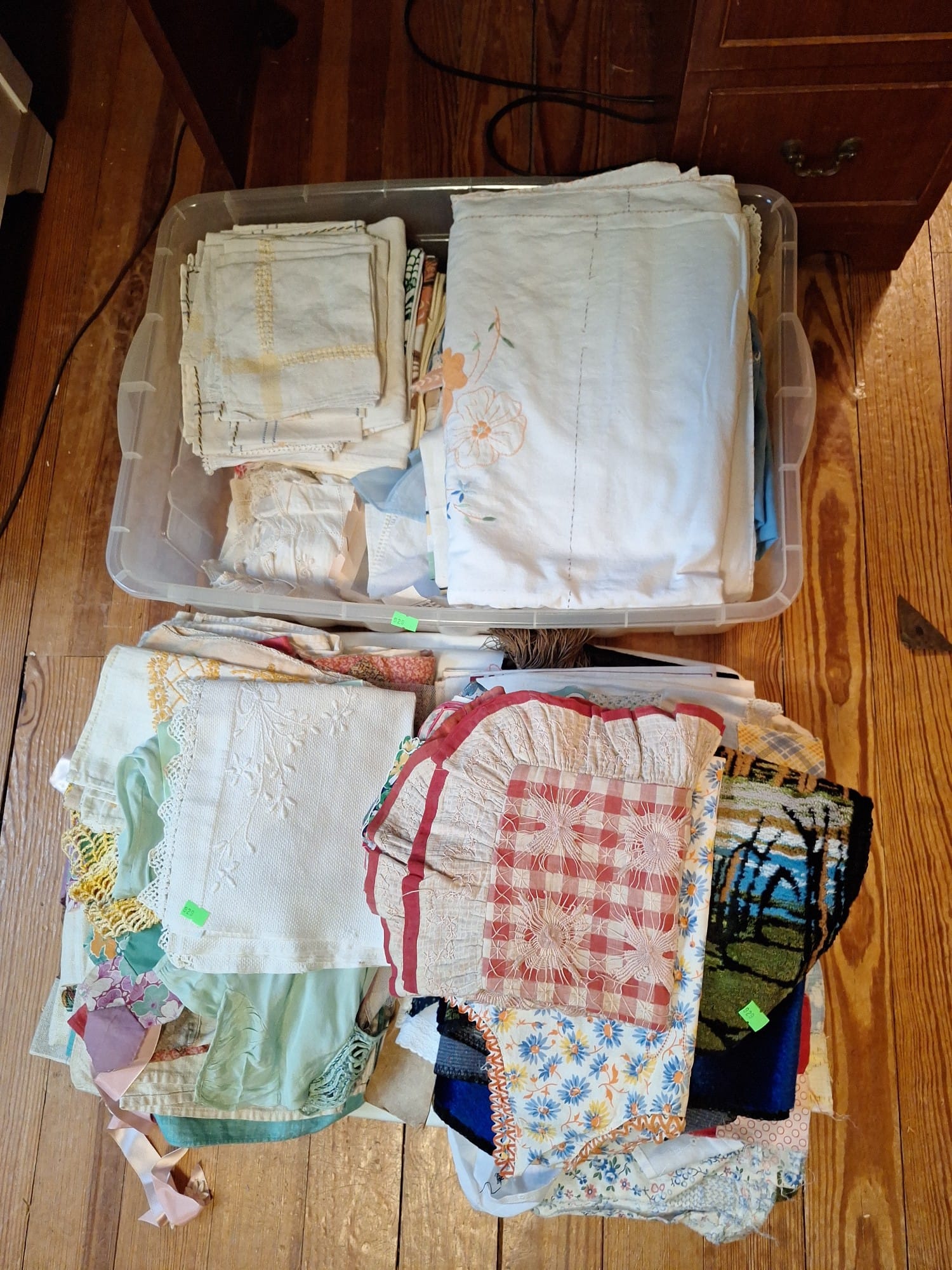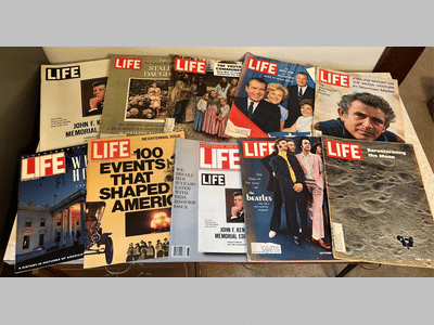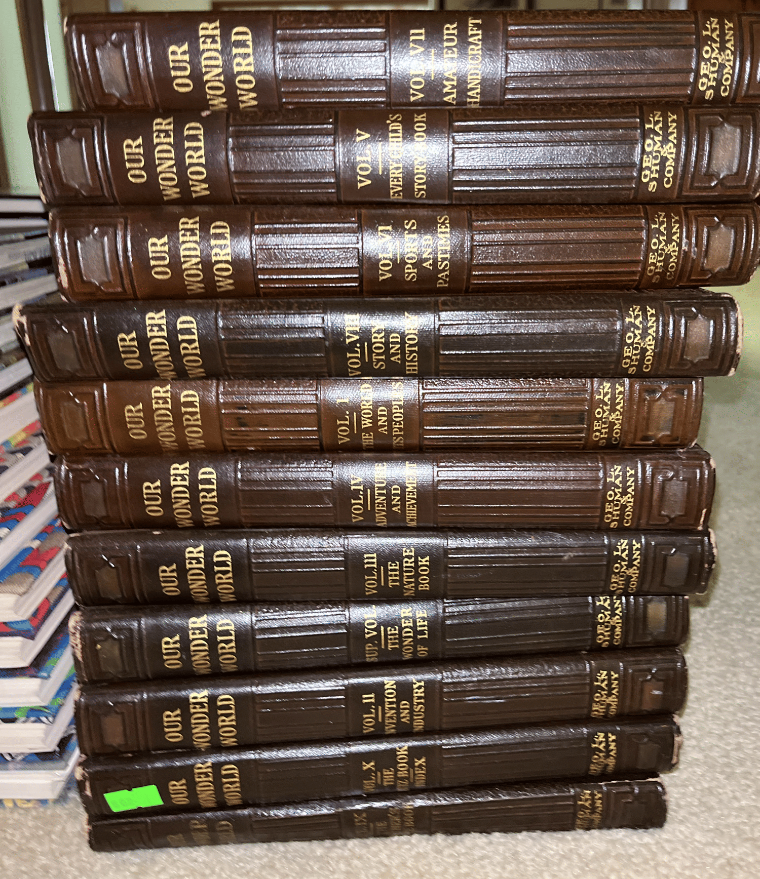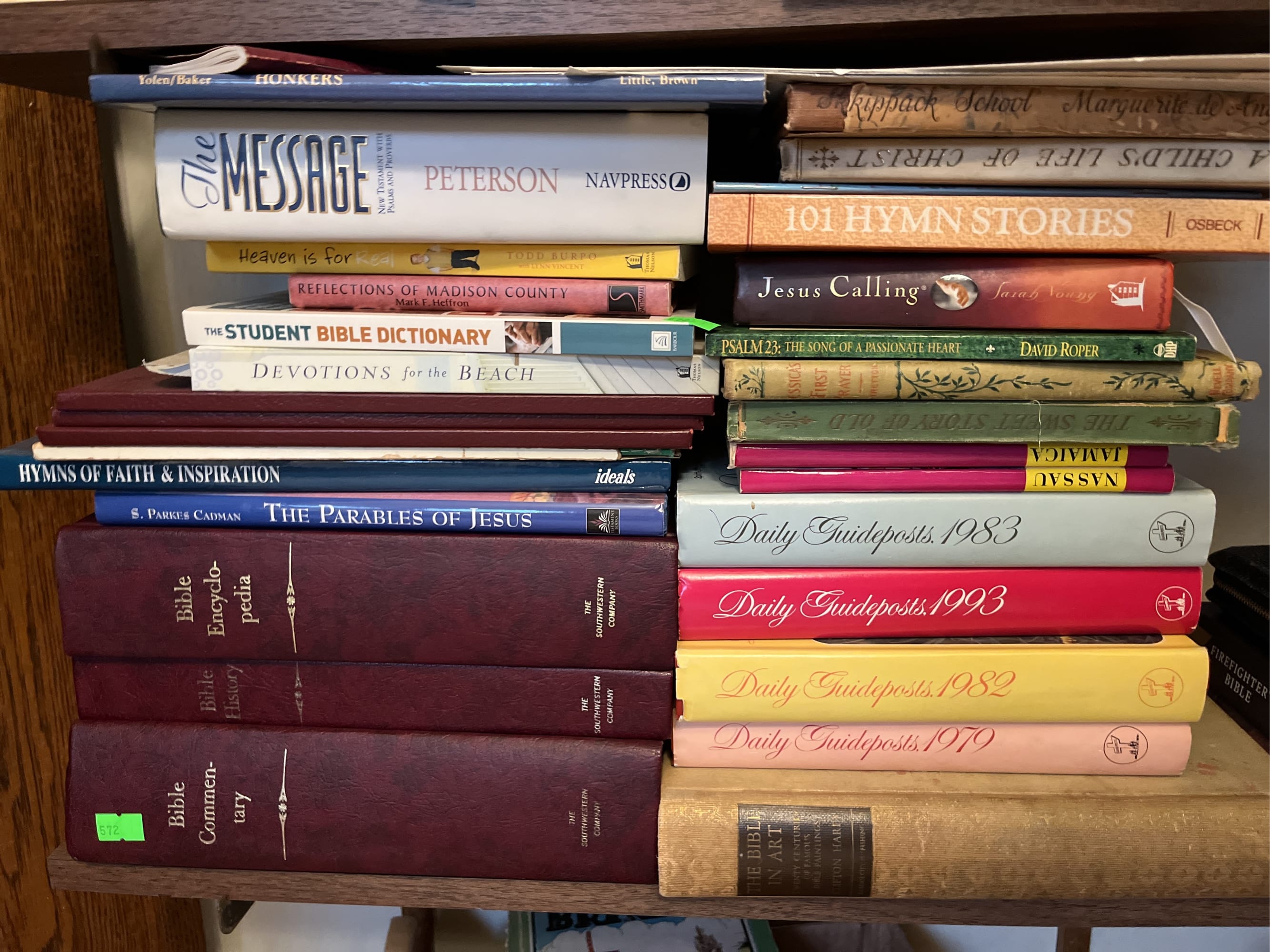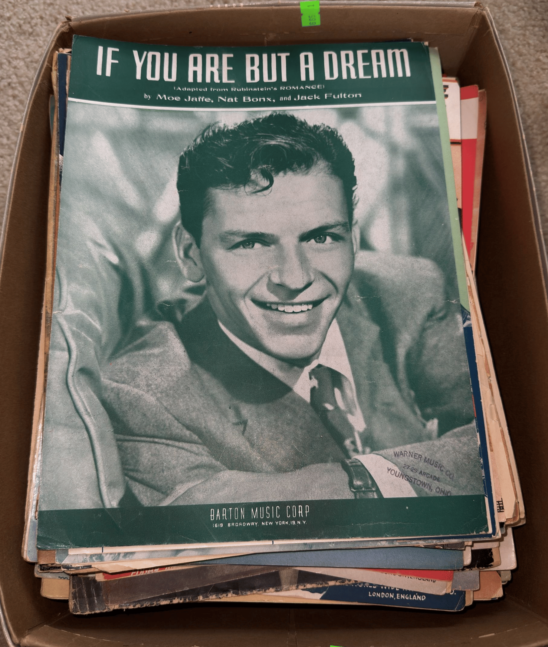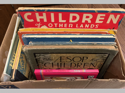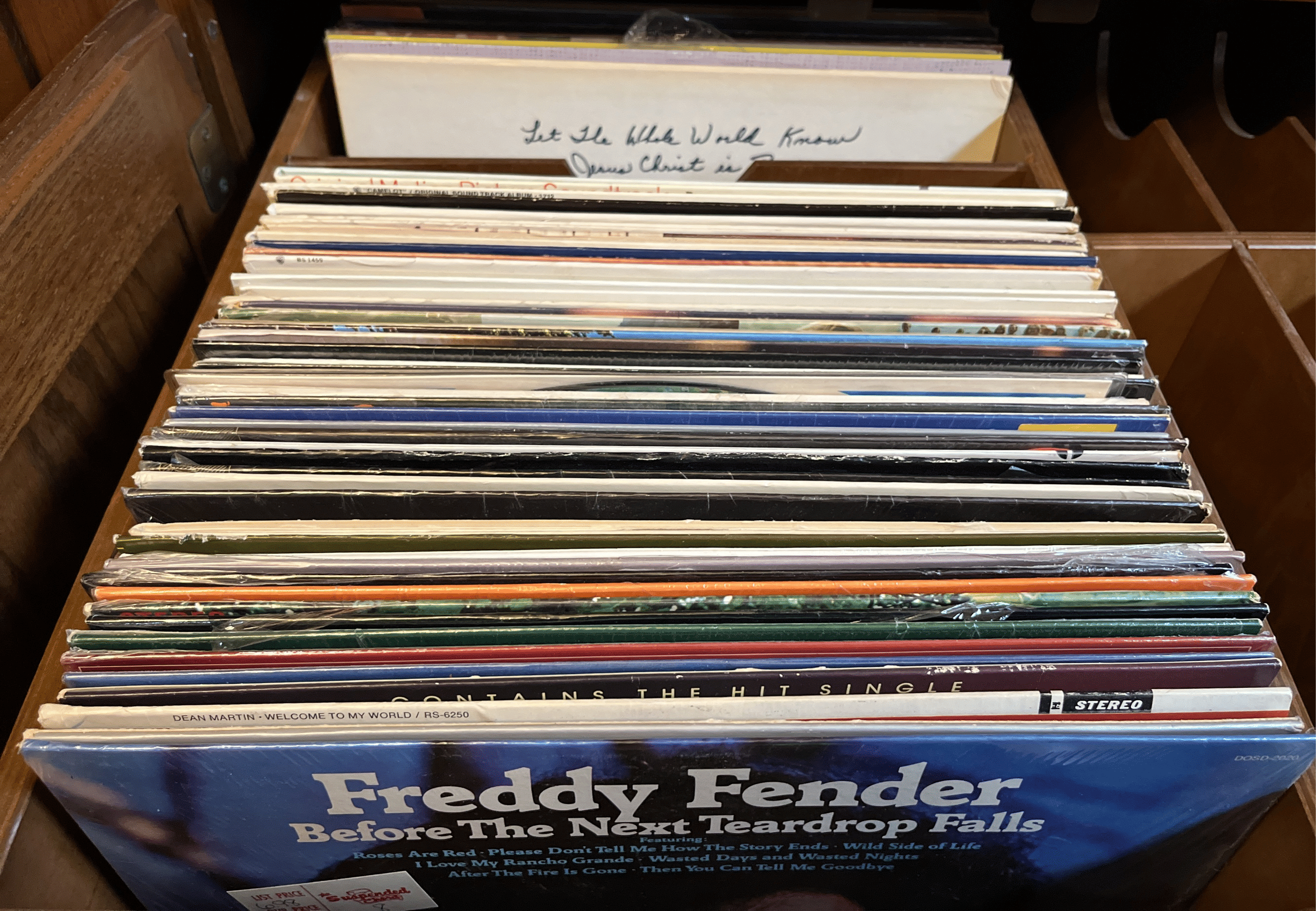 17 Goshen Electric advertising thermometer and clip board, First National Bank calendar 1973, Kok’s Woodgoods advertising gavel, Ohio Plate glass paperweight, New Haven Motor and Ingersoll pocket watches need repaired