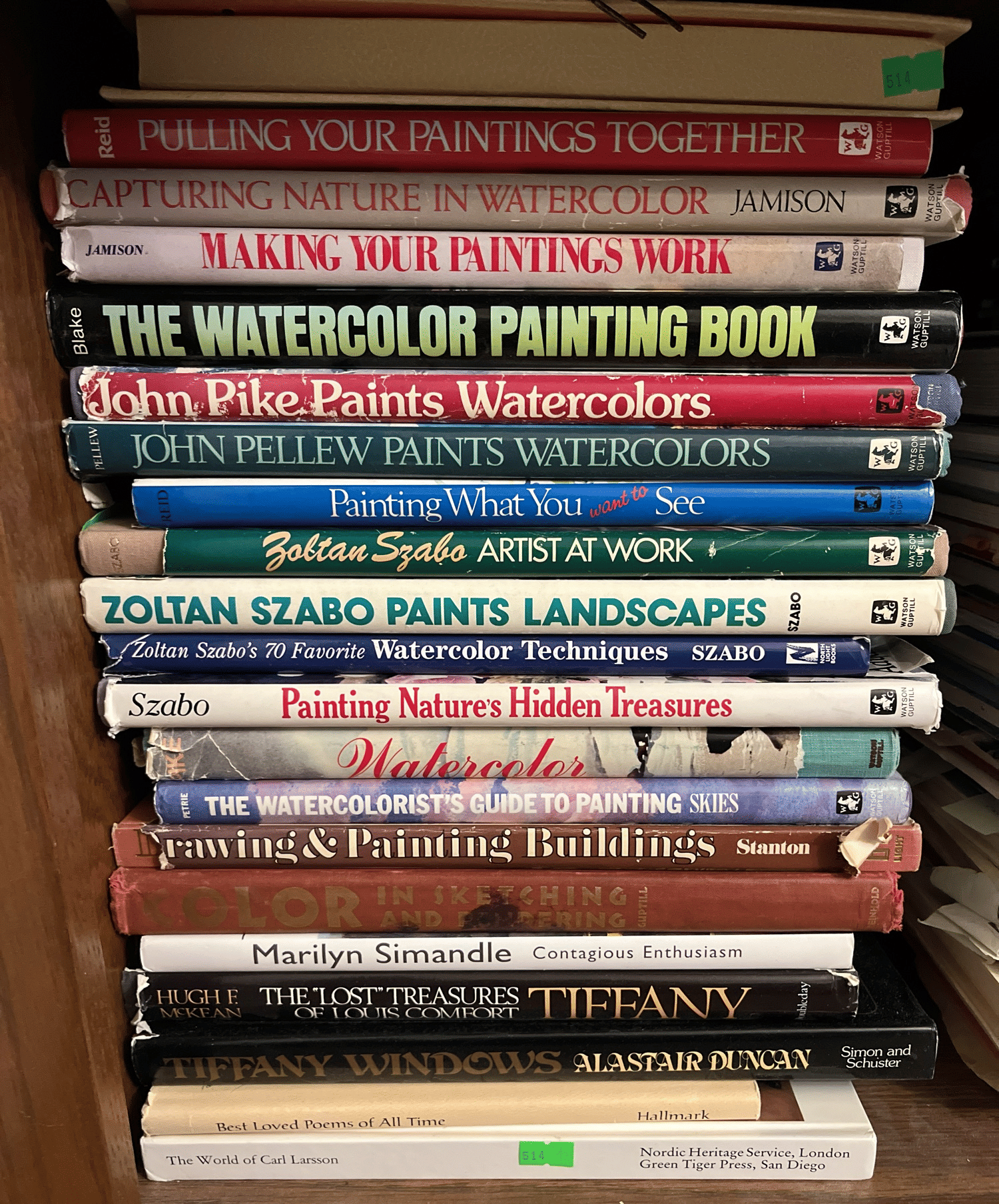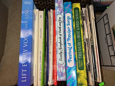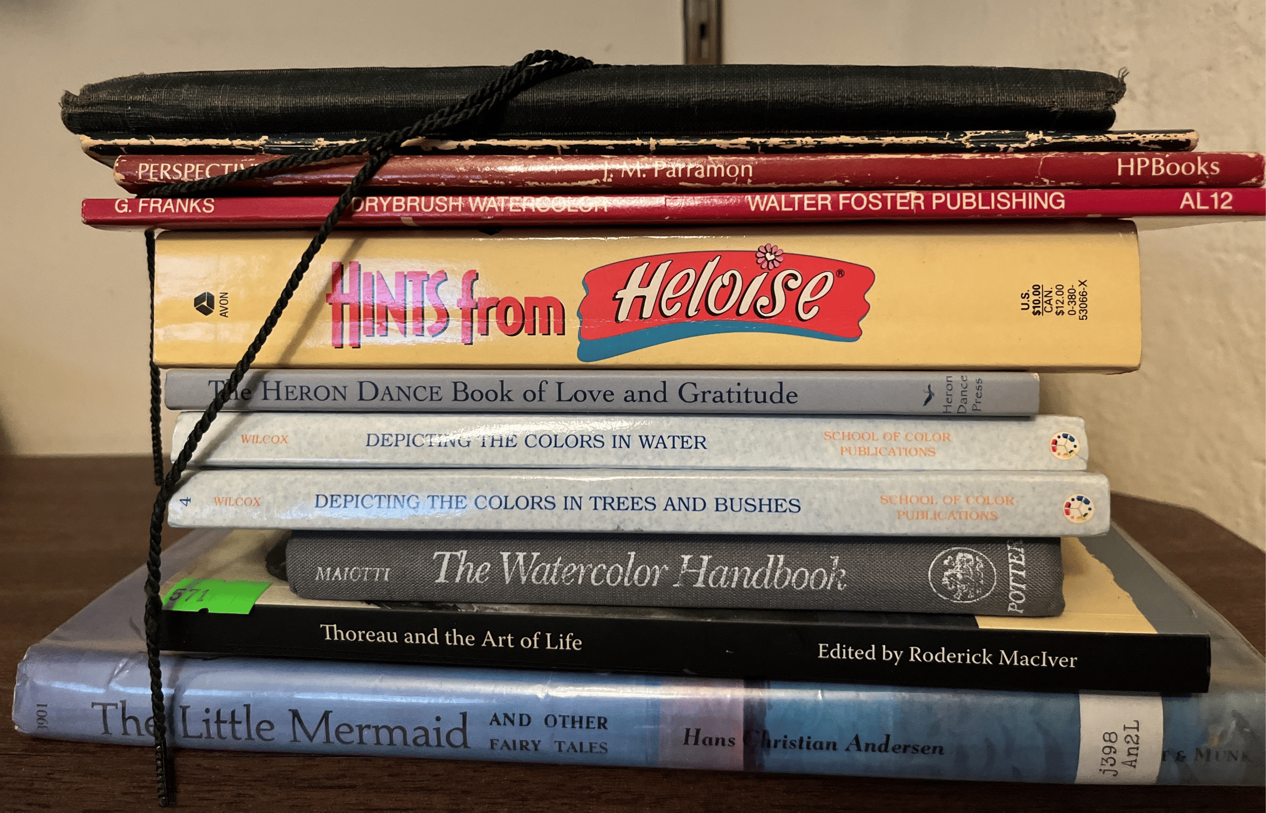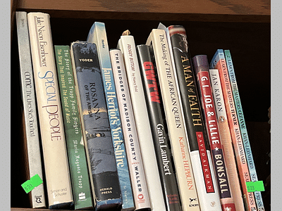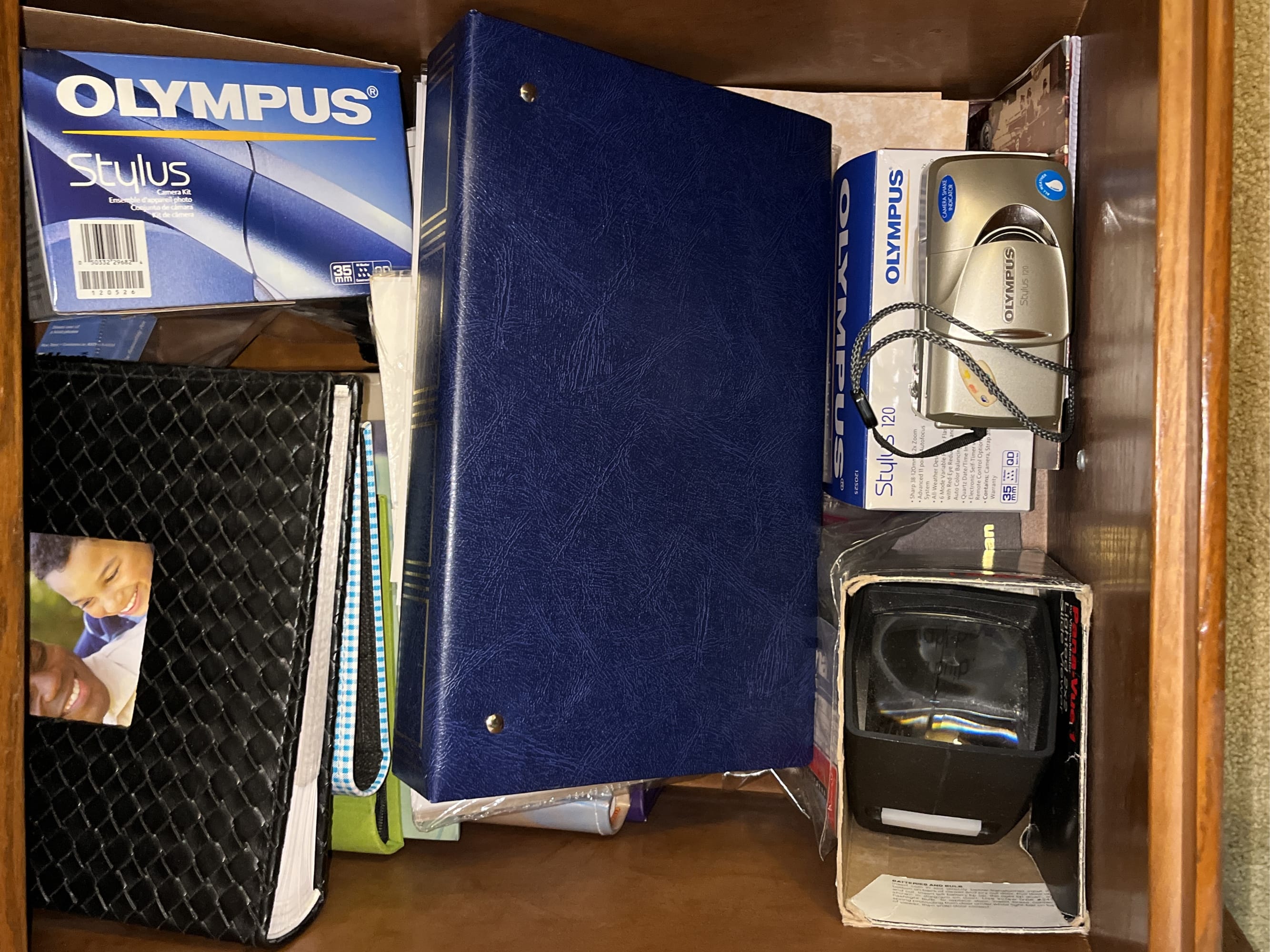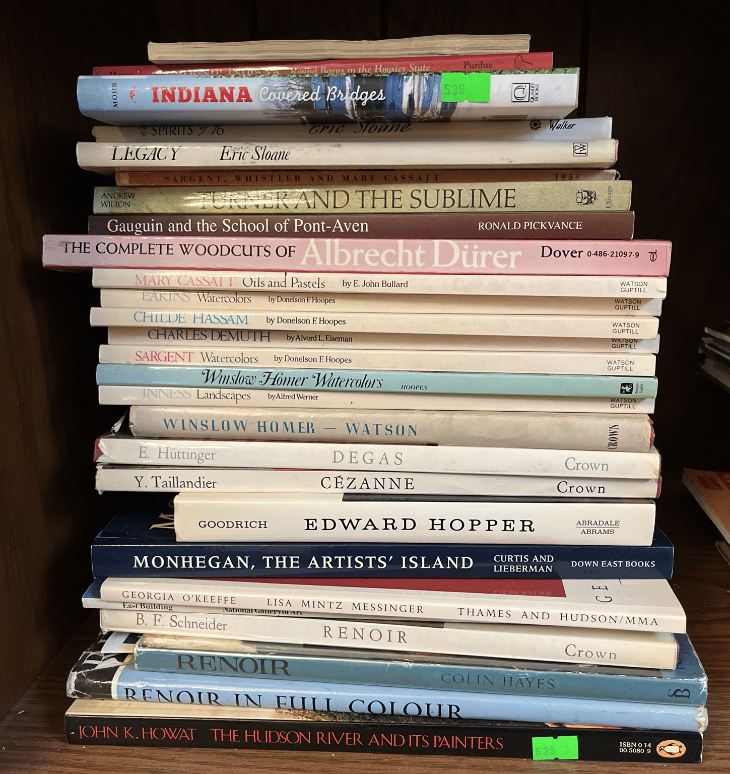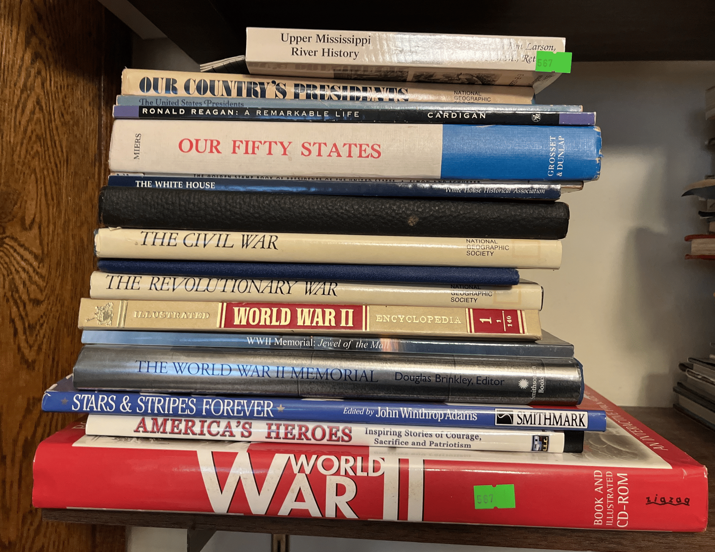 17 Goshen Electric advertising thermometer and clip board, First National Bank calendar 1973, Kok’s Woodgoods advertising gavel, Ohio Plate glass paperweight, New Haven Motor and Ingersoll pocket watches need repaired
