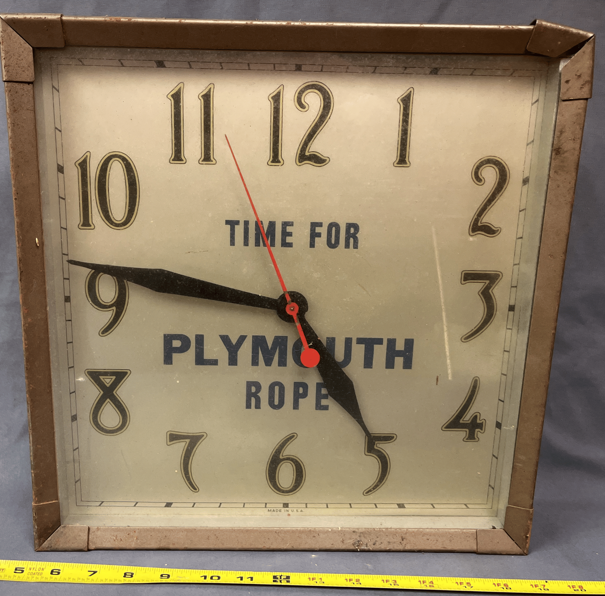 16 Plymouth Rope metal electric clock 14 1/2x14 1/2