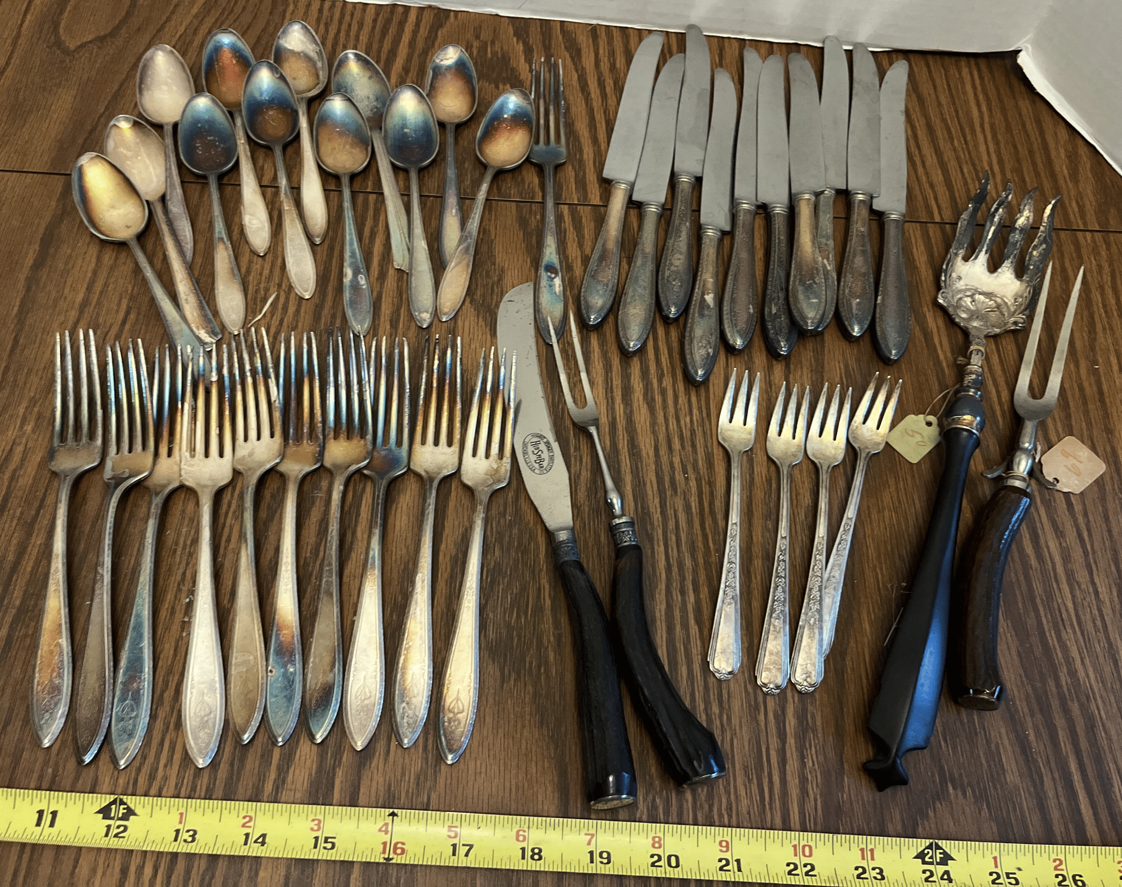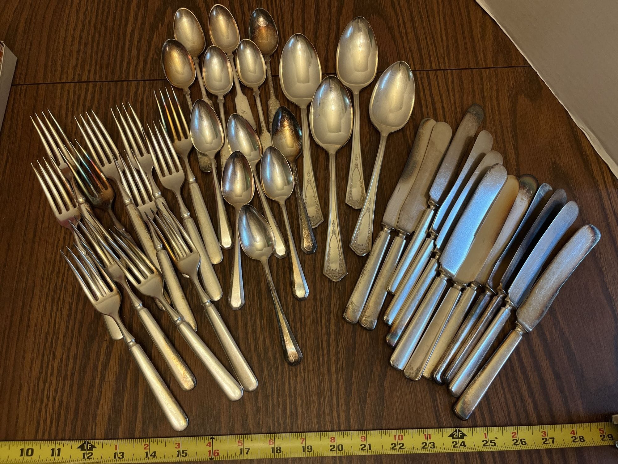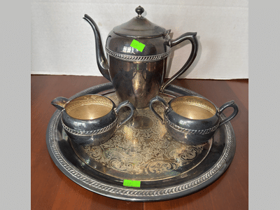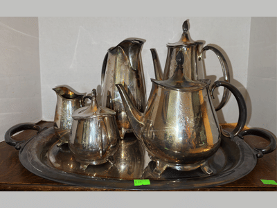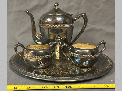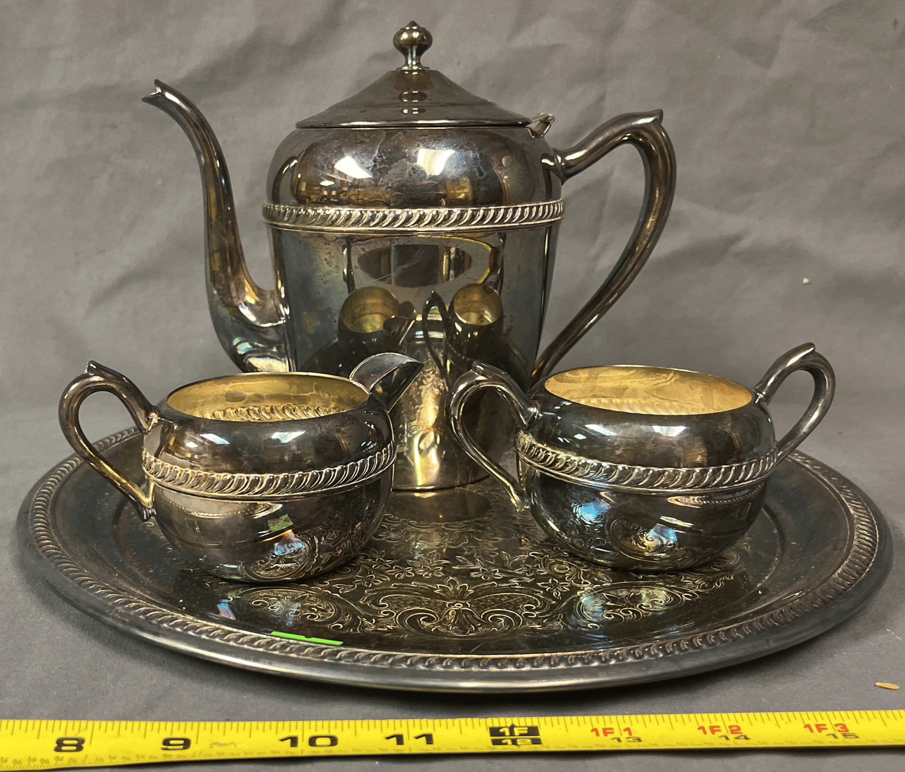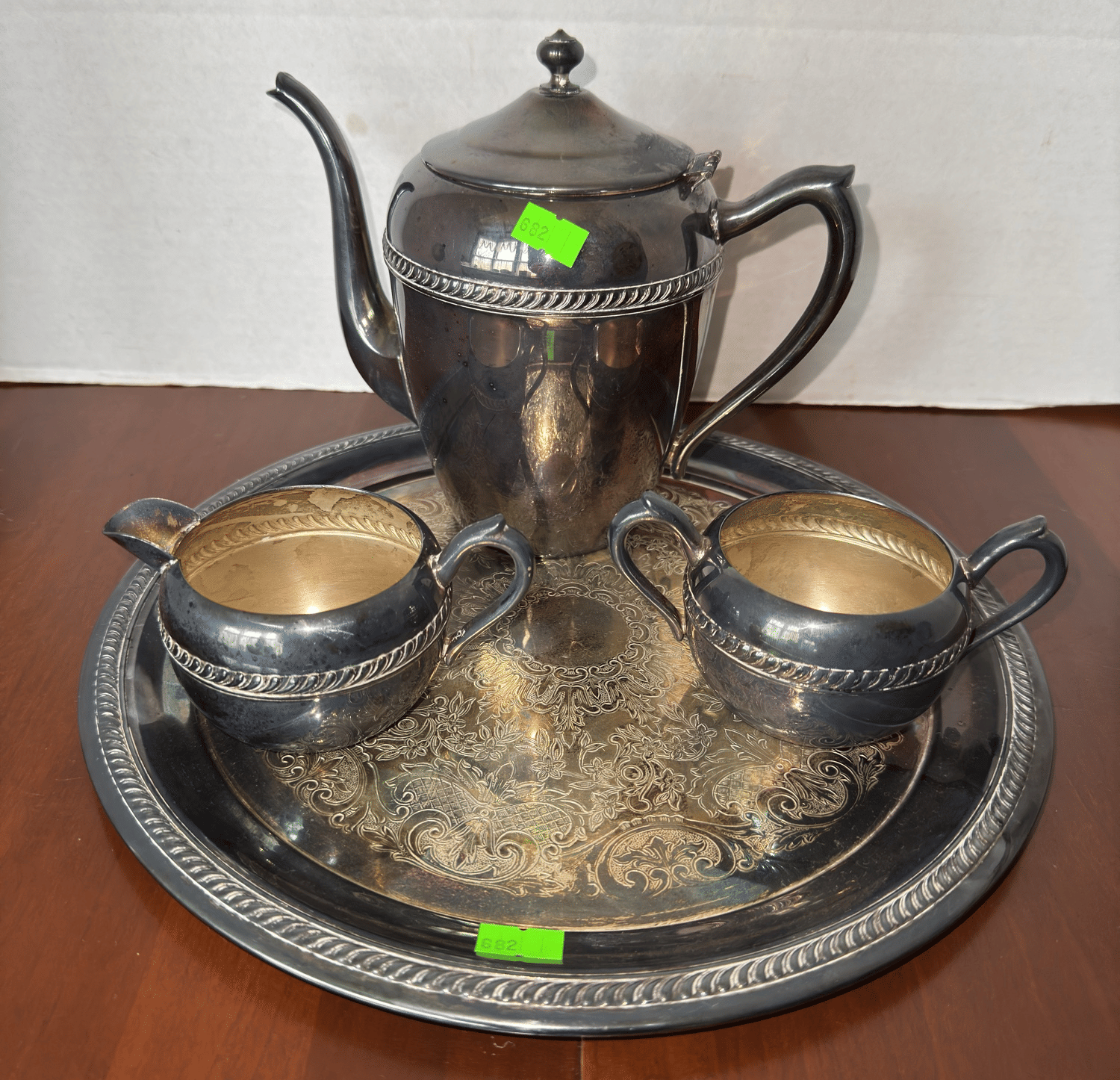 18 B Rogers Silver plate tea service inc. Teapot, Cream, Sugar and Tray