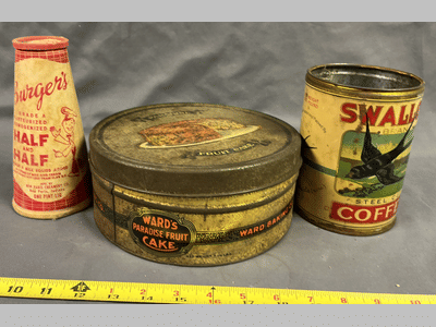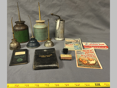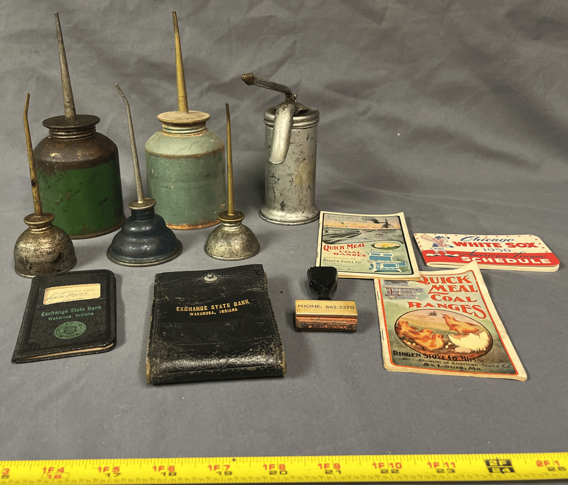 23 Oil cans, stove brochures, 1956 Chicago White Sox schedule