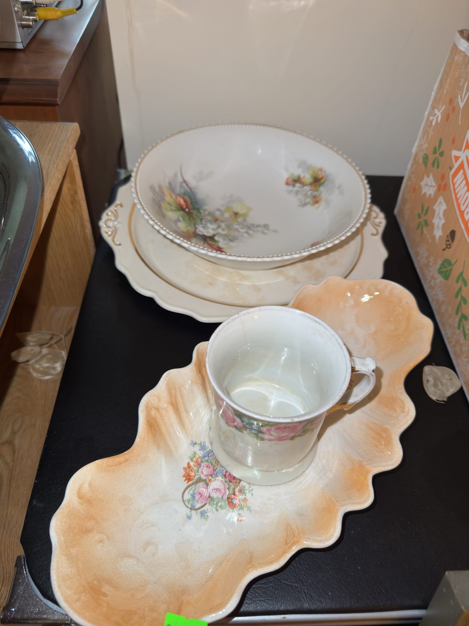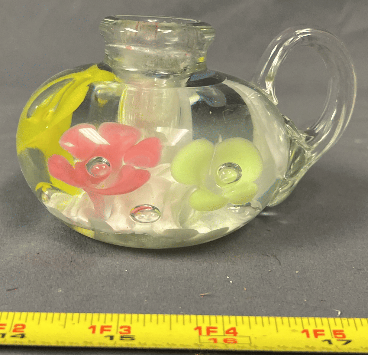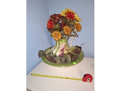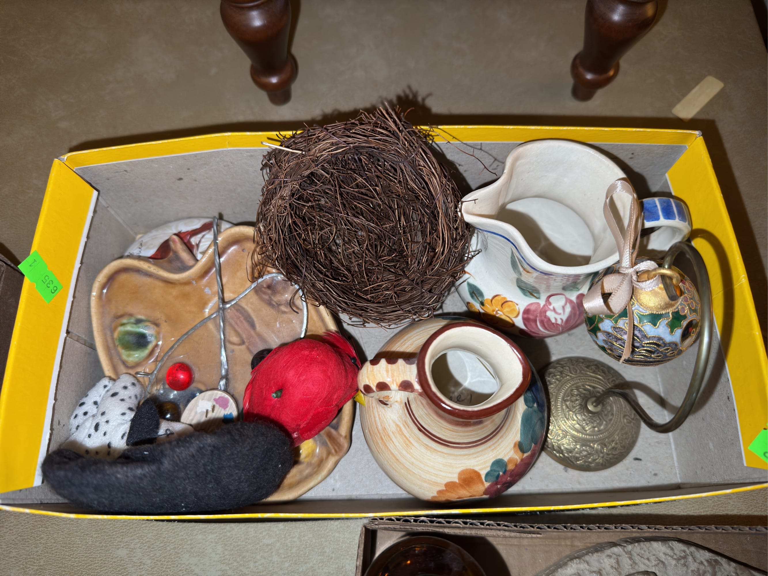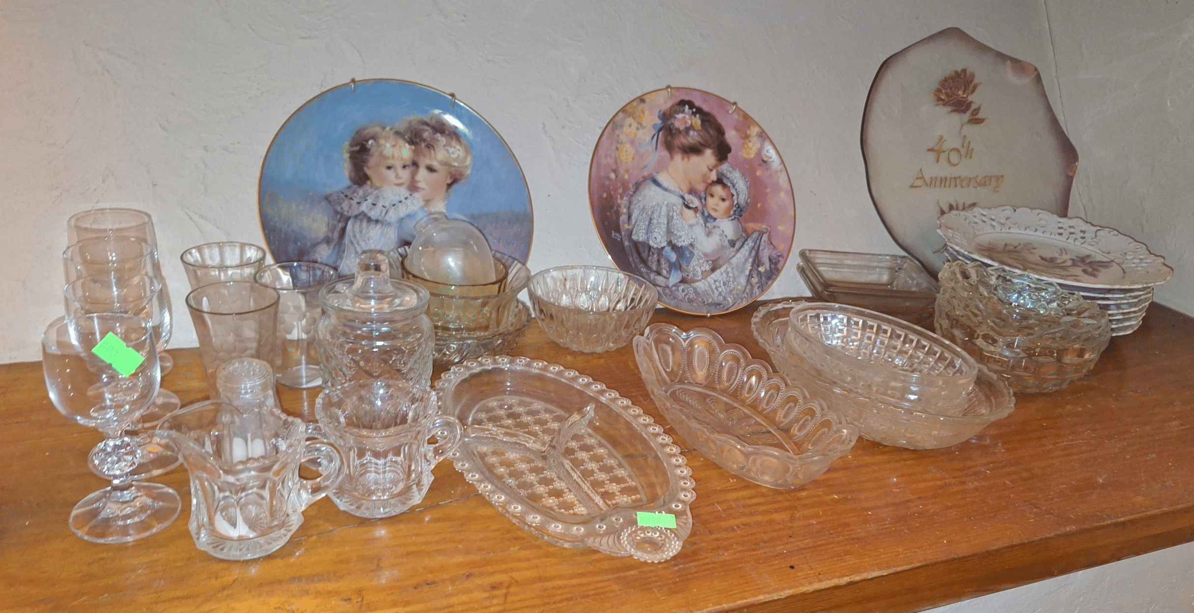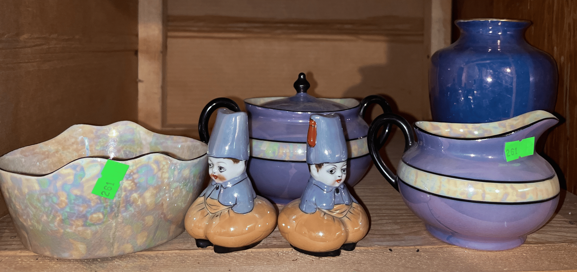 901 Vases, mini oil lamp, ceramic heart and fruit, painted window