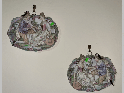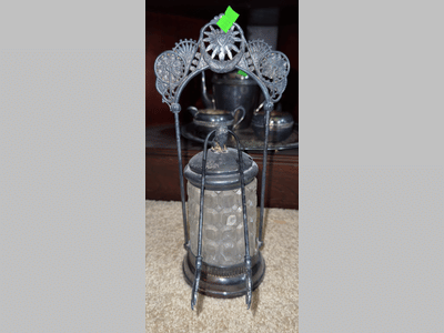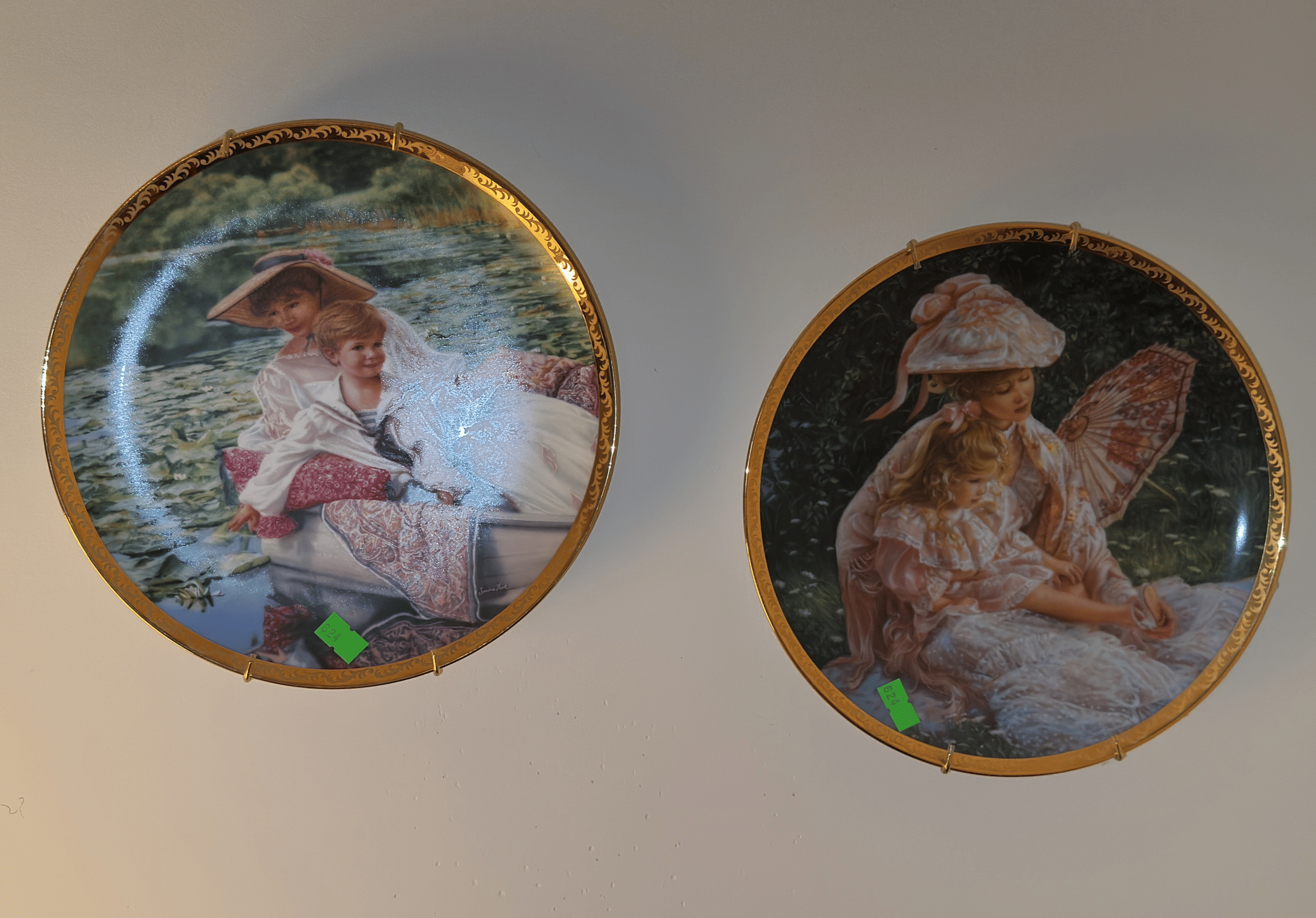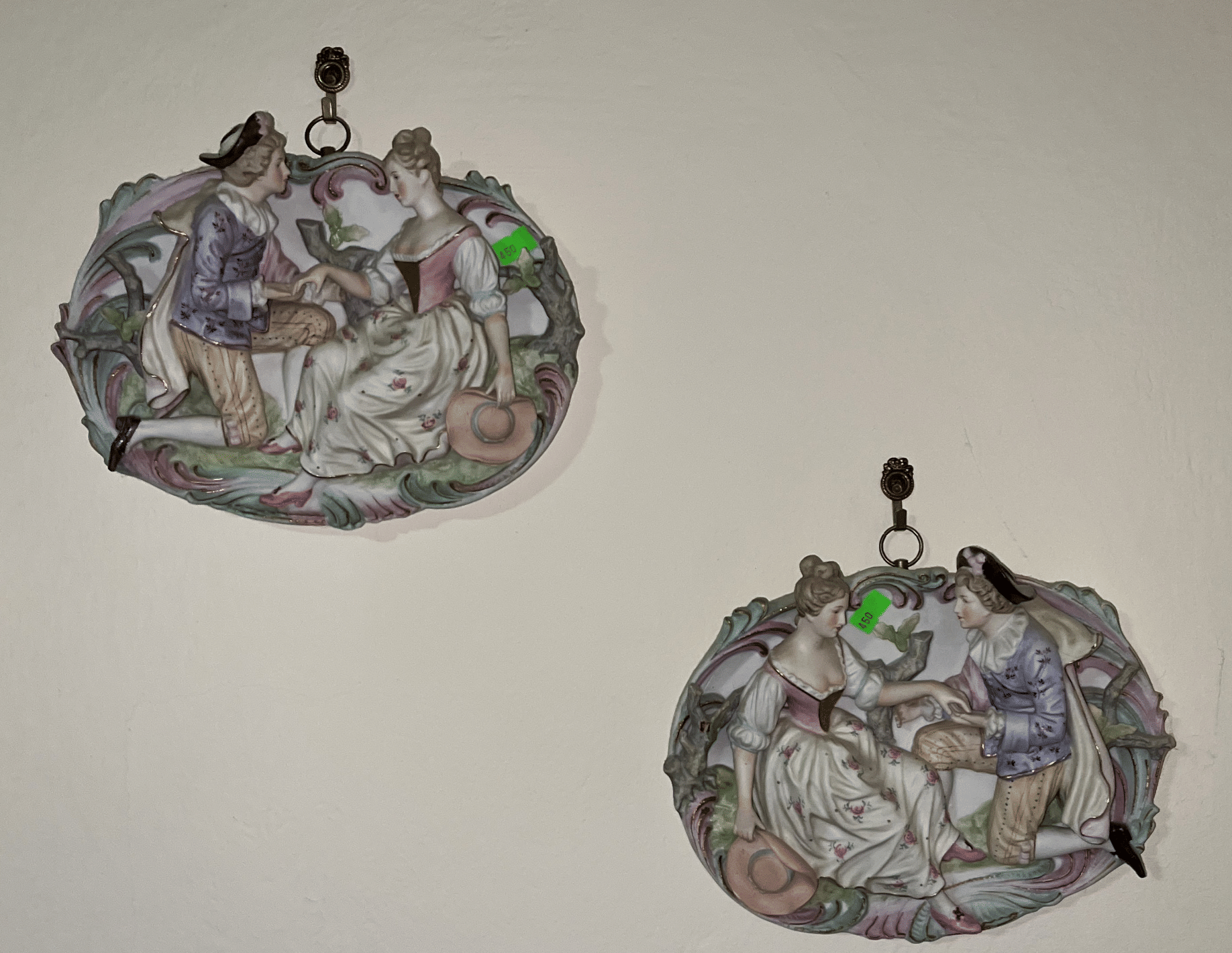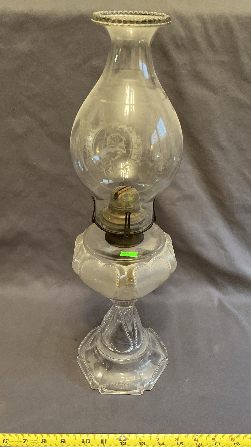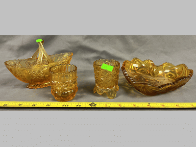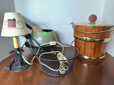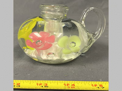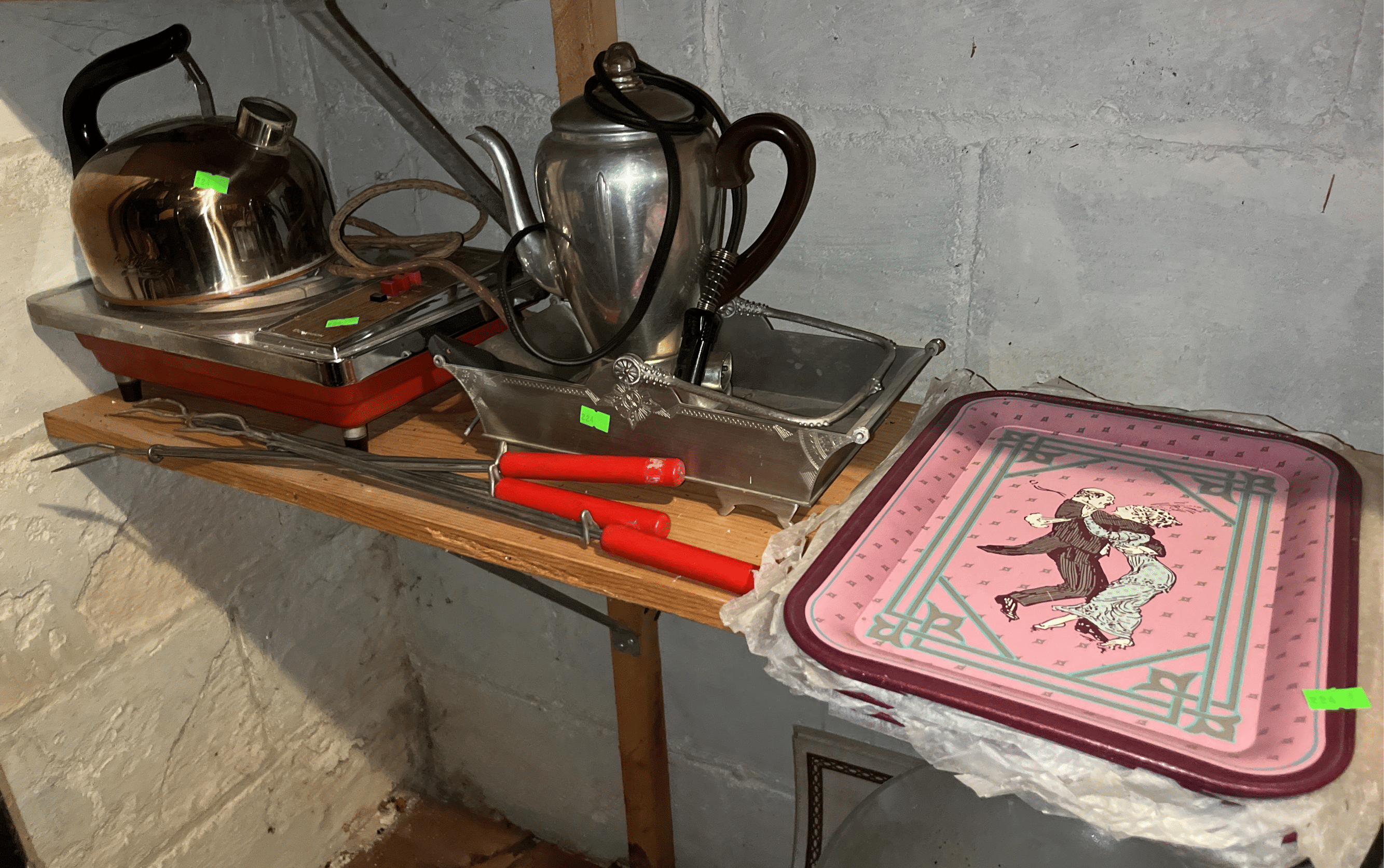 901 Vases, mini oil lamp, ceramic heart and fruit, painted window