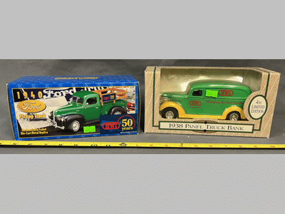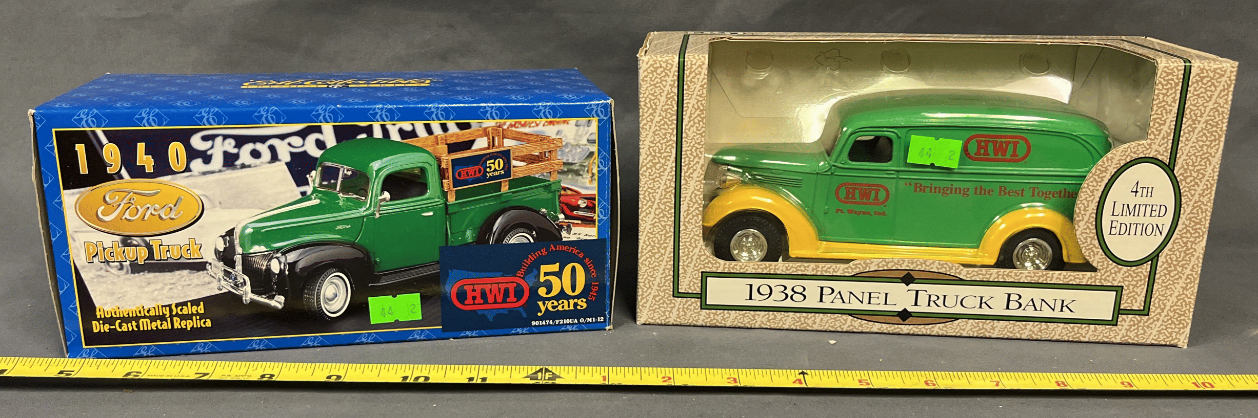 44 2 HWI truck banks inc. 1940 Ford Pick Up & 1938 Panel Truck 1/25 scale