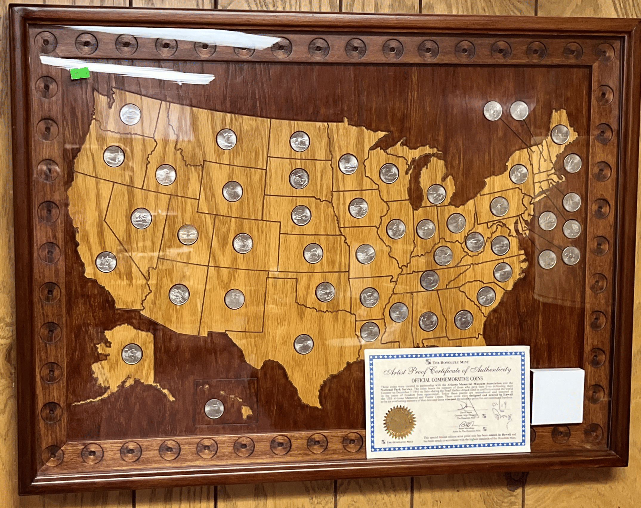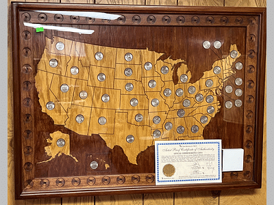 45 Handcrafted State quarters display with certificate of authenticity (50 coins) 30x23"
