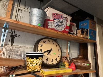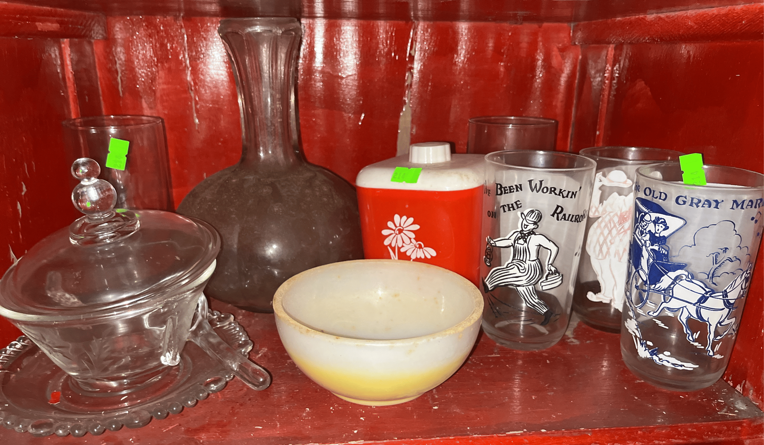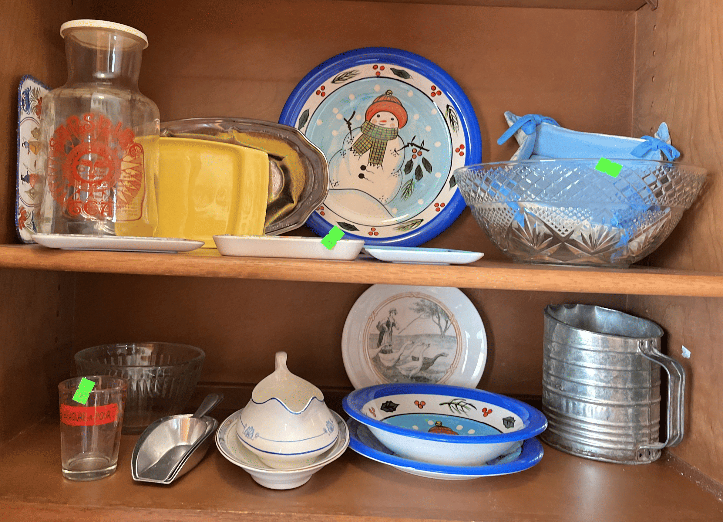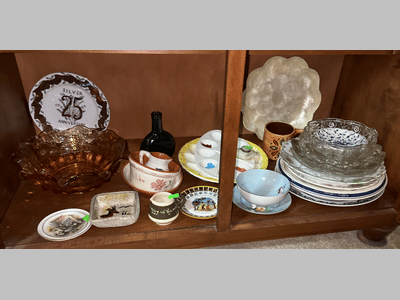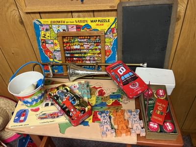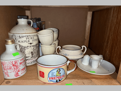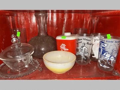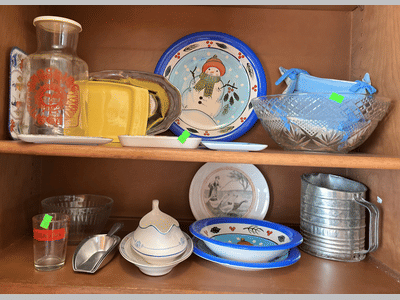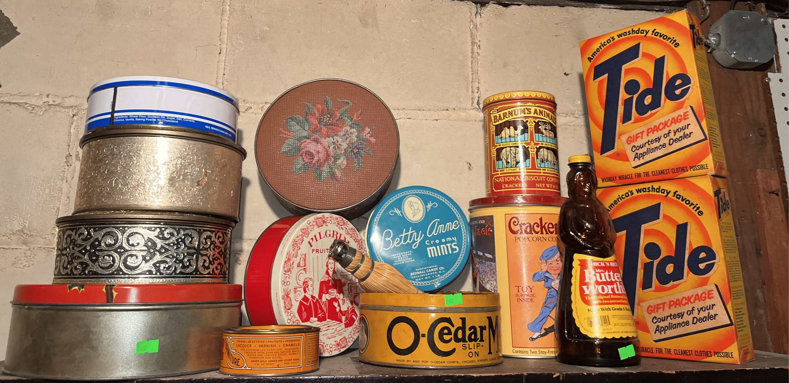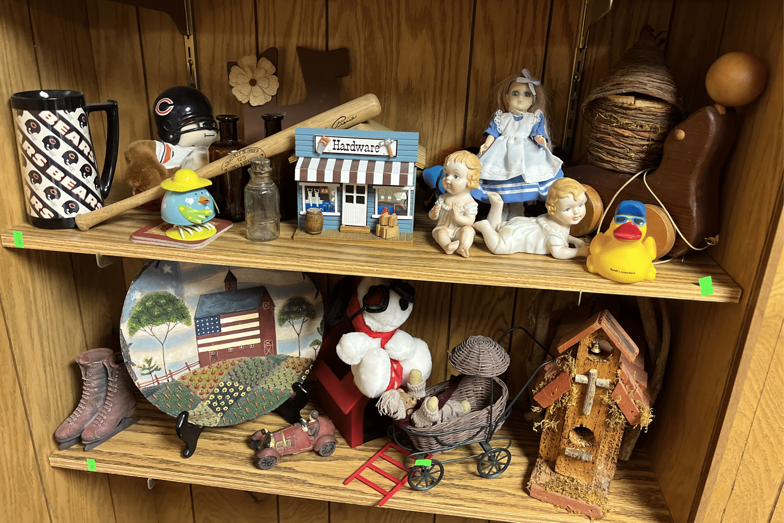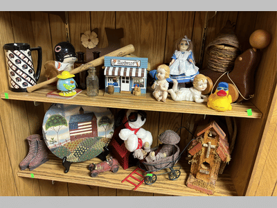 Quality Antiques & Primitives • Seller’s Cabinet • Local Advertising Displays, Clocks, Thermometers • Crocks • Glassware & Pottery • Cookie Jars • Toys • Art • Quilts • Sleds, Bikes & More!
