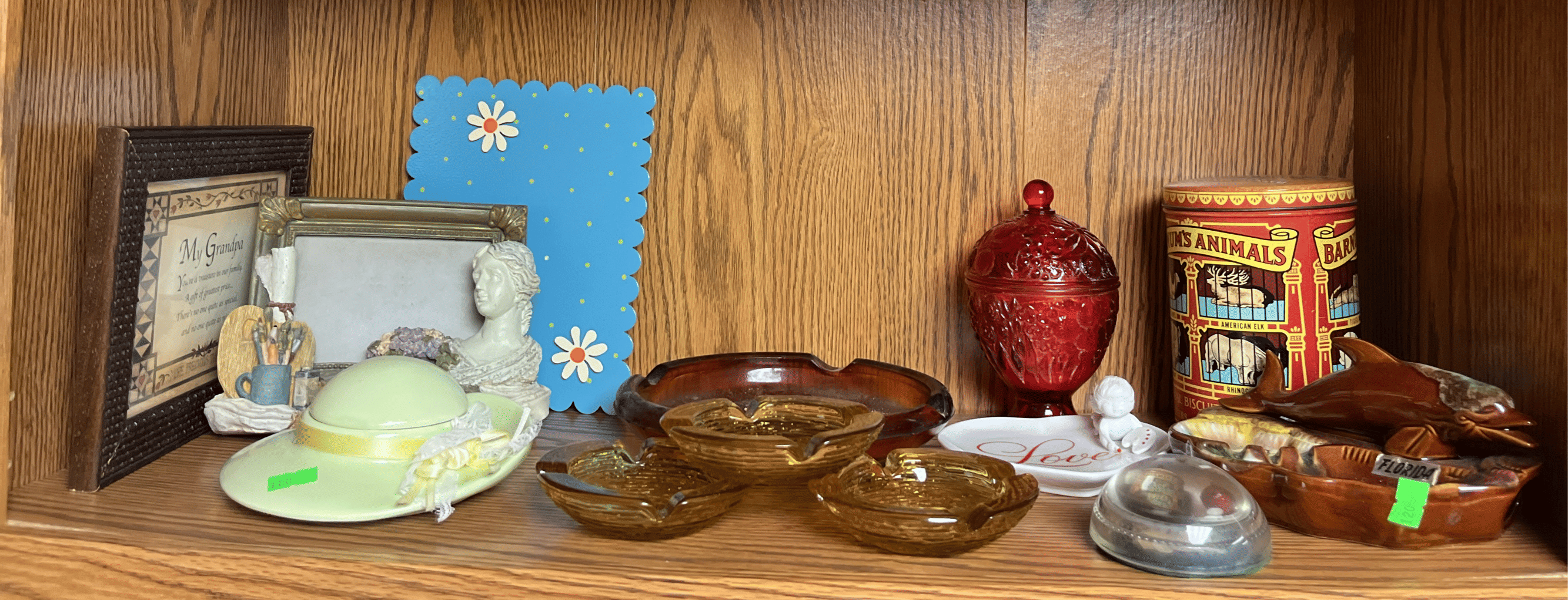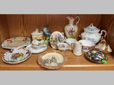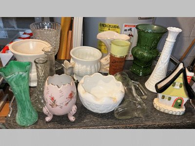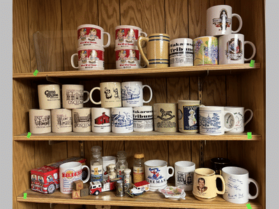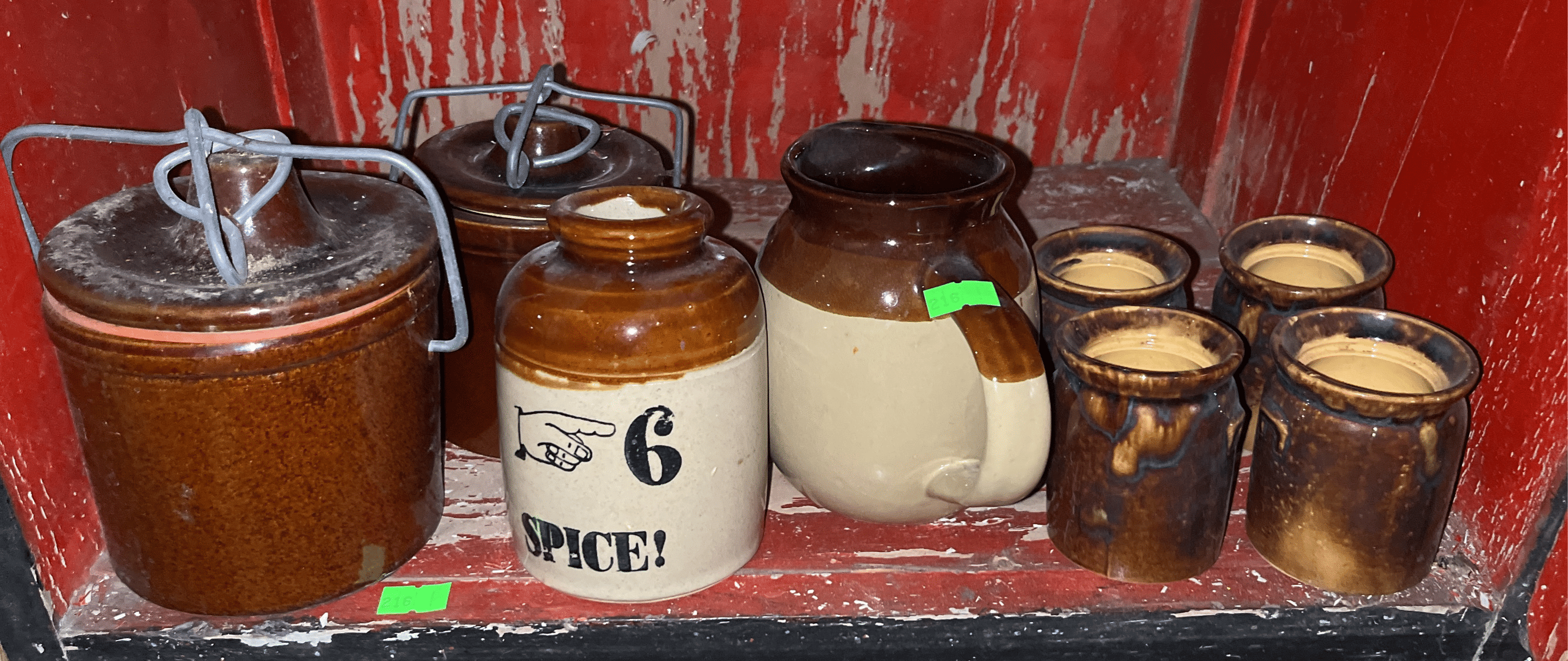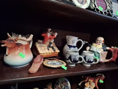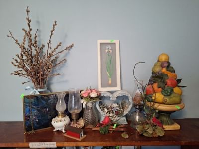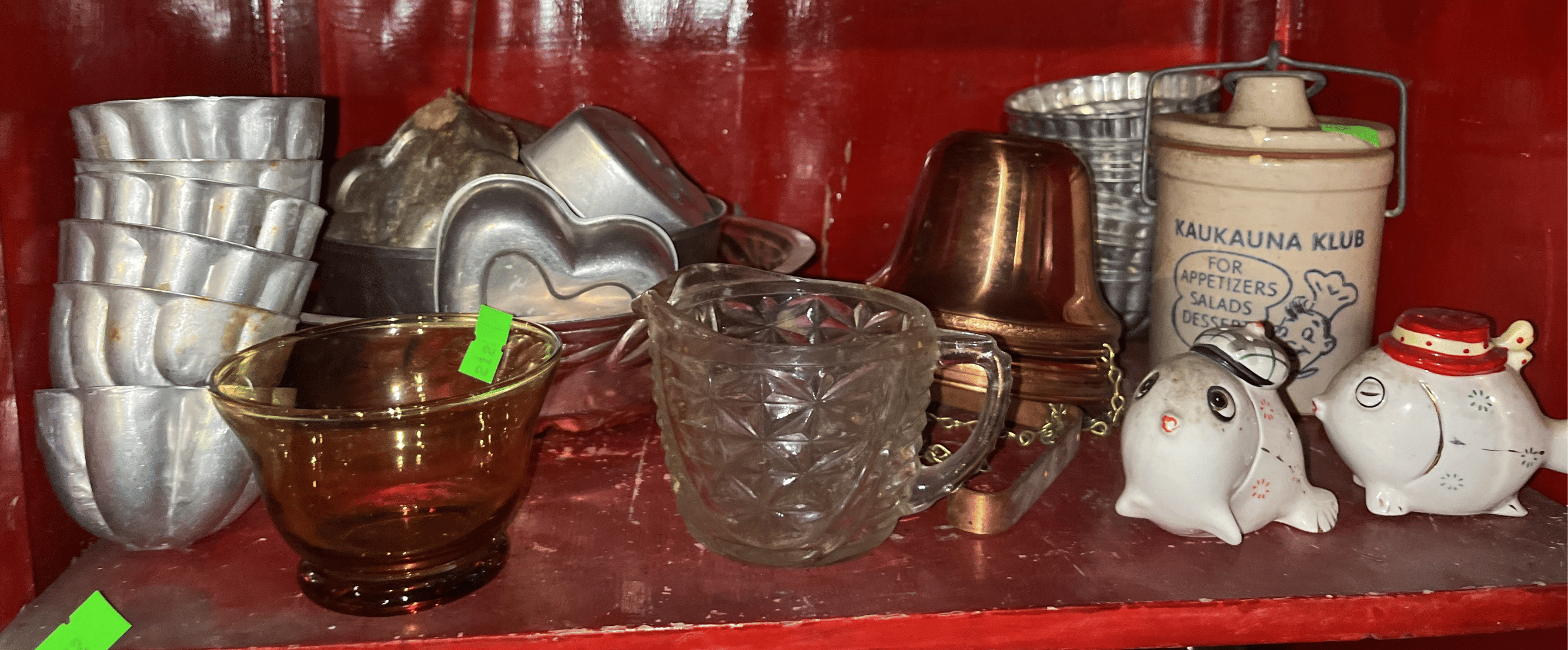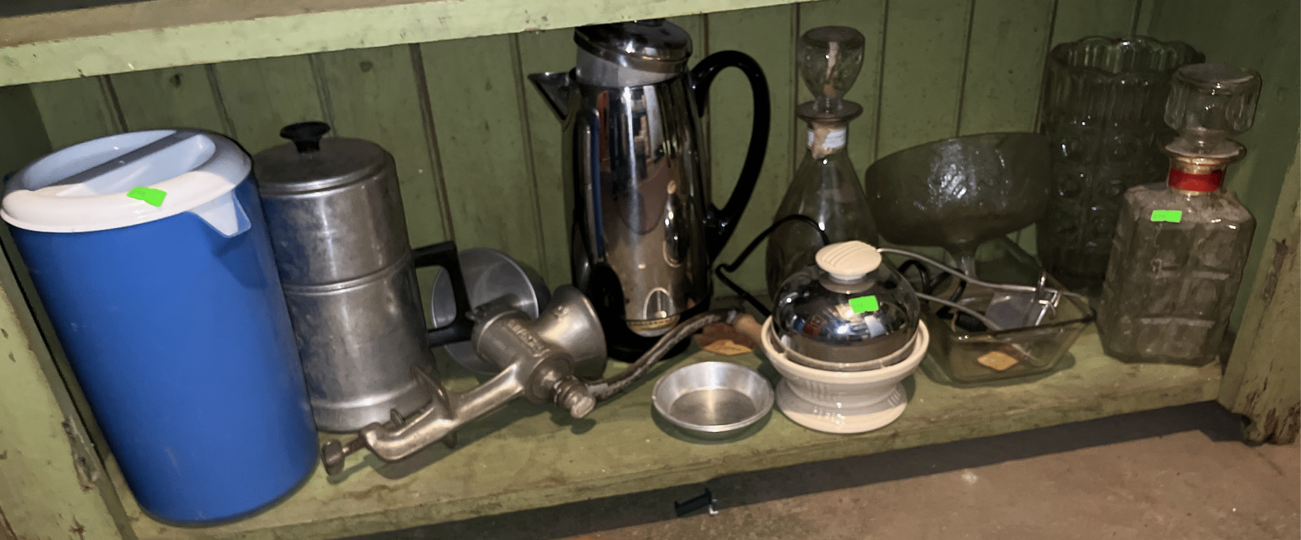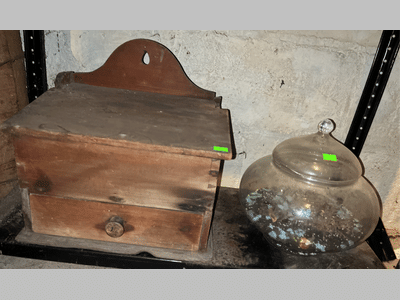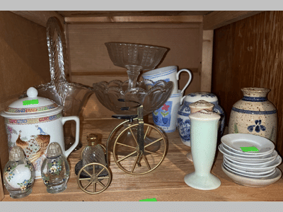 Quality Antiques & Primitives • Seller’s Cabinet • Local Advertising Displays, Clocks, Thermometers • Crocks • Glassware & Pottery • Cookie Jars • Toys • Art • Quilts • Sleds, Bikes & More!