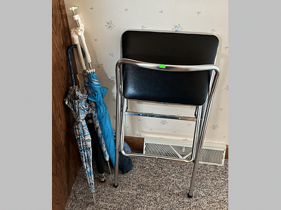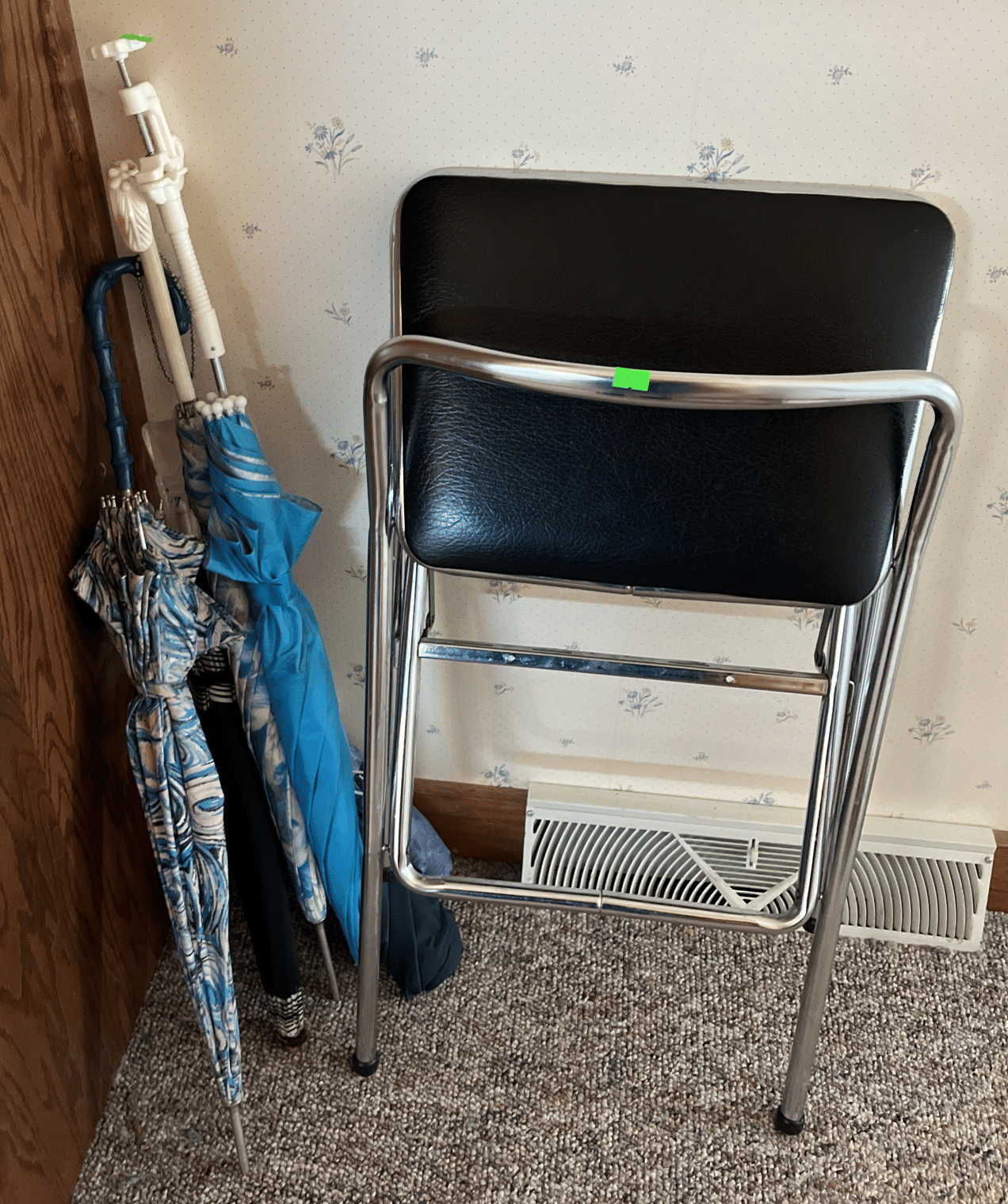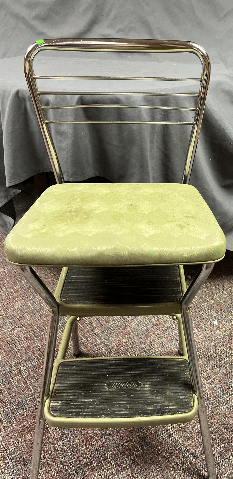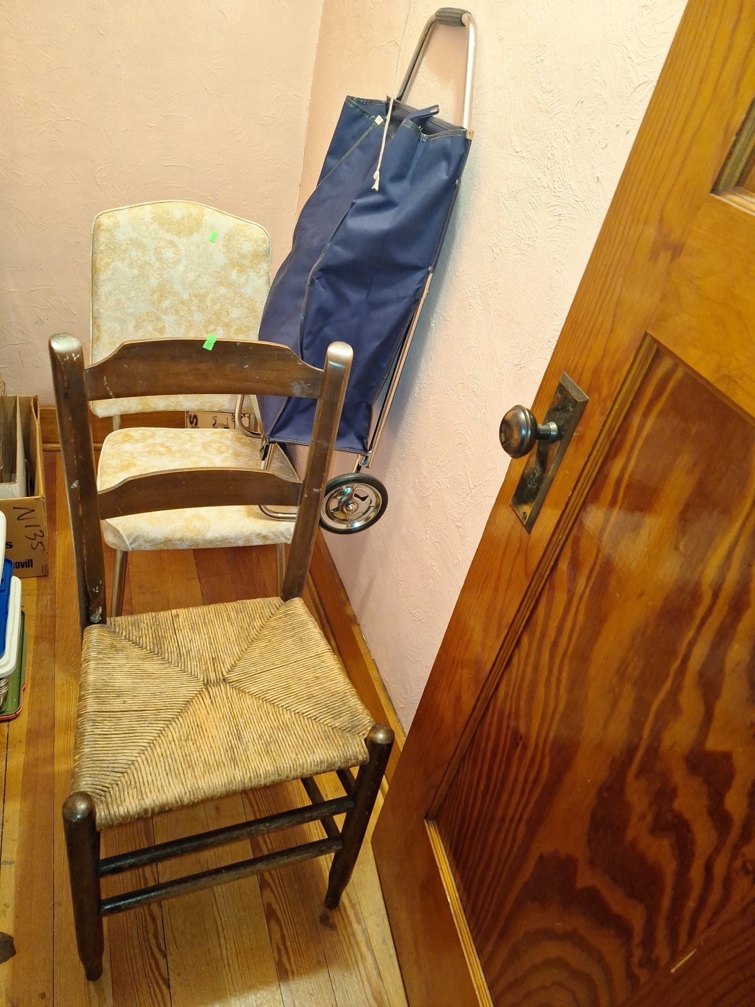 932 Rattan bottom wood chair, metal kitchen chair, cart
