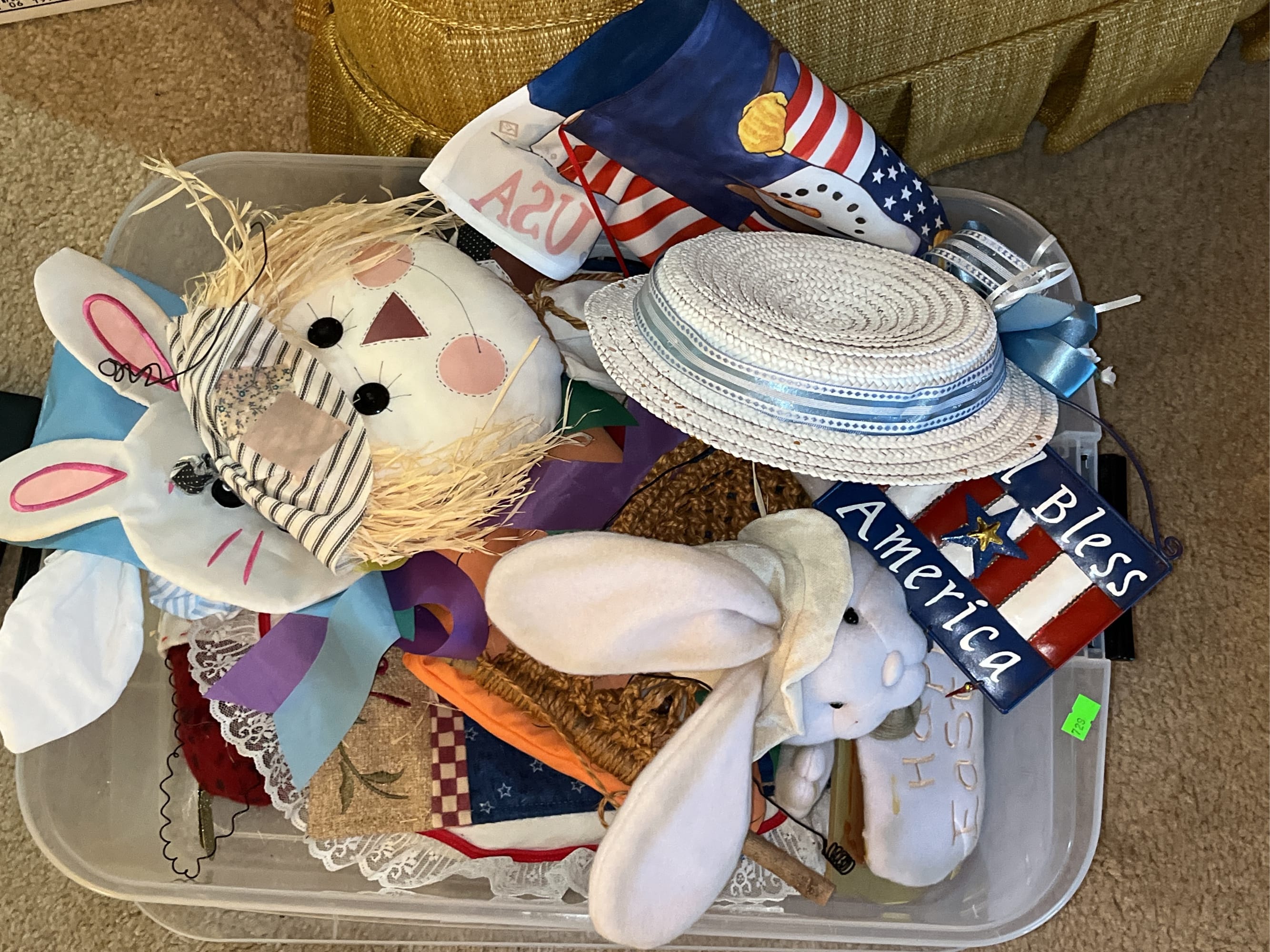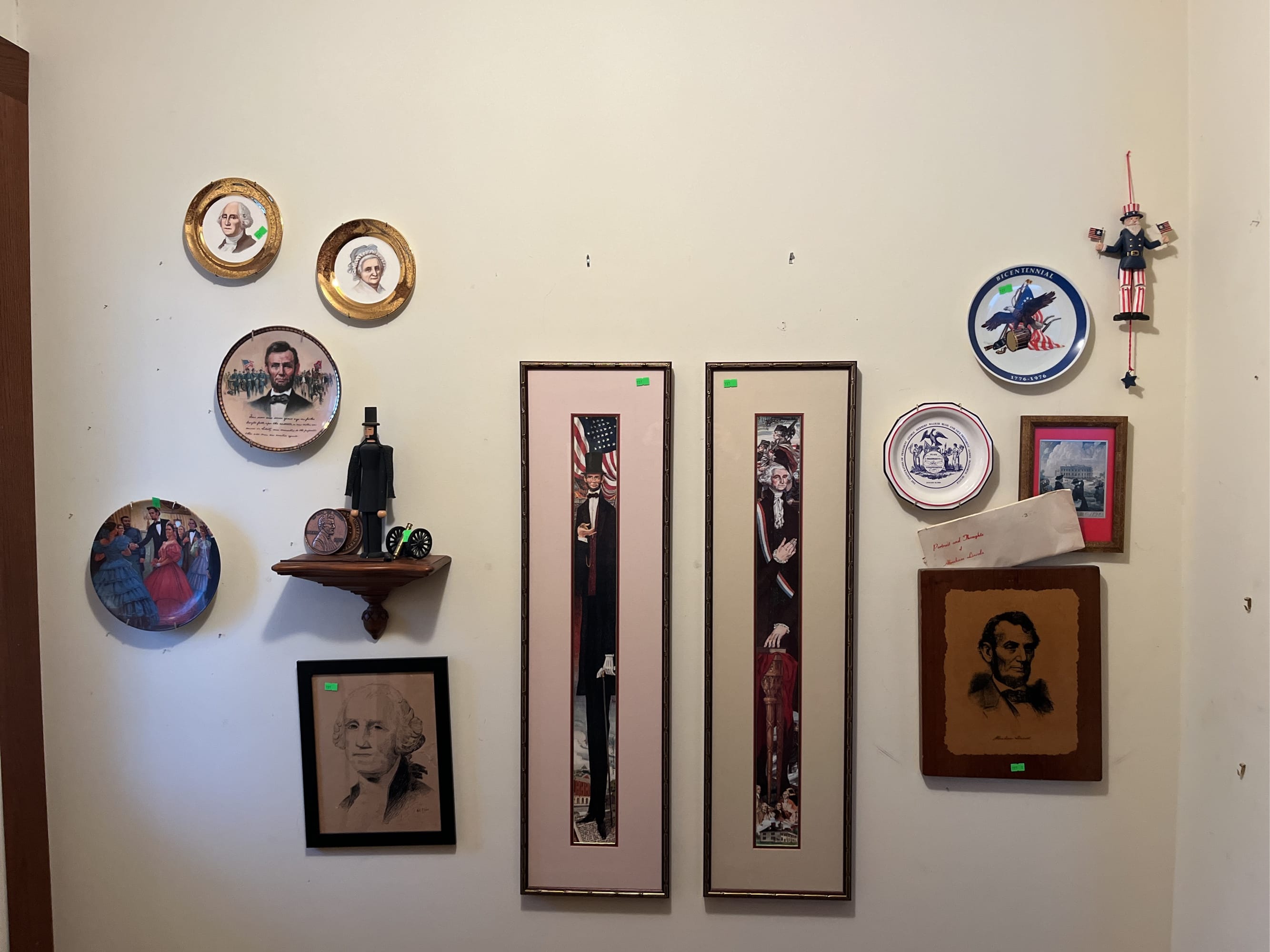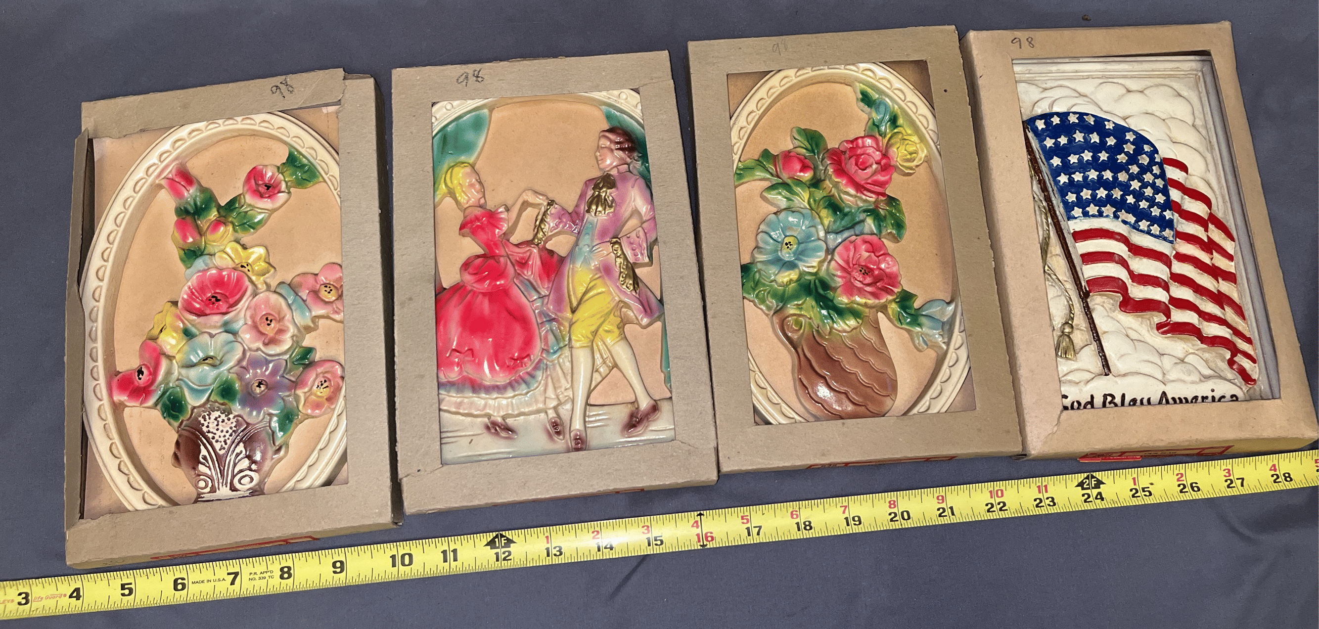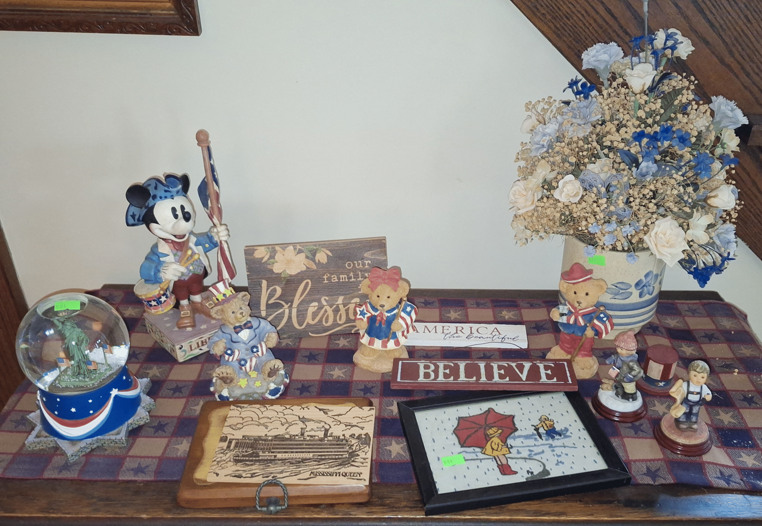 903 Different Drummer pottery wall pockets, Gail Pittman hand painted bowl, patriotic basket & decor