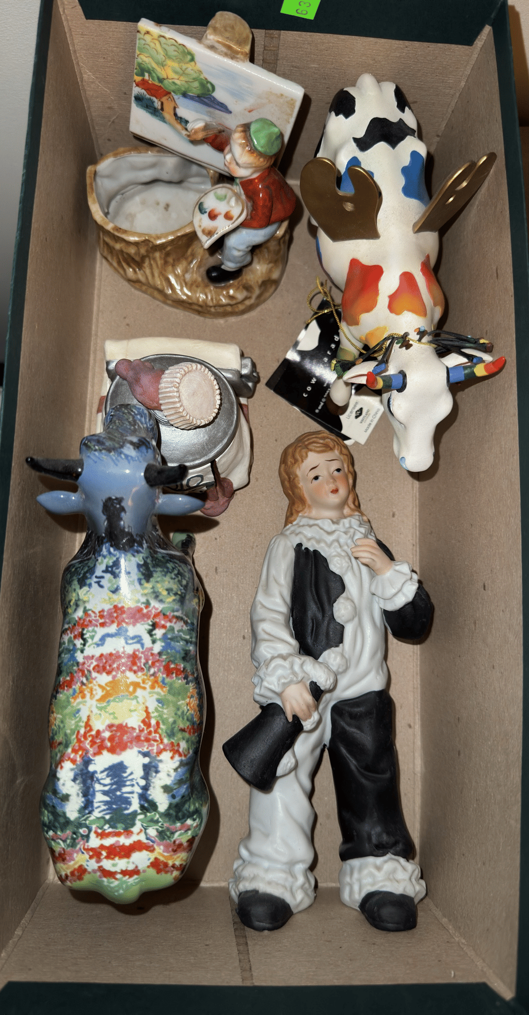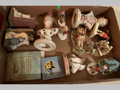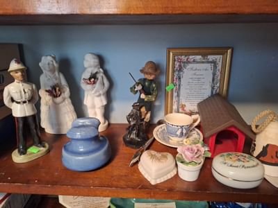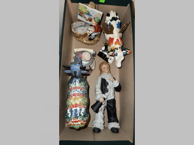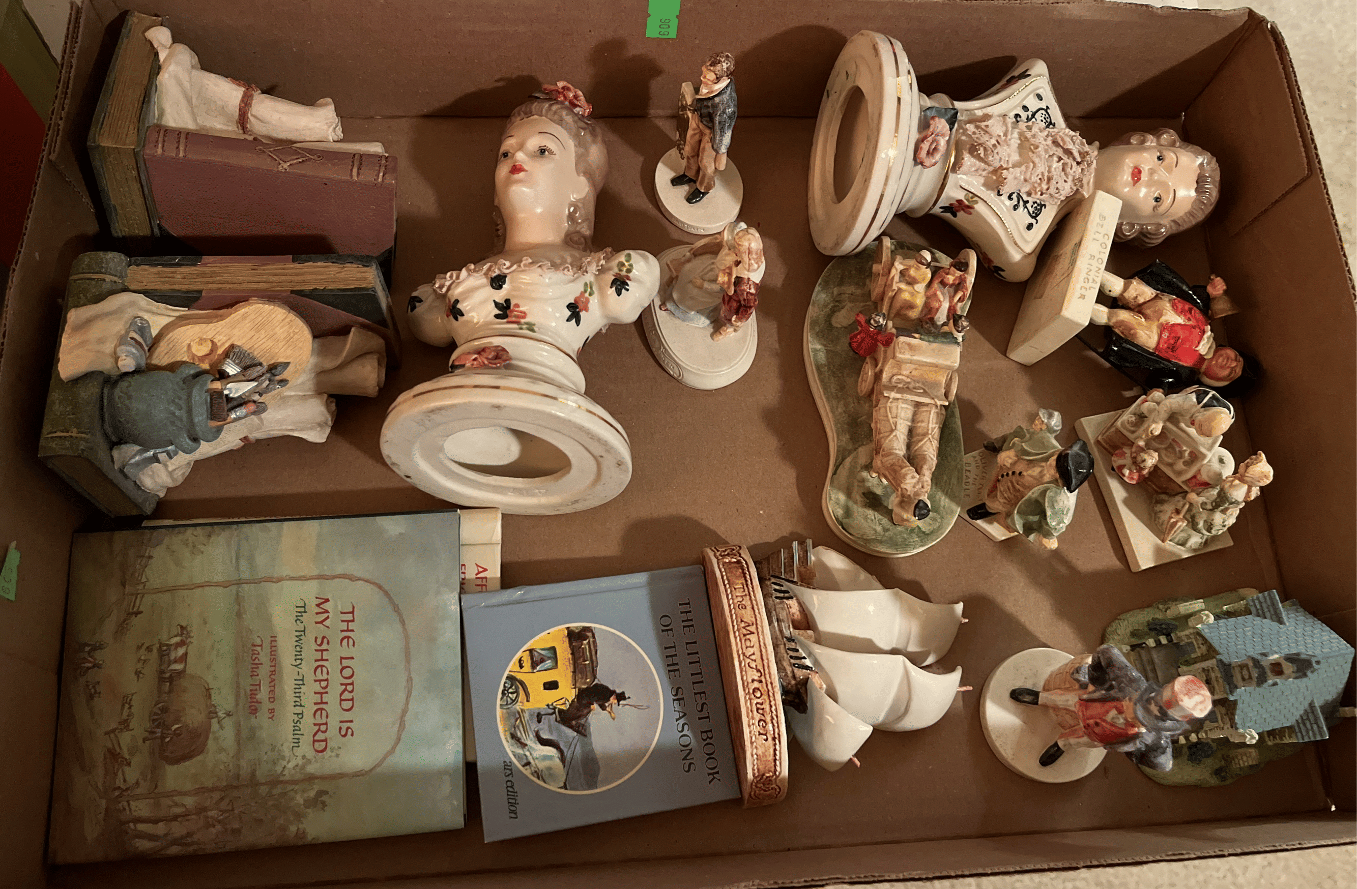902 Figurines, ceramic insulator, trinket boxes, miscellaneous