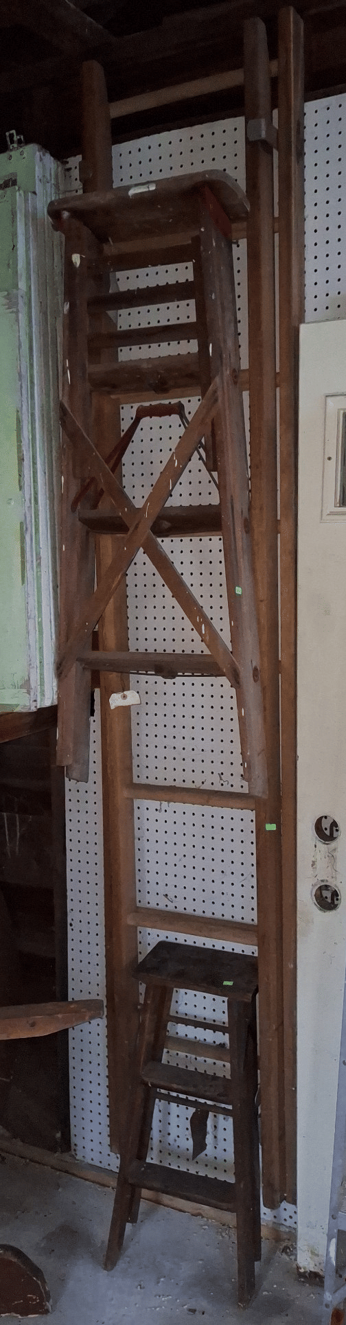1017 Wood 2’ step ladder, 4’ step ladder, wood extension ladder