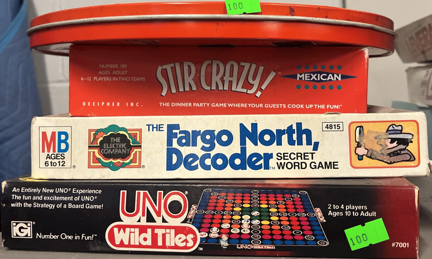 100 Game Assortment, Uno Tiles, Stir Crazy, Fargo North Decoder