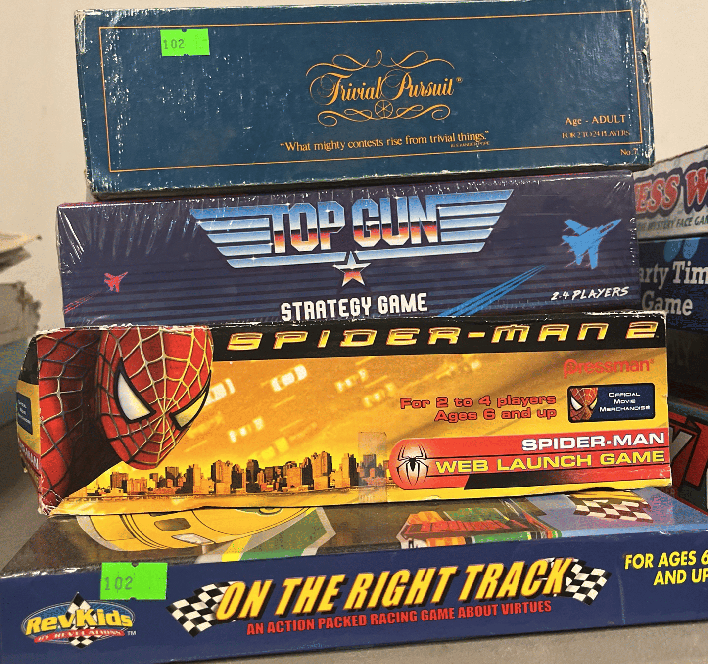 102 Game Assortment inc. Trivial Pursuit, Top Gun (Sealed), Spider Man, On The Right Track