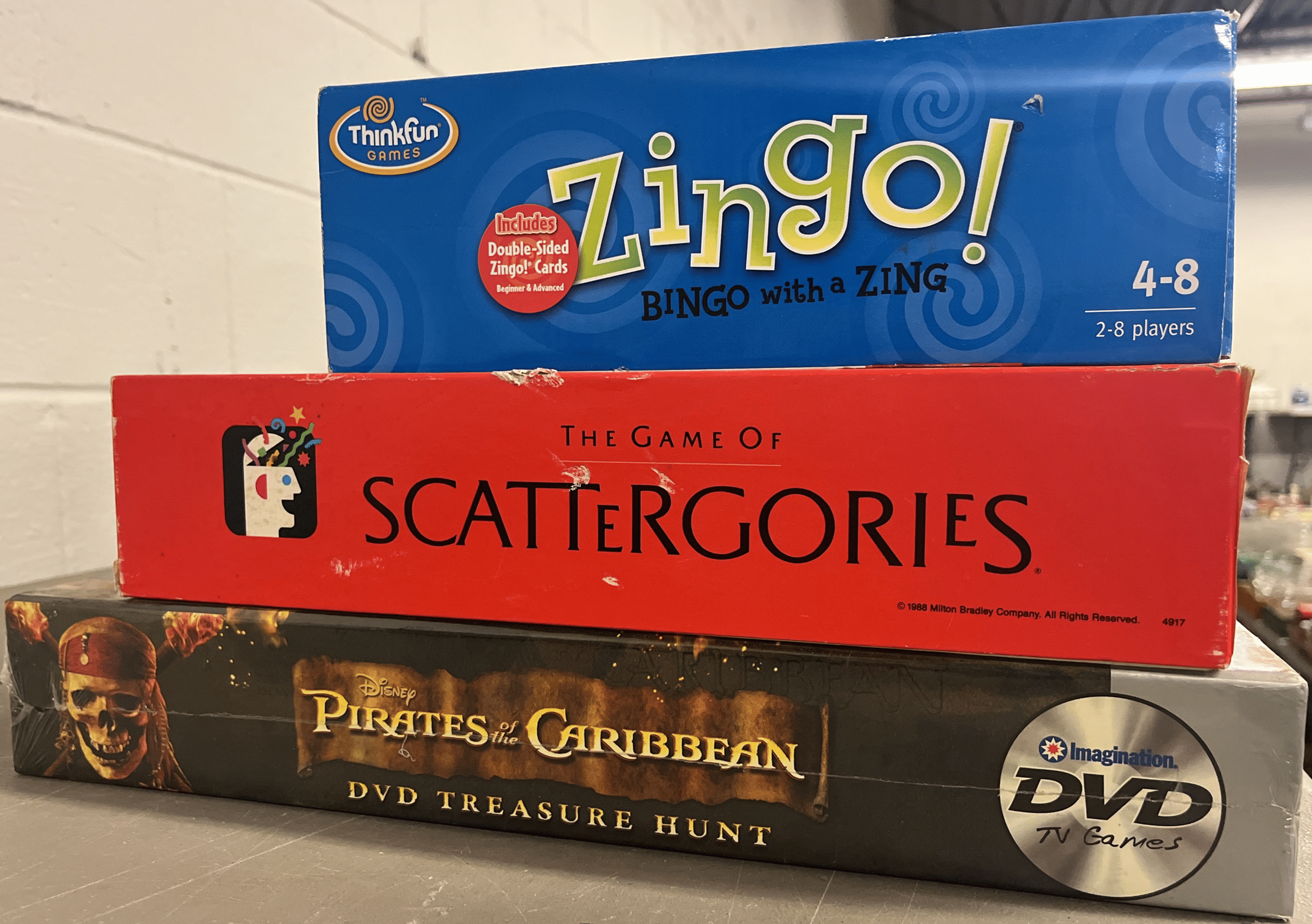 109 Game assortment inc. Bingo, Scattergories, Pirates of the Caribbean DVD Treasure Hunt (Sealed)