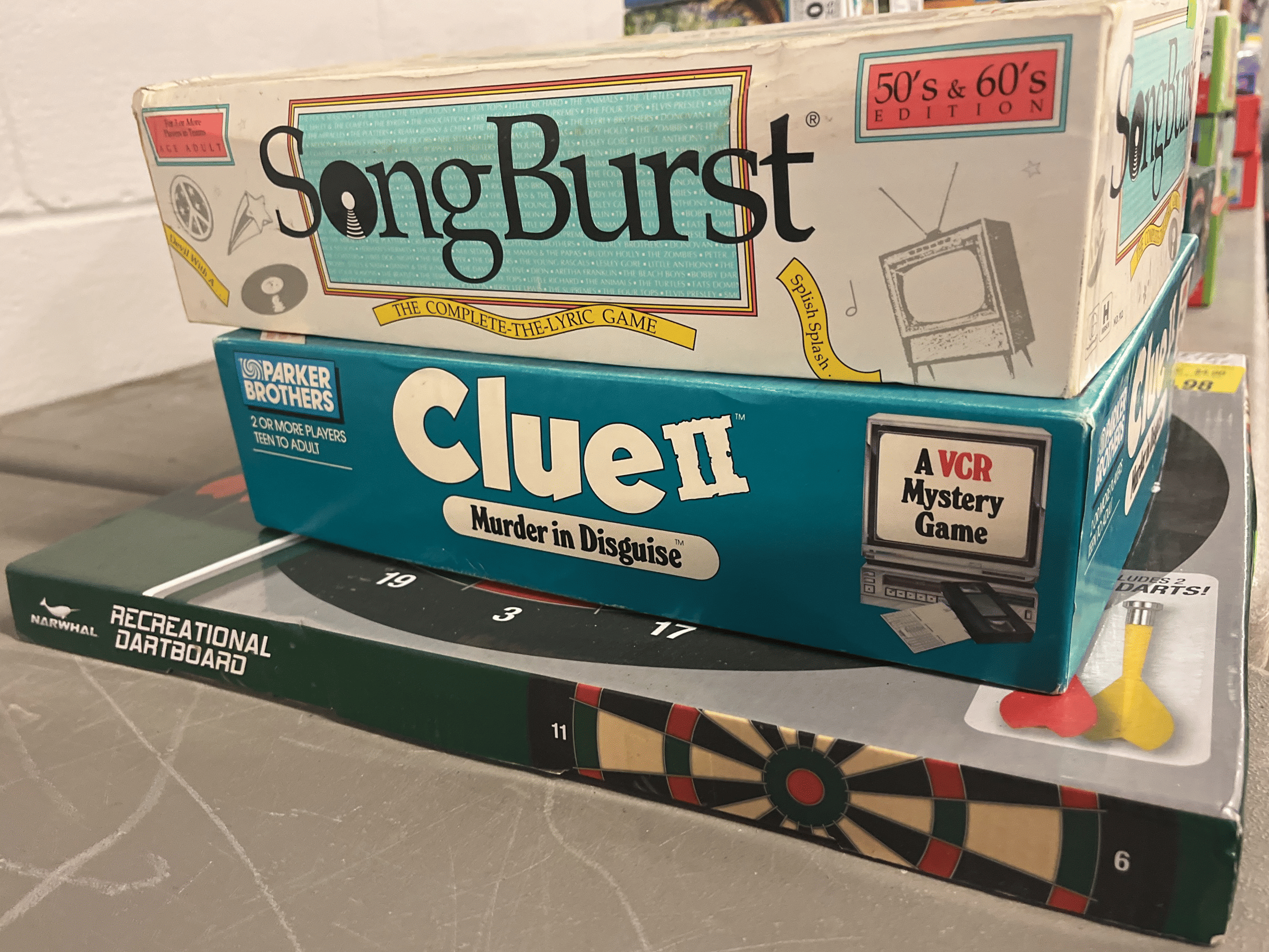 110 Game Assortment inc. Dart Board, Clue ll, Song Burst