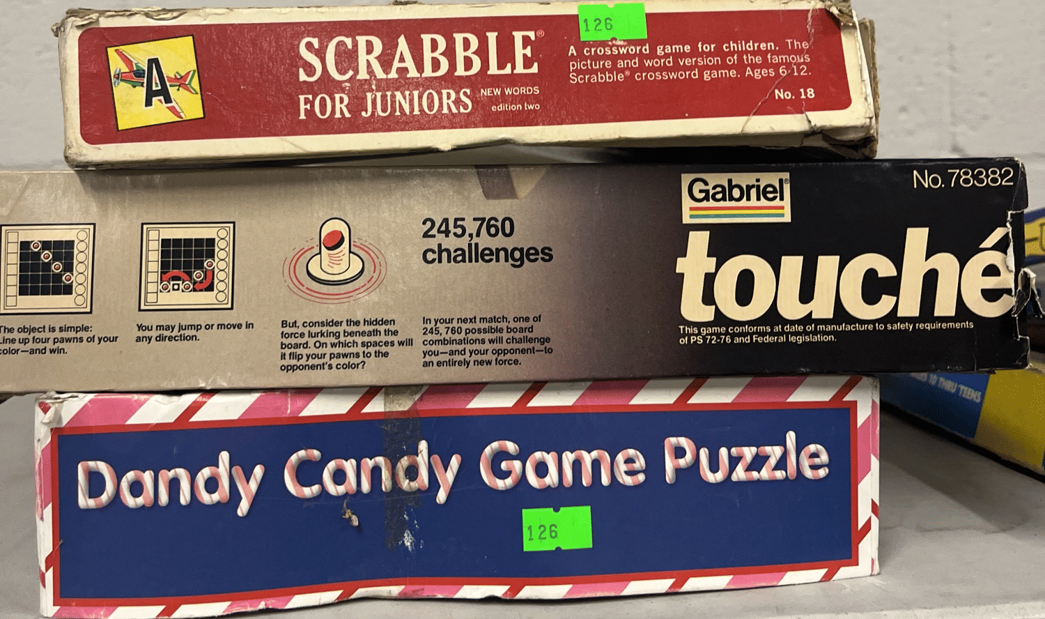 126 Game Assortment Inc. Scrabble, Dandy Candy, Touchè
