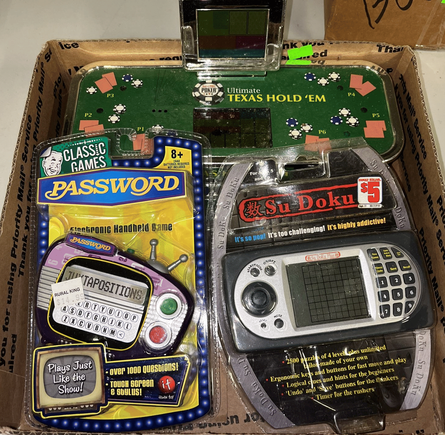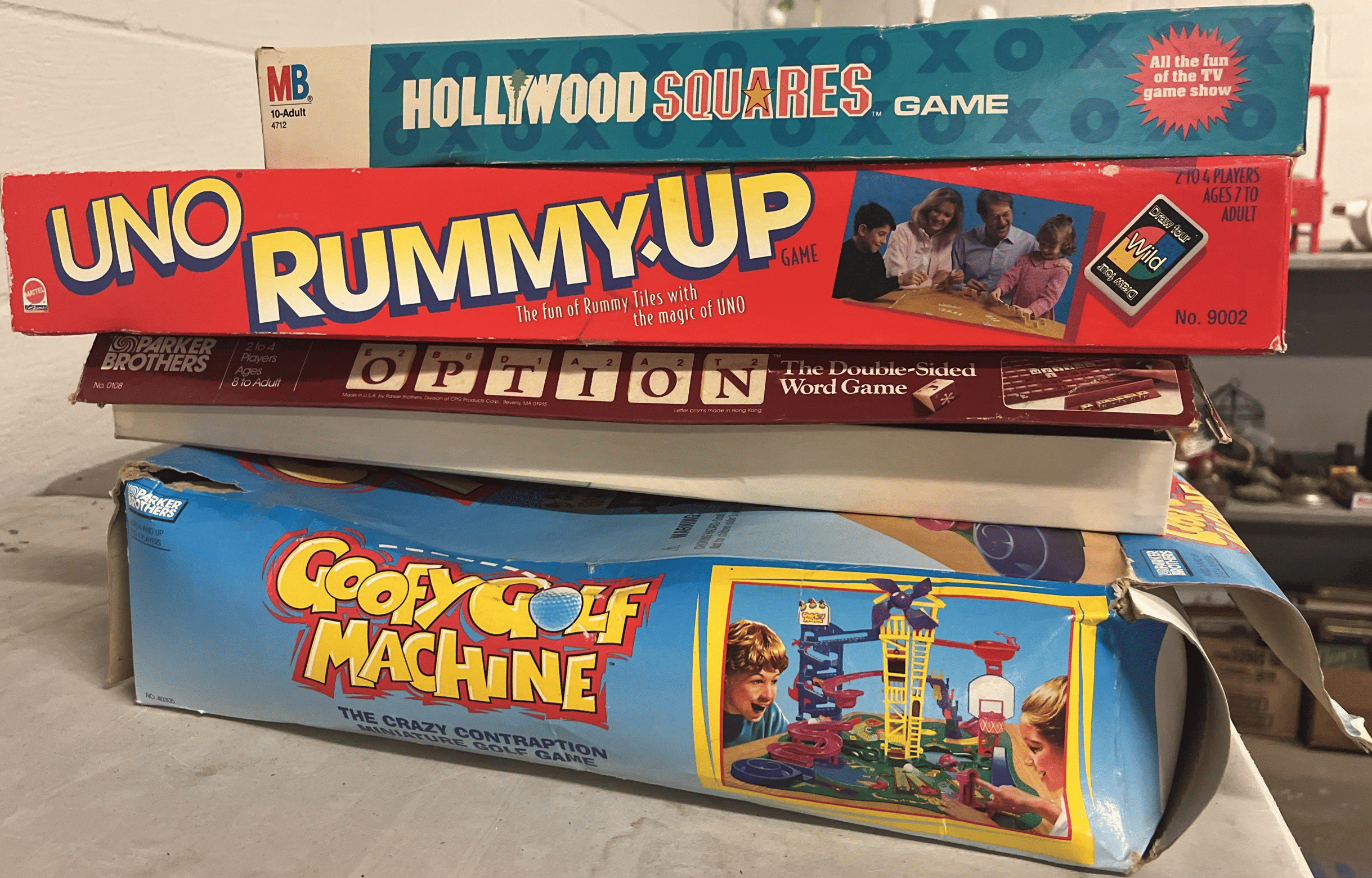 128 Game Assortment Inc. Hollywood Squares, Uno Rummy-Up, Option Word Game, Goofy Golf Machine Game
