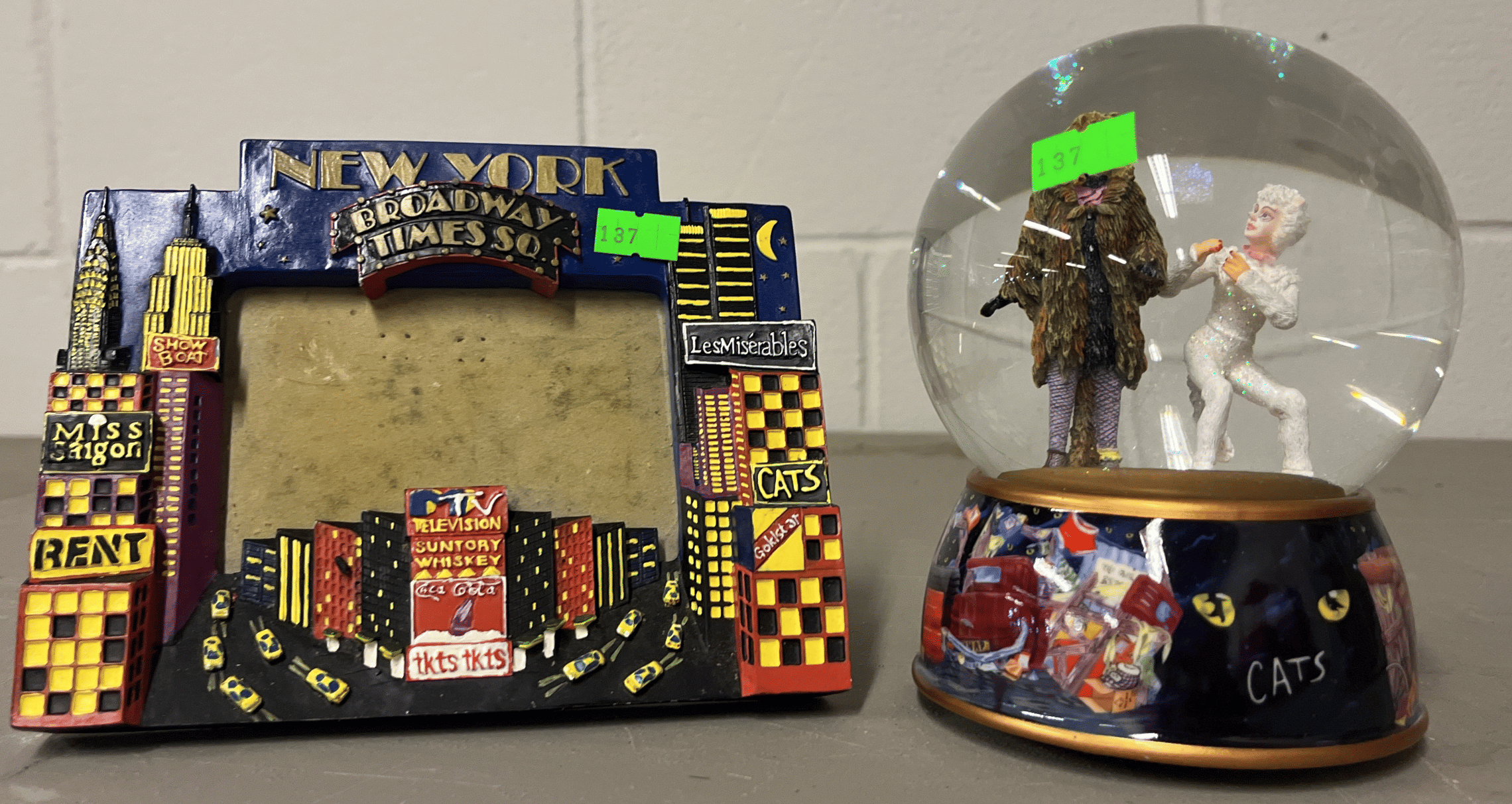 137 Cats Musical Snow Globe and Resin Broadway Picture Frame