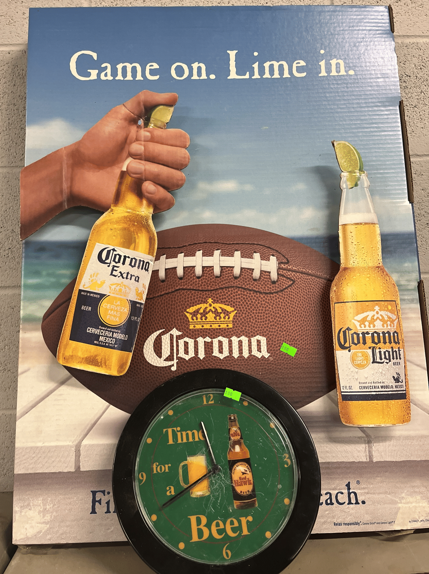156 Corona cardboard display 20x30", battery operated plastic beer clock 10"